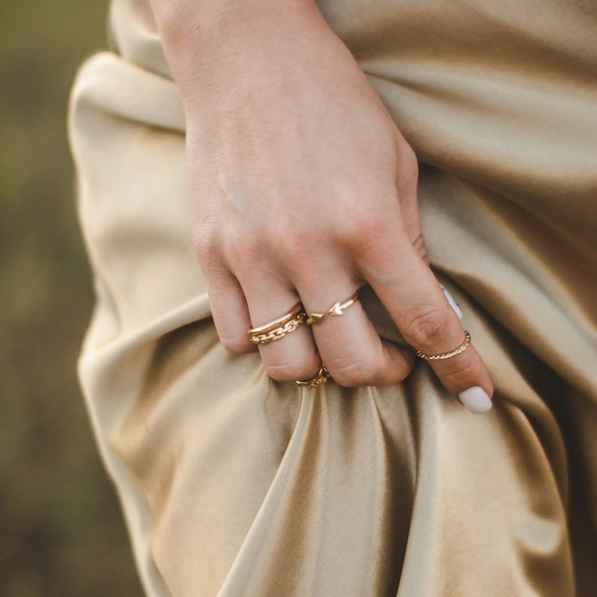 Golden-colored, trendy and popular, earrings with a strong sense of design