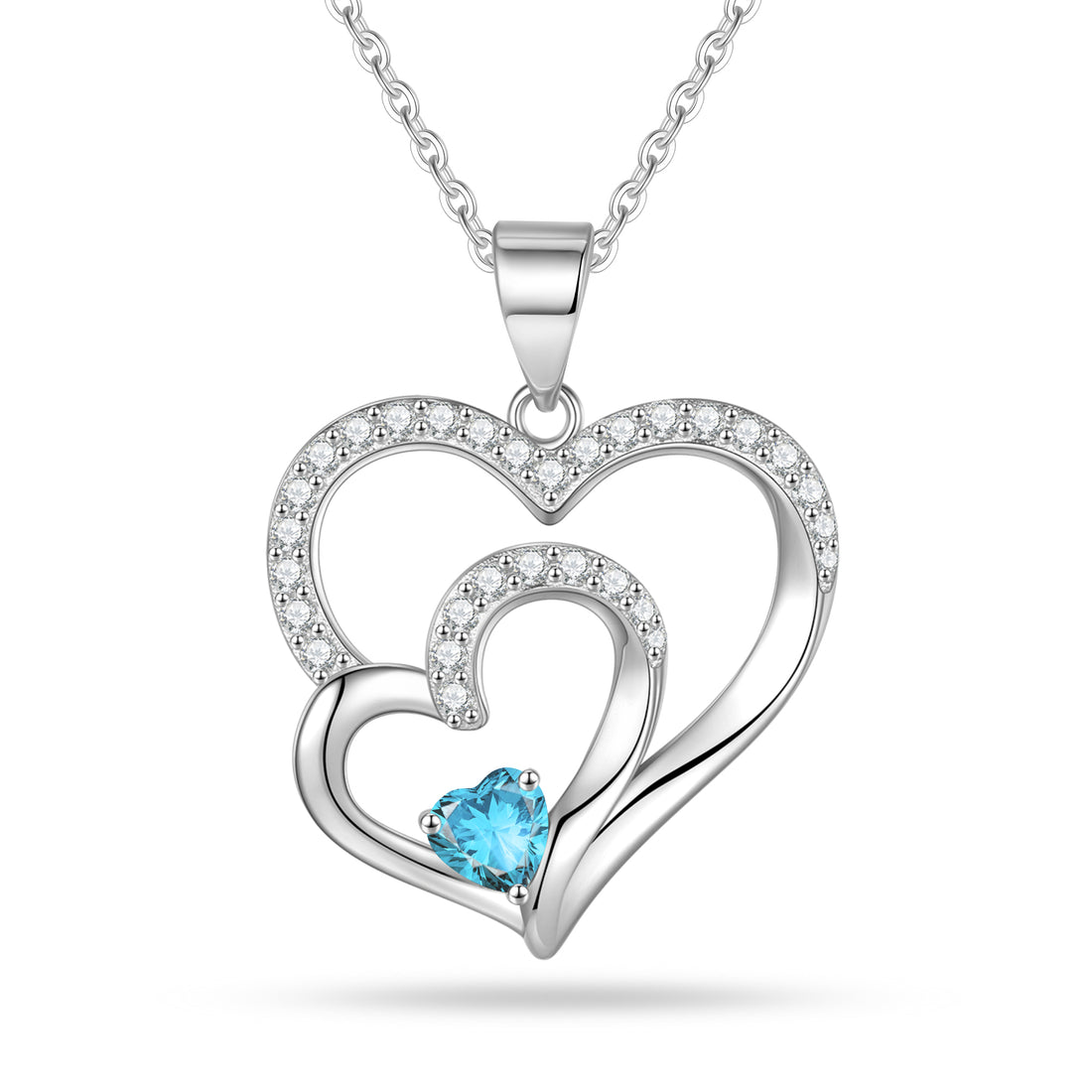 Romavan brand, double heart-shaped birthday stone necklace, colored cubic zirconia pendant necklace, for January to December