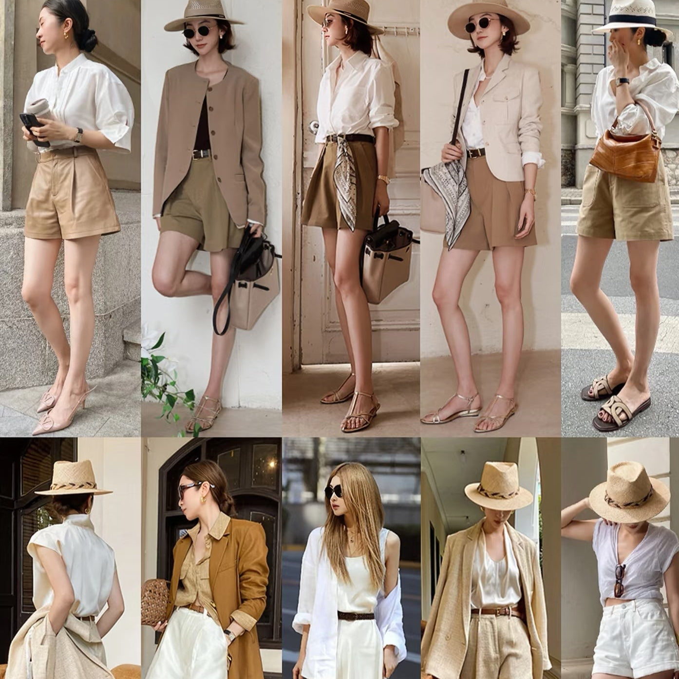 Khaki color, tight fitting two-piece set, sleeveless vest, long pants