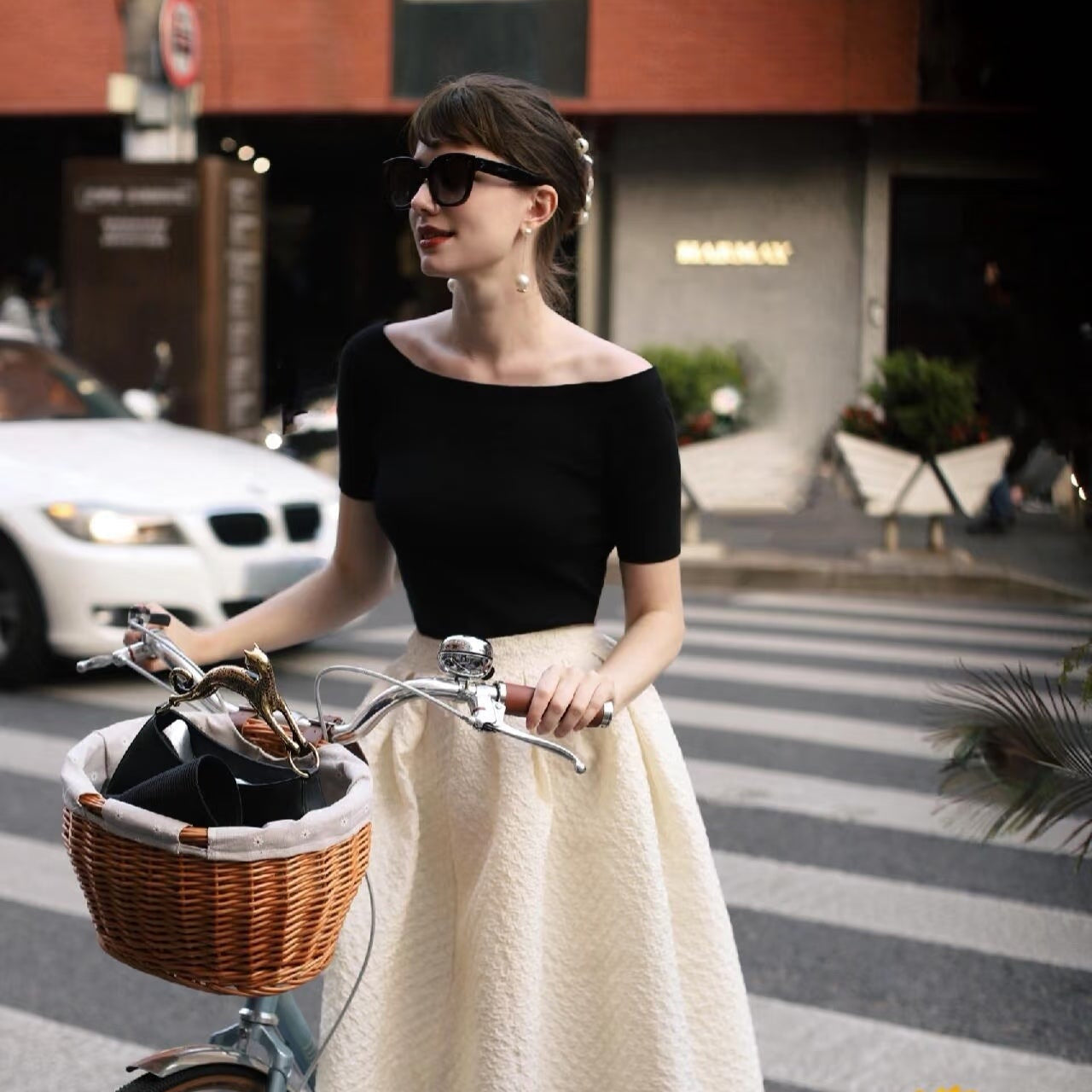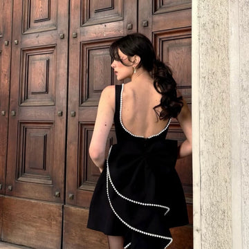 Black, women's top, short hoodie sweatshirt, 9 different colored ribbon bow patterns on the chest