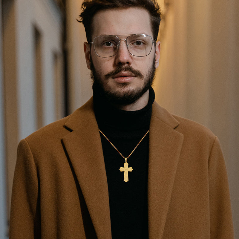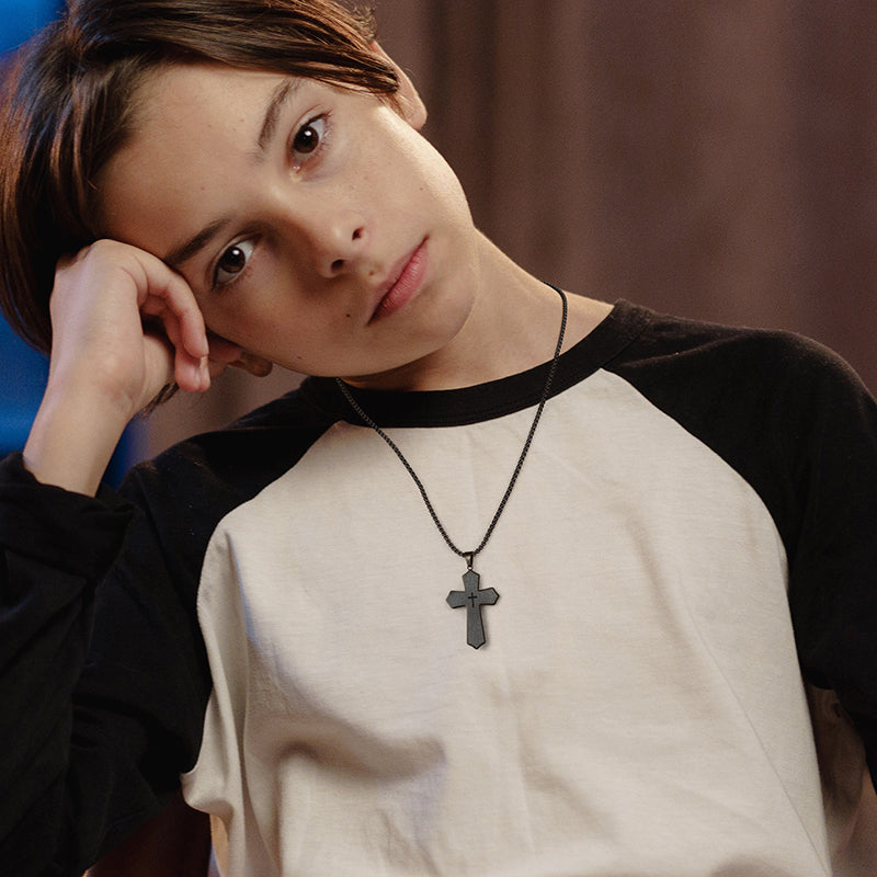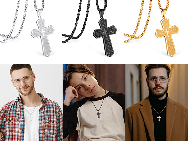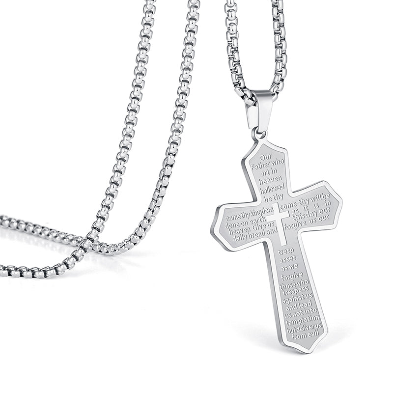 Black/golden/silvery, pearl chain style single-layer chain, small letter cross pendant necklace, style B chord prayer