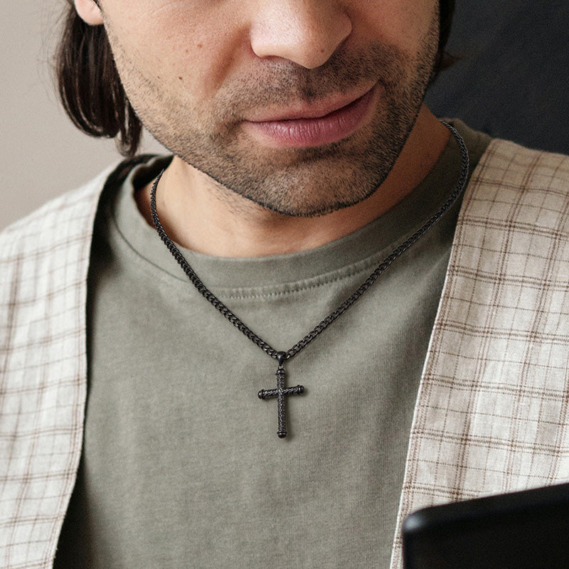 HIGH QUALITY MATERIAL CROSS NECKLACE: Made of 316L Stainless steel, this black cross chain necklace is with high polish surface and smooth touch. Lead free and nickel free, perfect classic cross necklace for men women with sensitive skin.