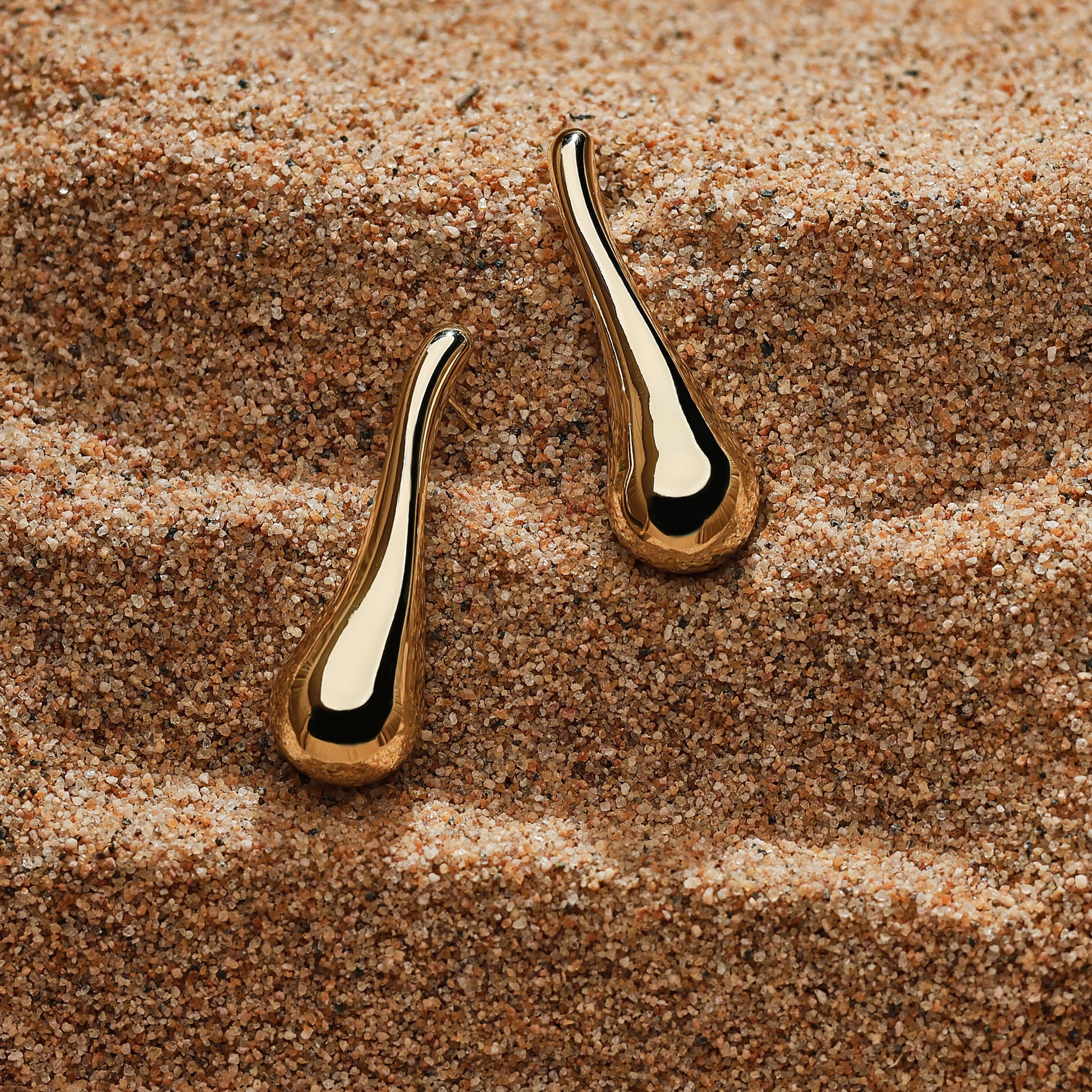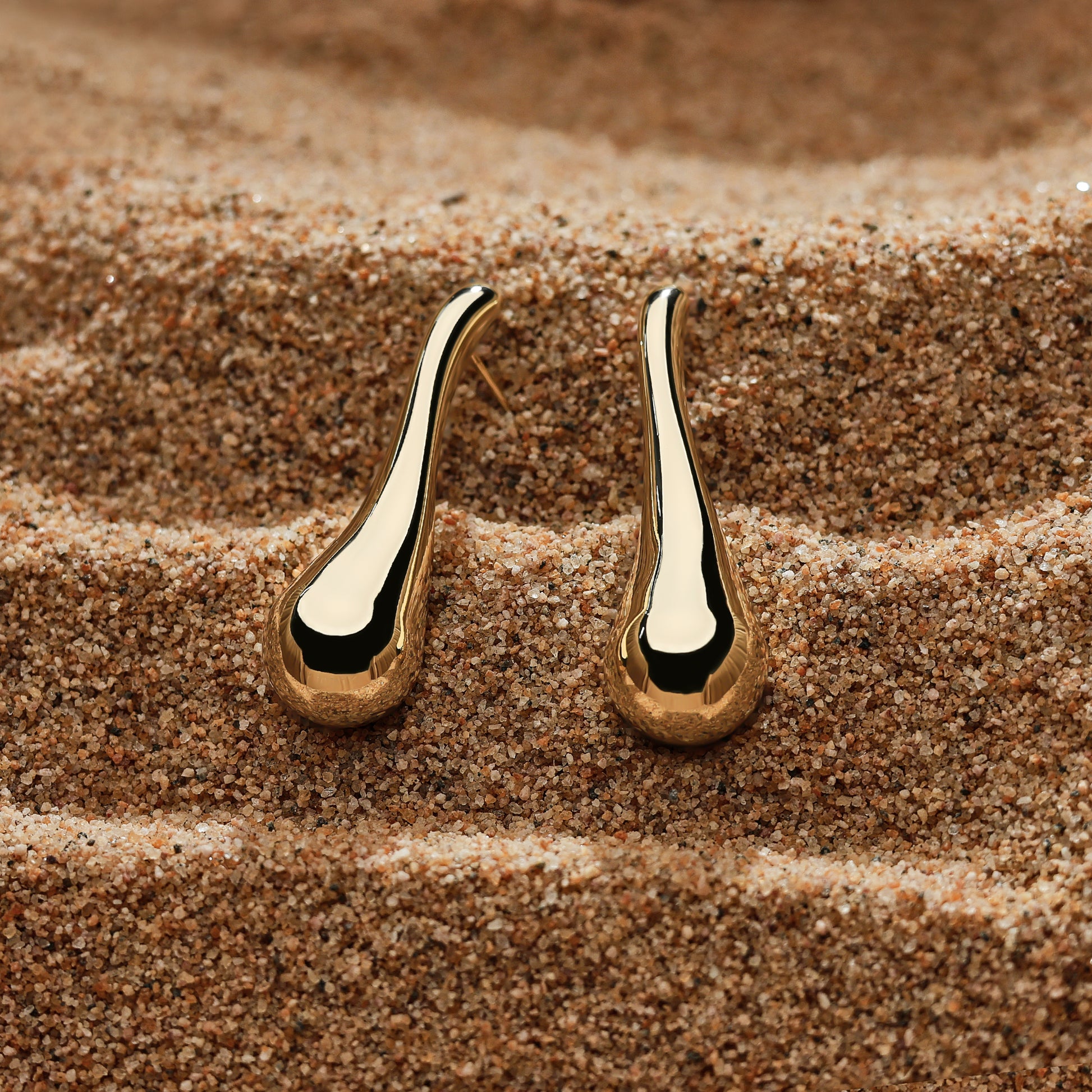 Golden-colored, trendy and popular, earrings with a strong sense of design