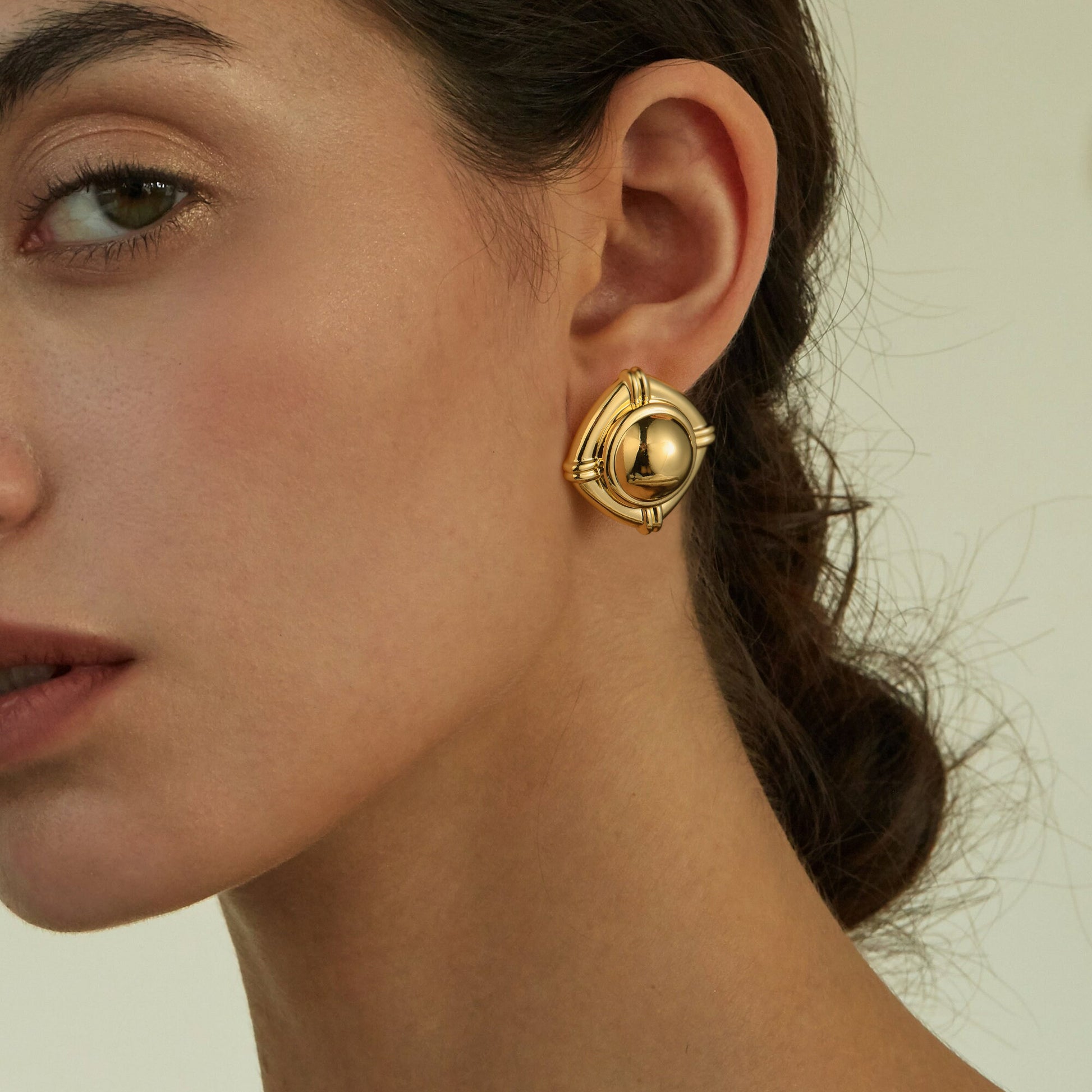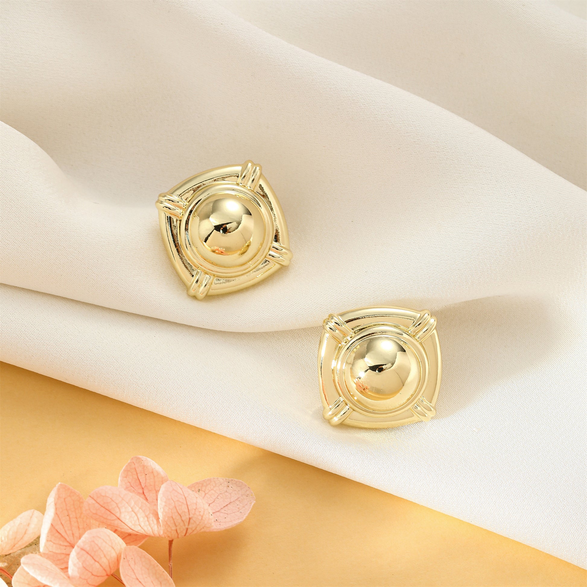 Golden earrings with a square shape with a hint of roundness