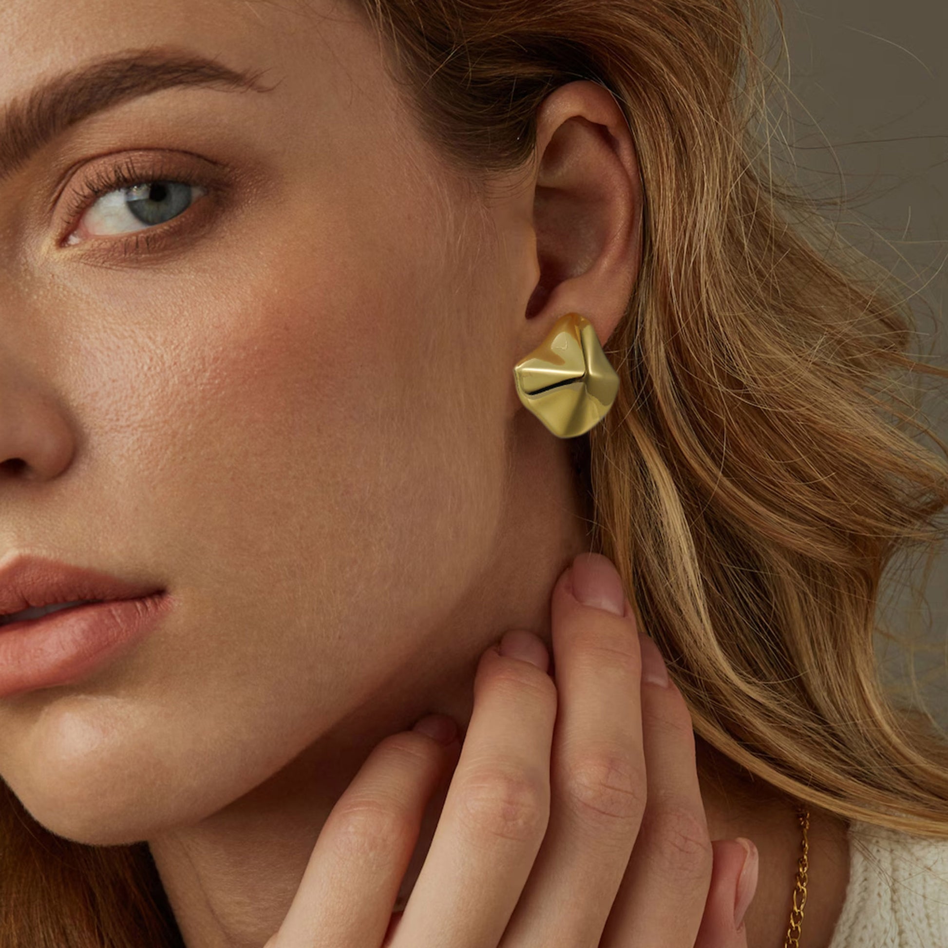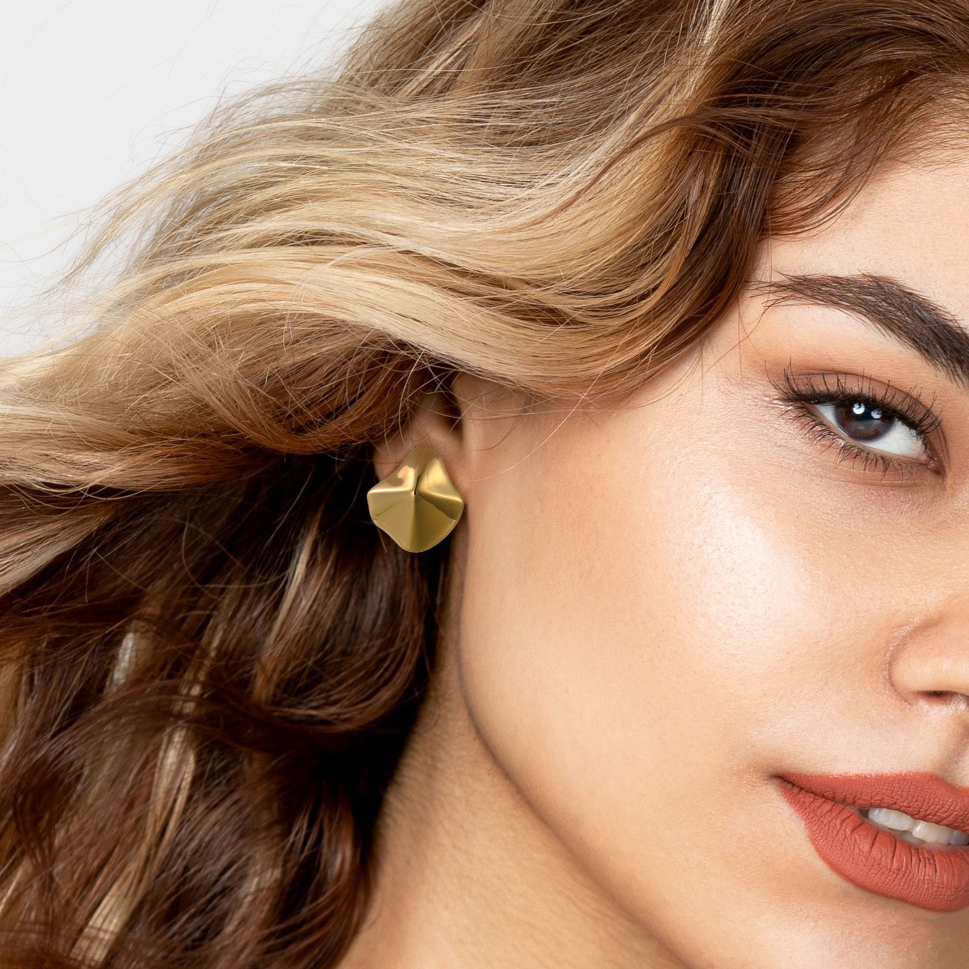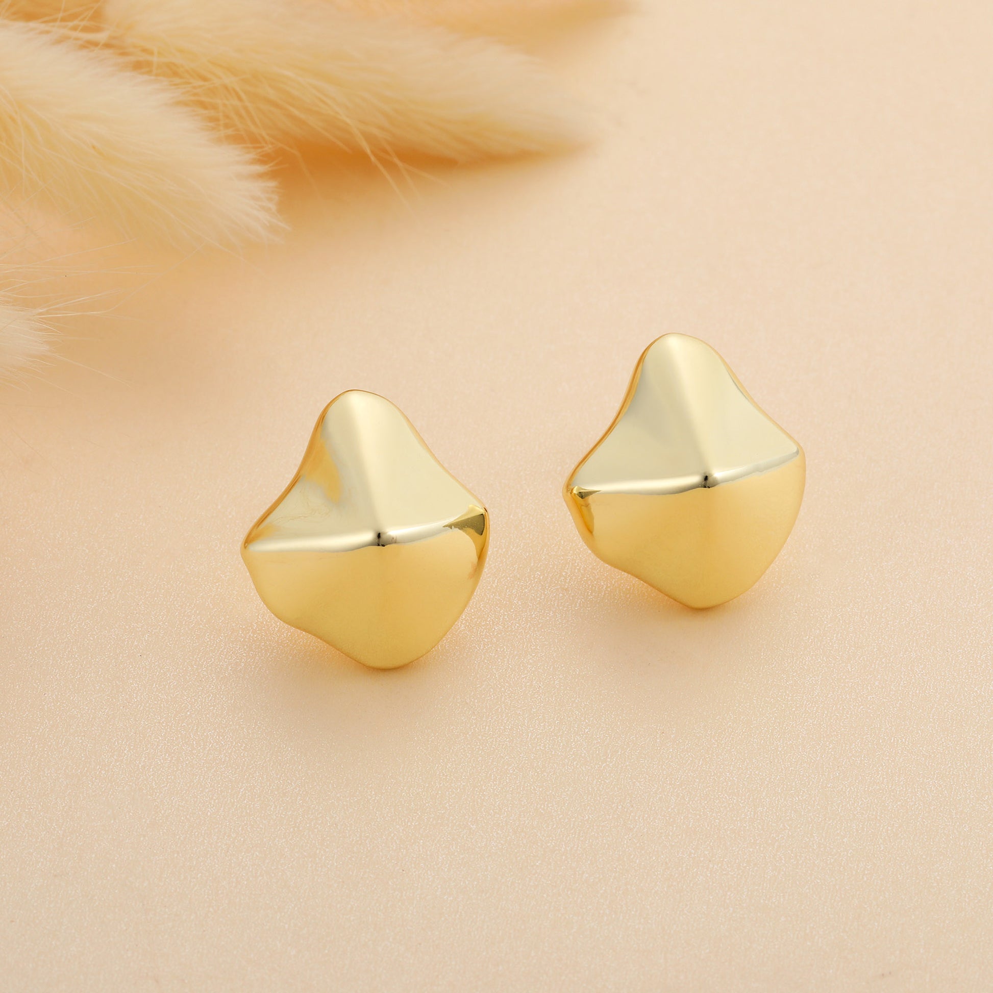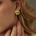 Golden, lotus leaf-shaped earrings