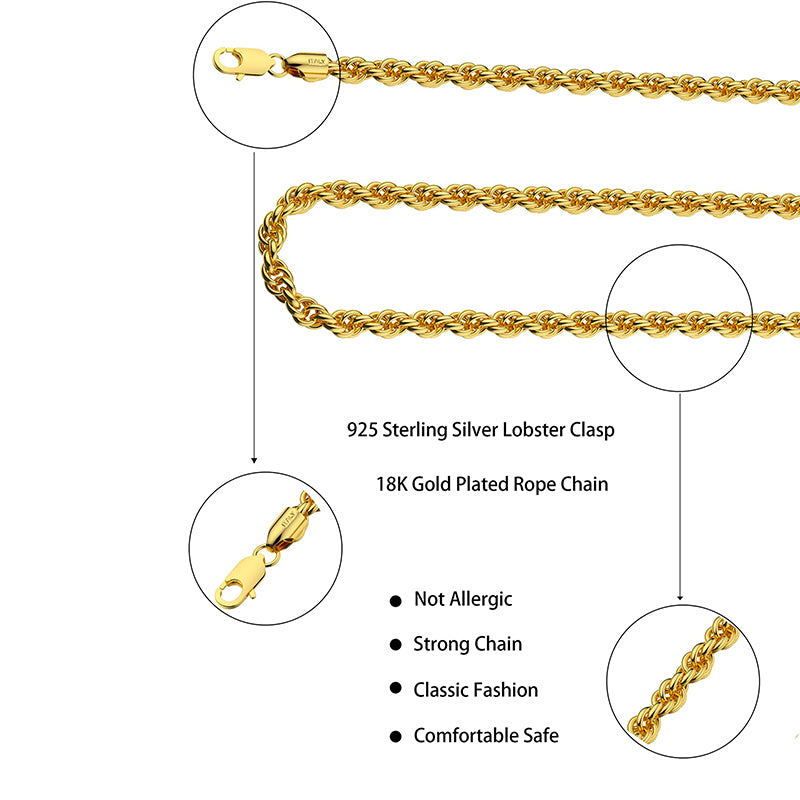 Golden/Silvery, 2mm/2.5mm/3mm/3.5mm/4mm/4.5mm/5mm chain necklaces, 16\18\20\22\24\26\30inch