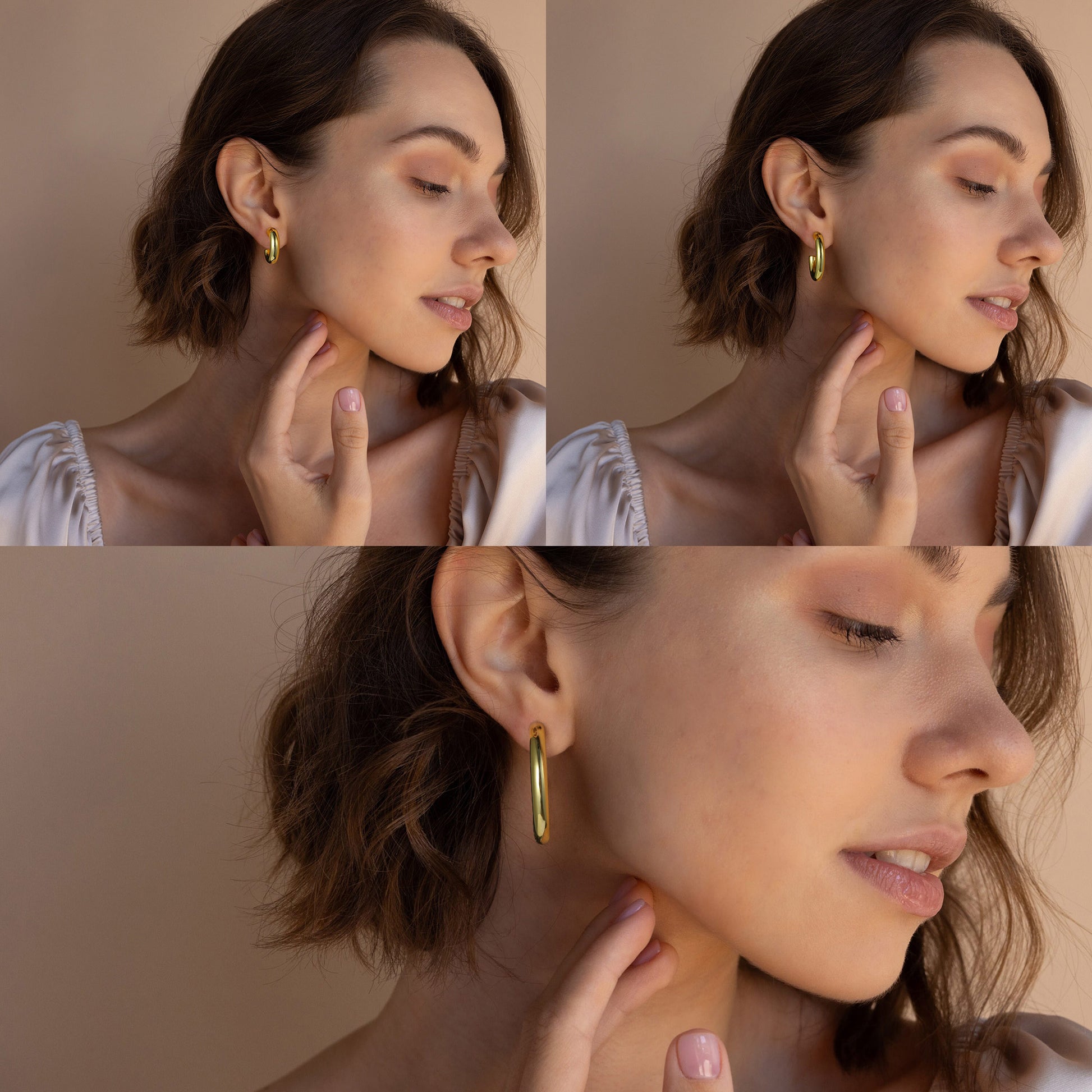 Ring Earring Set: This golden ring earring is not only fashionable and modern, but also classic and elegant. High-quality golden hoop earrings jewelry, suitable for daily wear and matching, it can capture light.