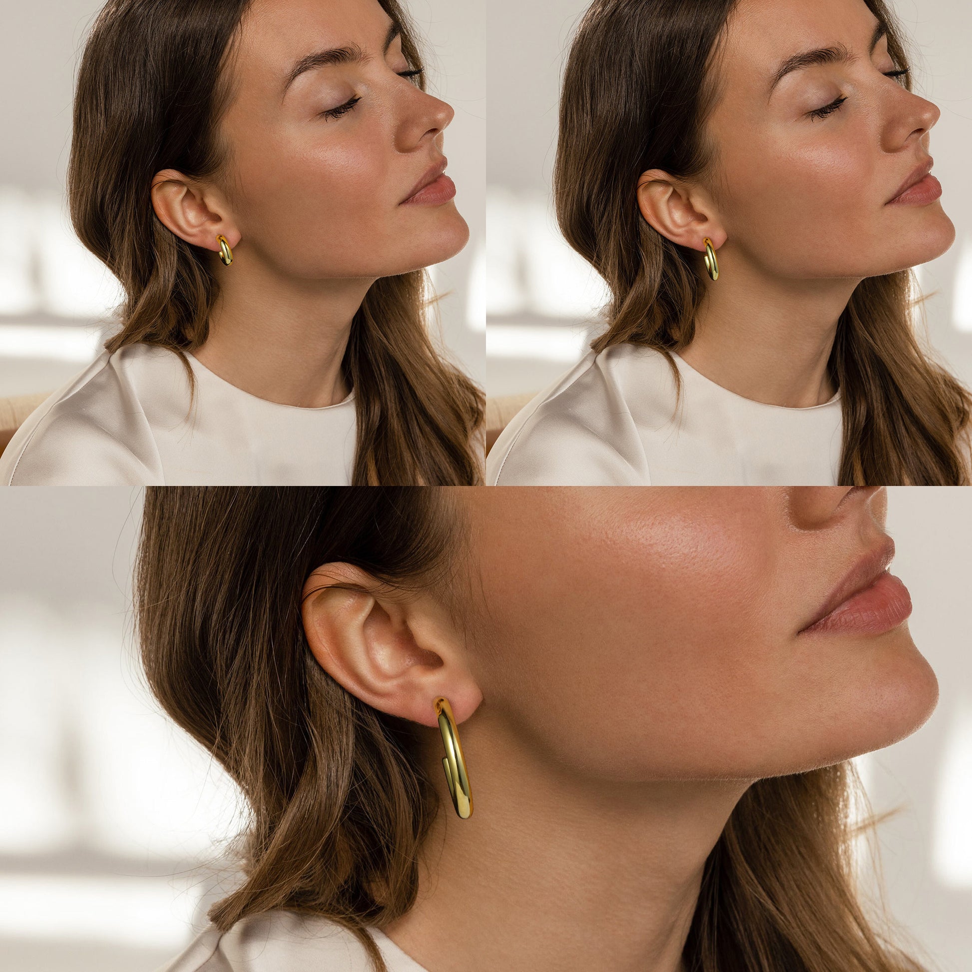 Lightweight and thick: This golden hoop earring is beautifully designed, hollow, thick, light and easy to wear, making it an ideal choice for all-day wear. The buckle design makes it easy to put on and take off.