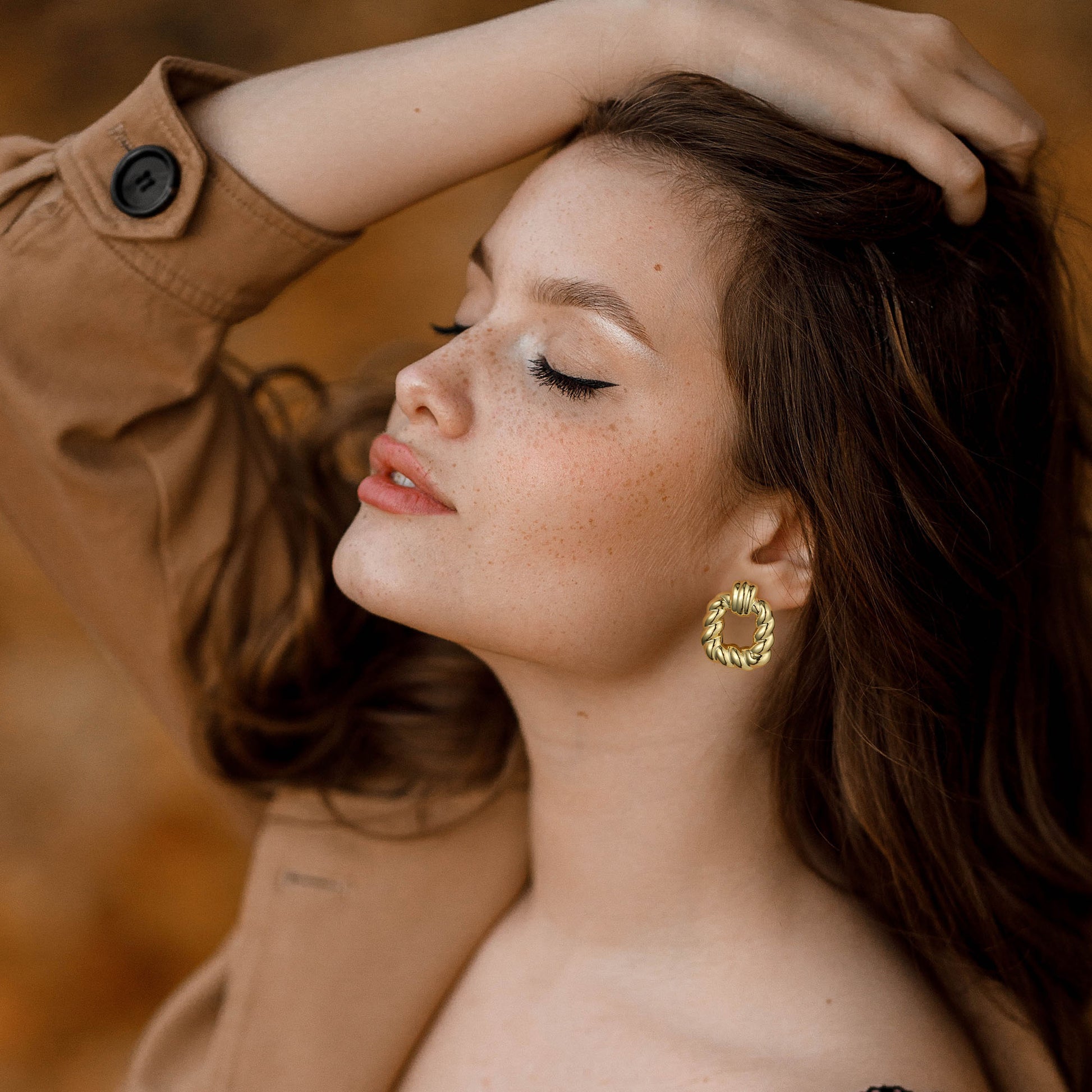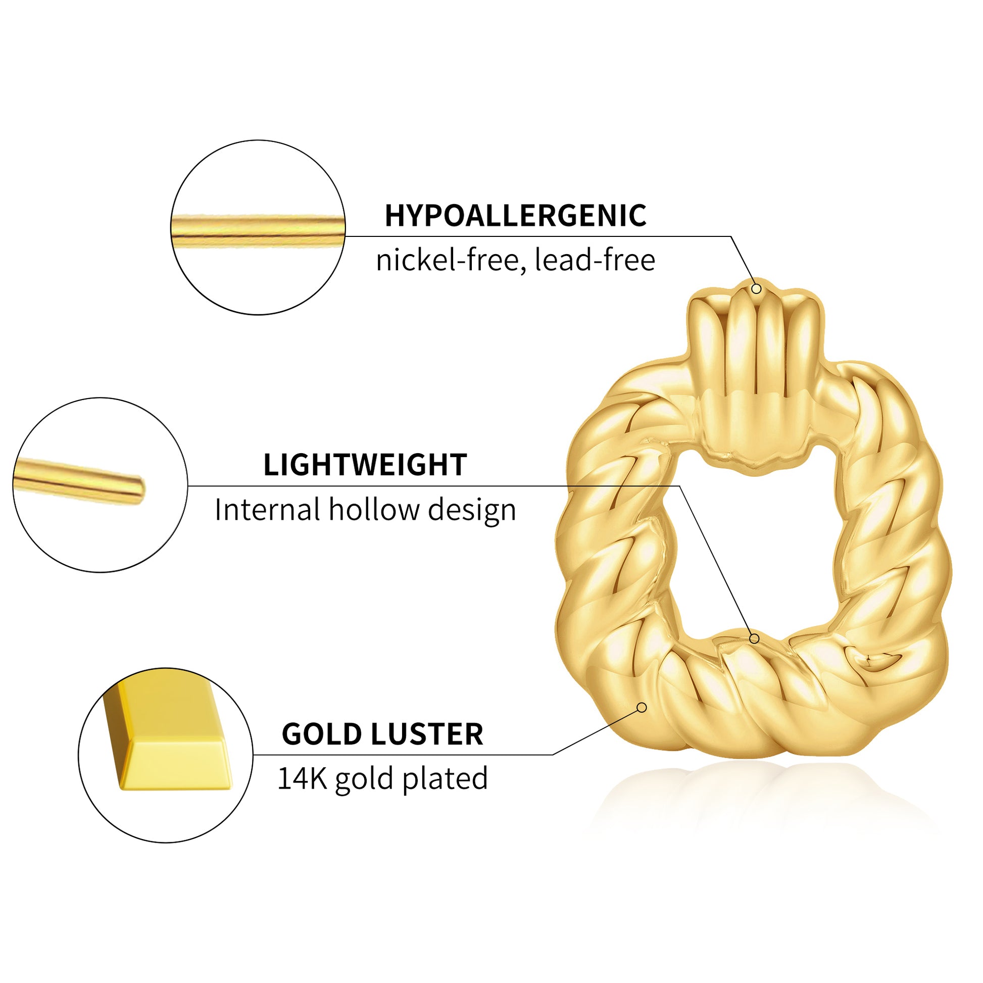 Light and thick: women's thick golden pendant earrings are beautifully designed, hollow, thick, light and easy to wear, making them ideal for all-day wear. The buckle design makes it easy to put on and take off.
