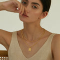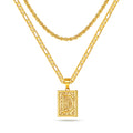 Golden, three to one rope double layered chain, rectangular capital gold letter tag pendant necklace