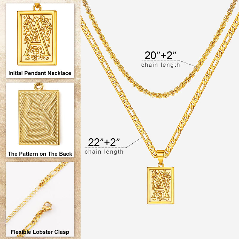SIZE: 2Pcs layered initial necklace for men women, 2.5mm 20"+2" rope chain and 3mm 22"+2" figaro chain initial pendant necklace, perfect length and size to fit any occasions. Lobster clasp design, easy to open and close. A unique women mens accessories add to jewelry collection.