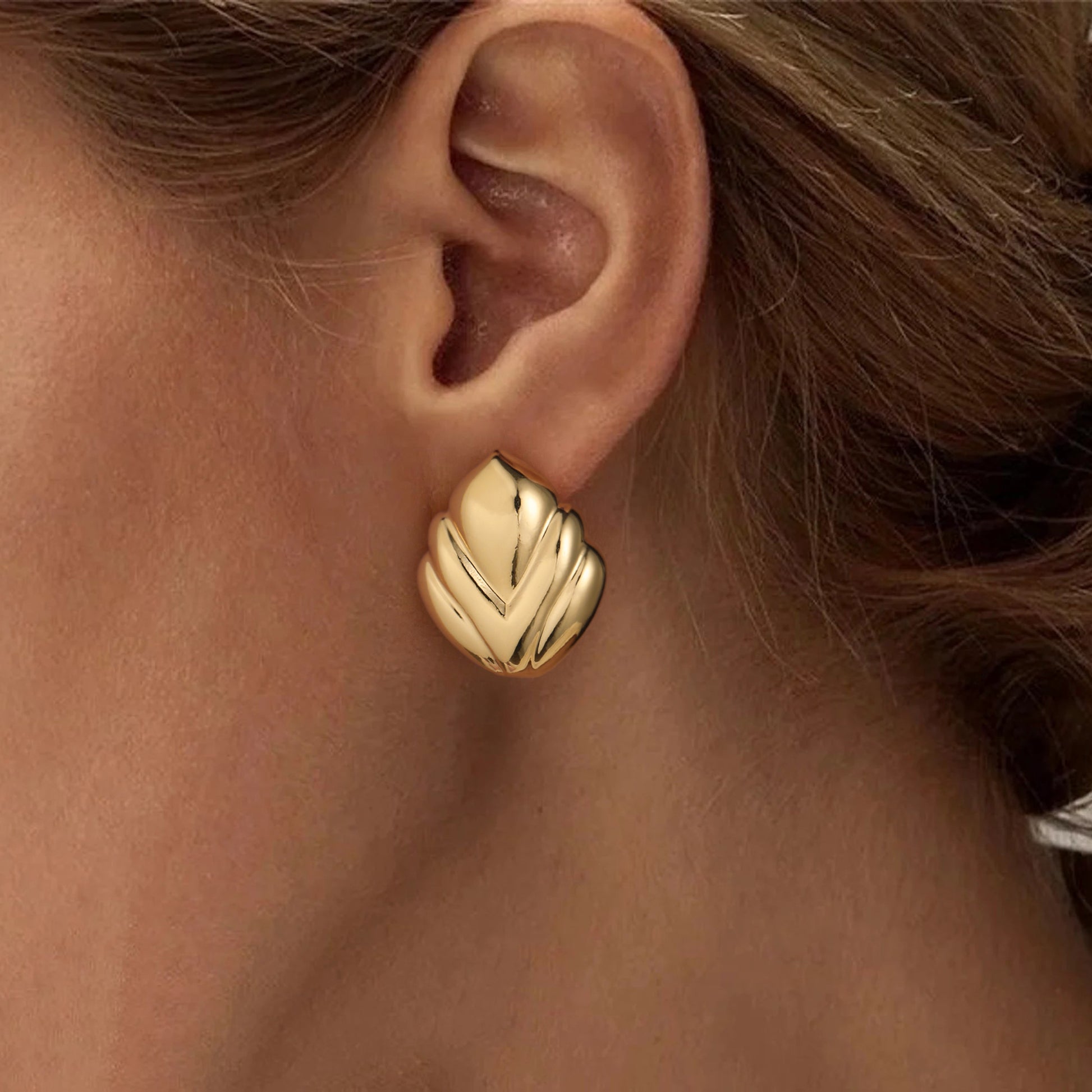 Golden, V-shaped pattern earrings