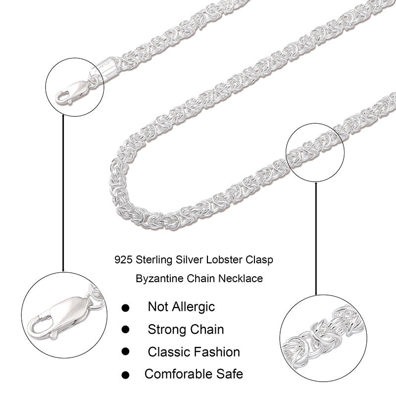 Waitsoul 925 Sterling Silver Rope Chain Lobster Clasp 2.5mm Silver Chain for Men Women Silver Necklace Chain 16-30 Inches