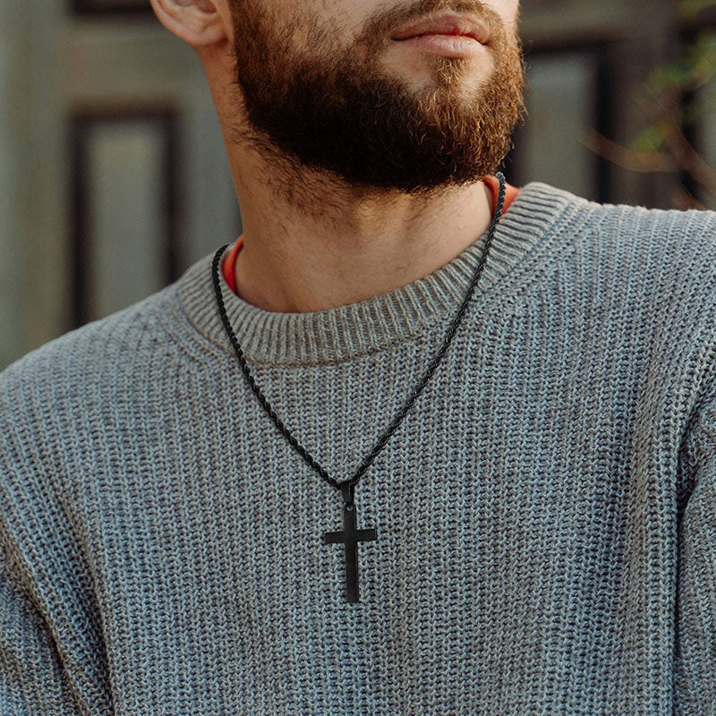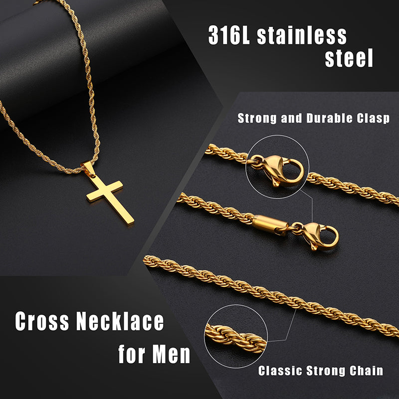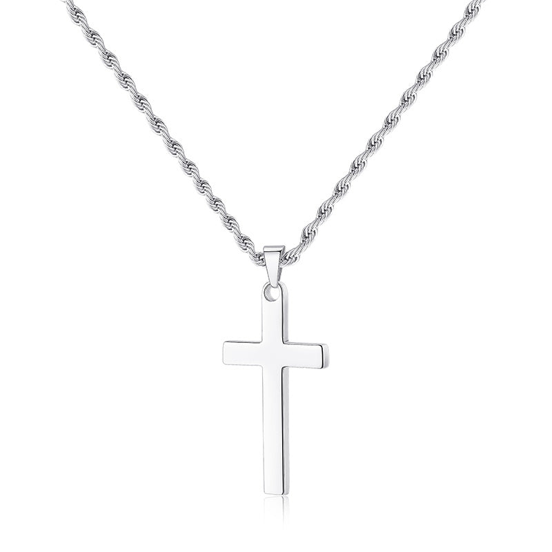 Silvery/black/golden, rope chain, stainless steel melon seed buckle cross single-layer chain, style A2 buckle rope chain