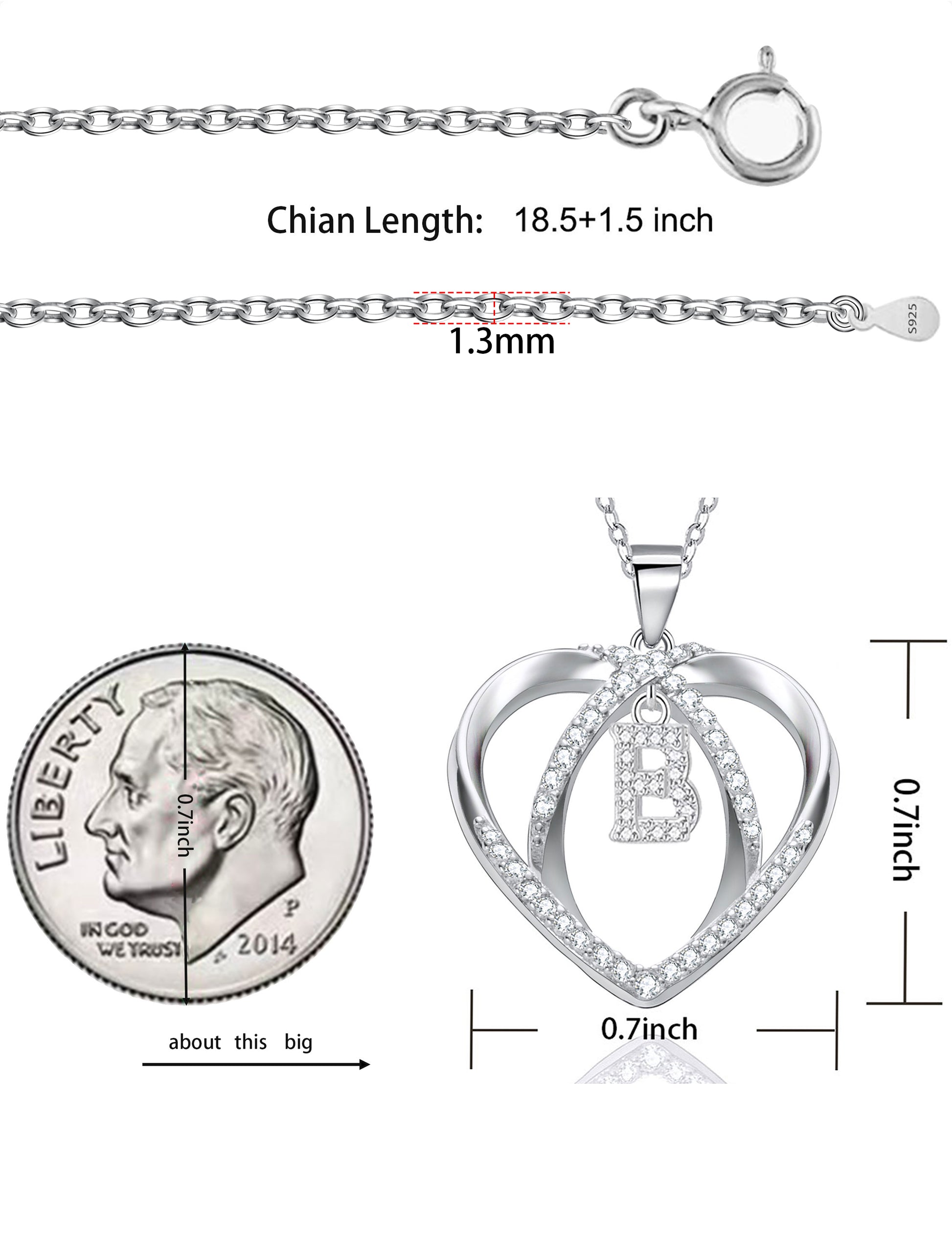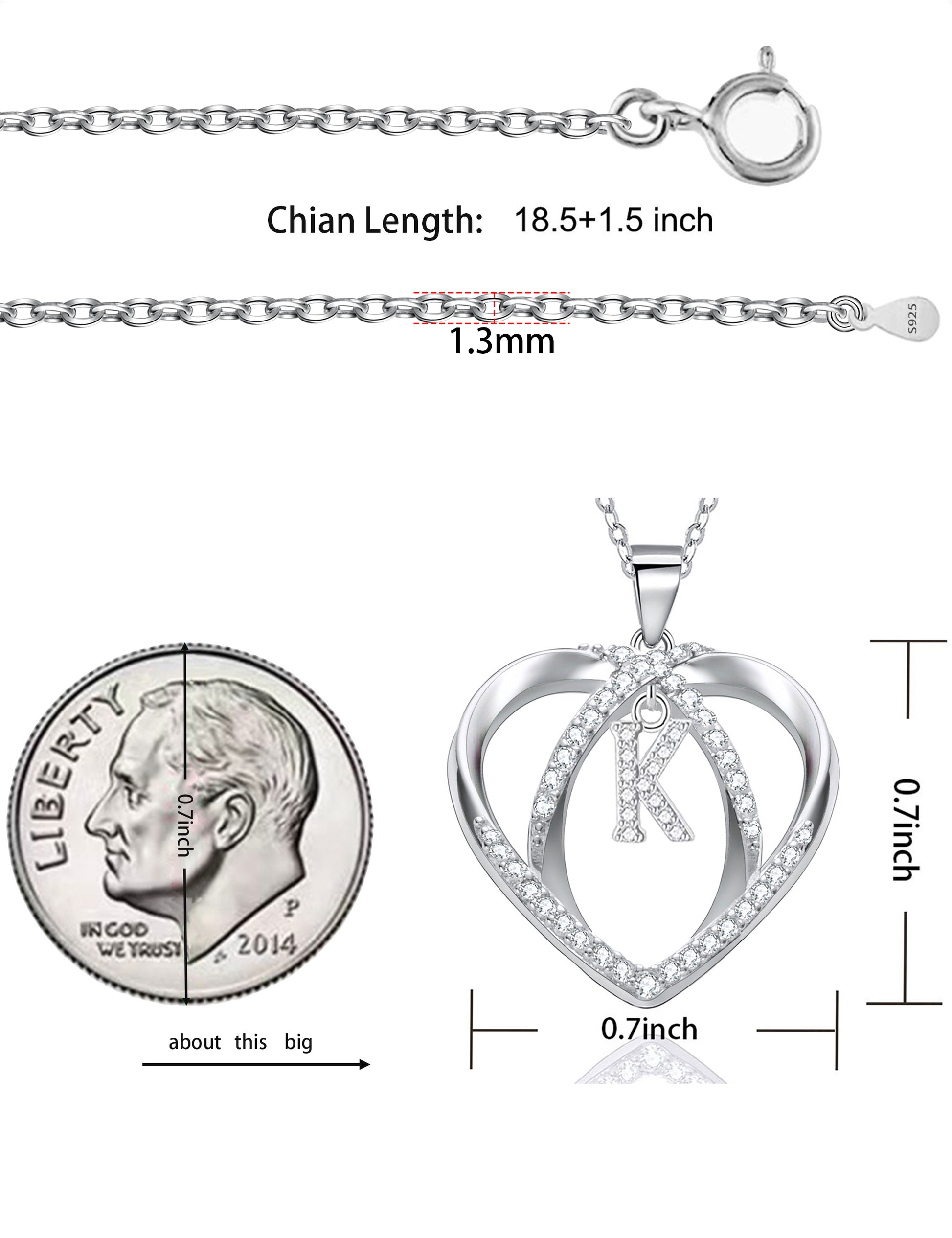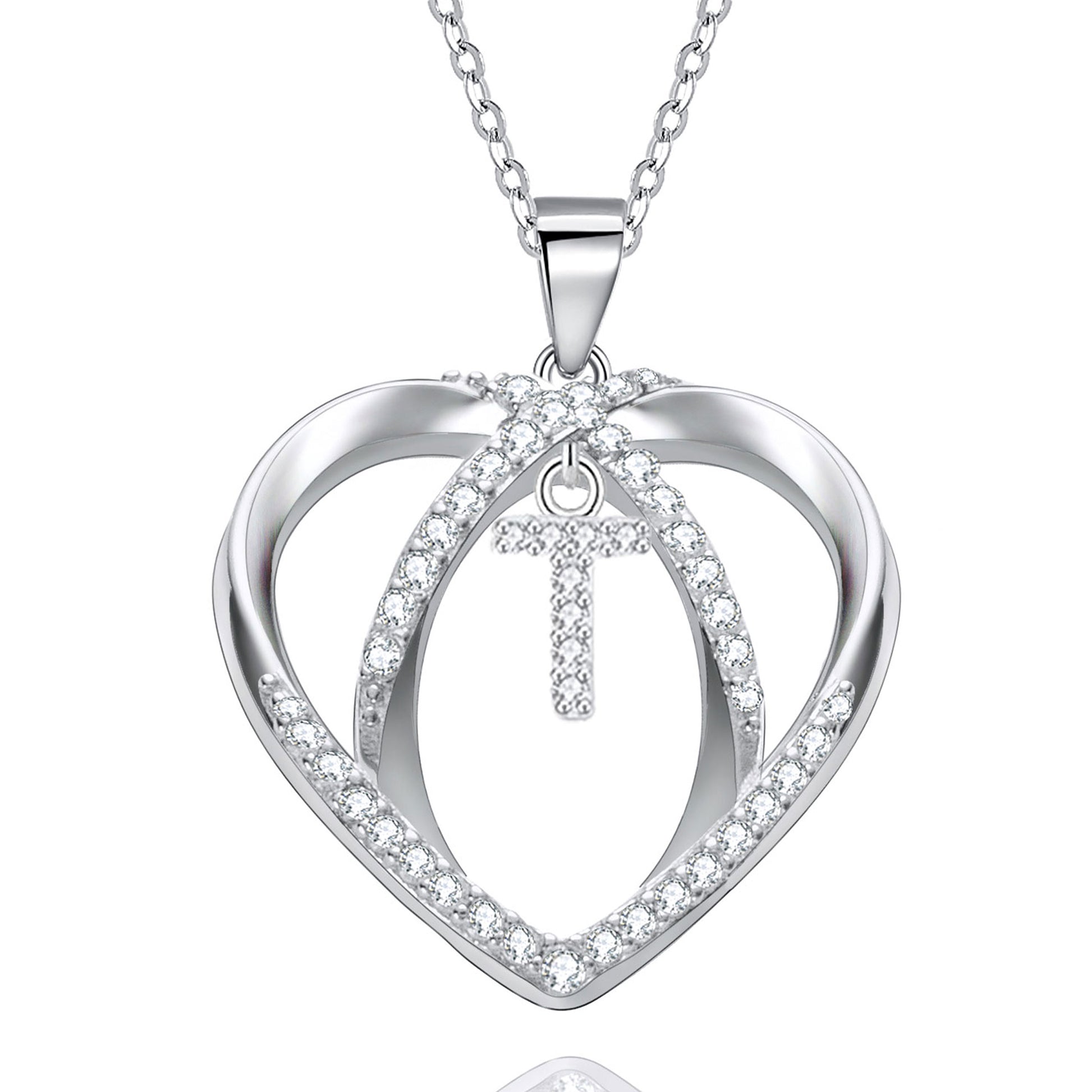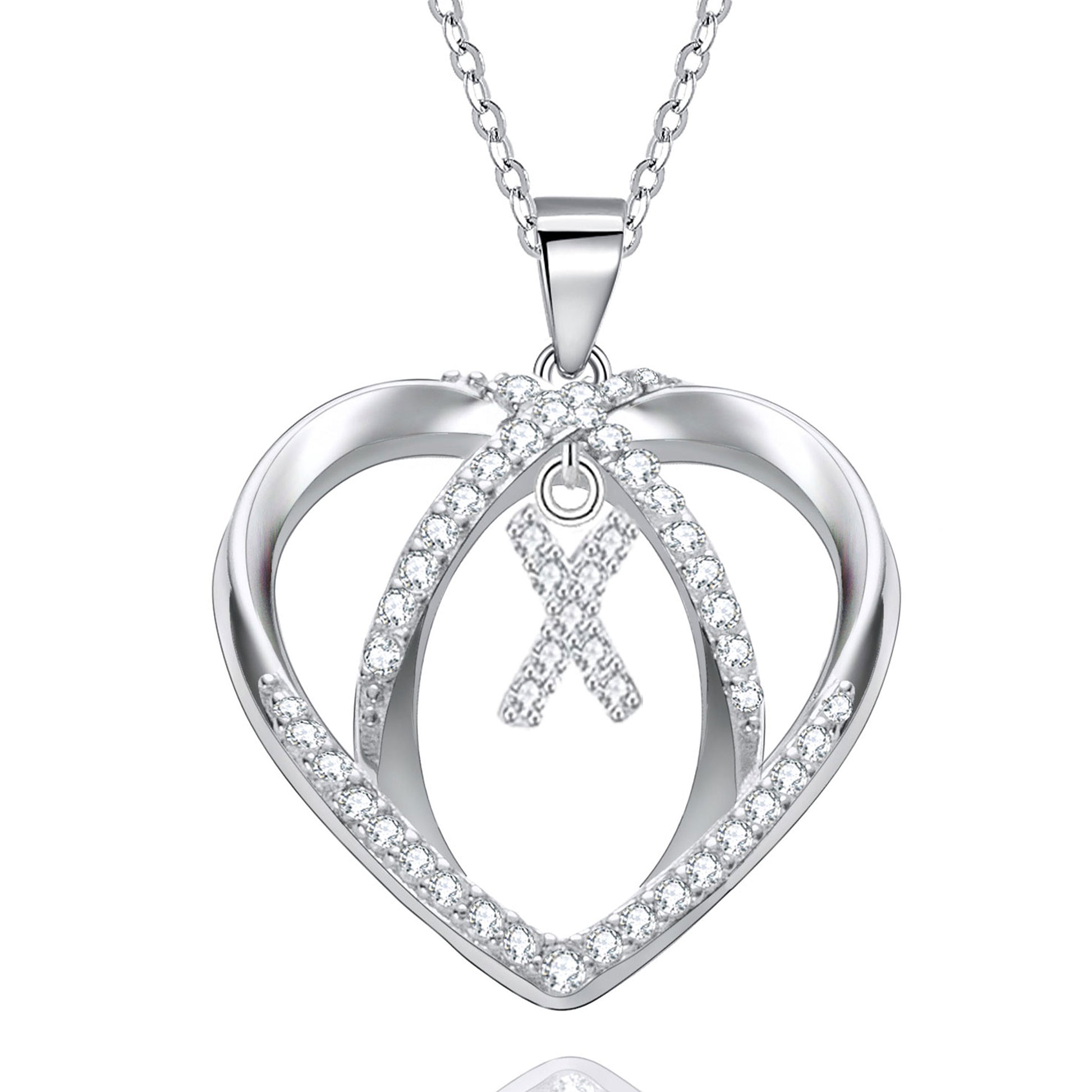 Silvery,cross heart-shaped initial letter necklace, S925 silver plated necklace, zircon pendant necklace, suitable jewelry gift for girls;