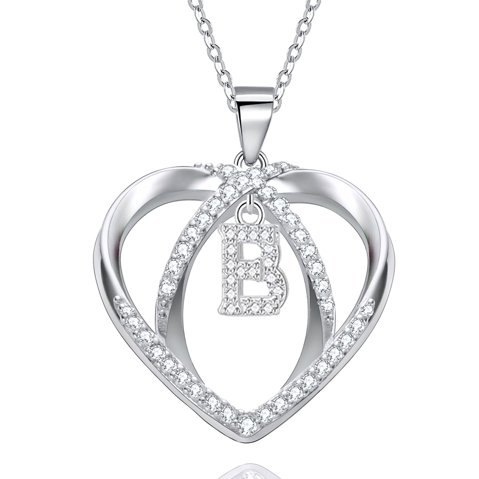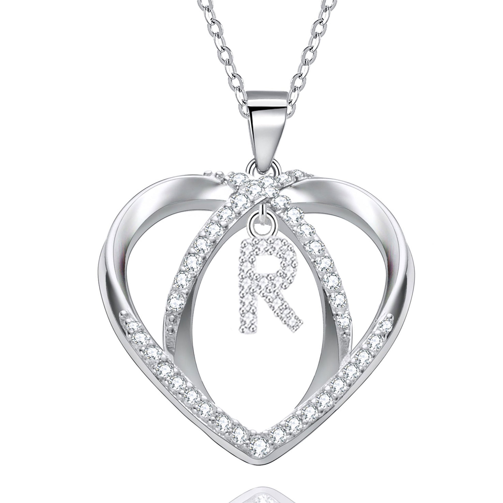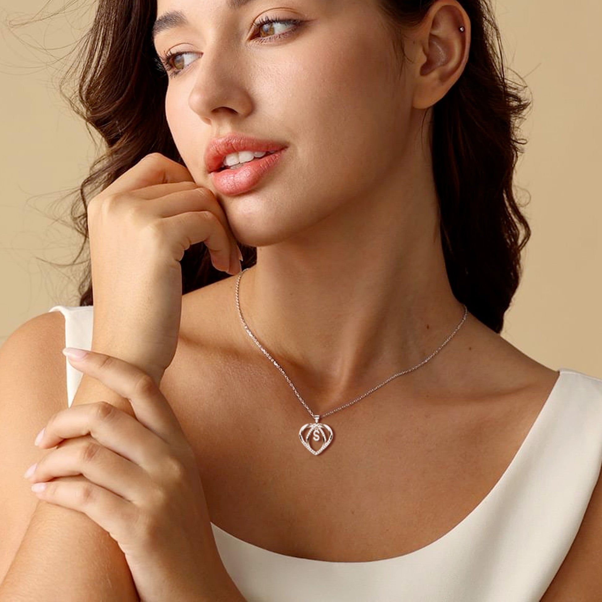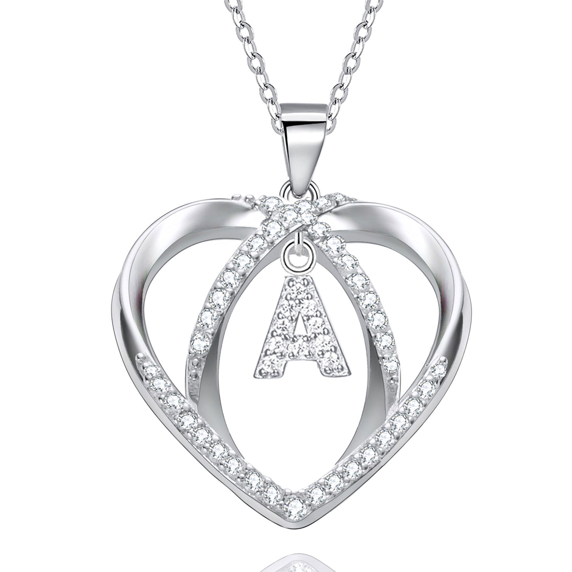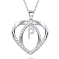 Silvery,cross heart-shaped initial letter necklace, S925 silver plated necklace, zircon pendant necklace, suitable jewelry gift for girls;