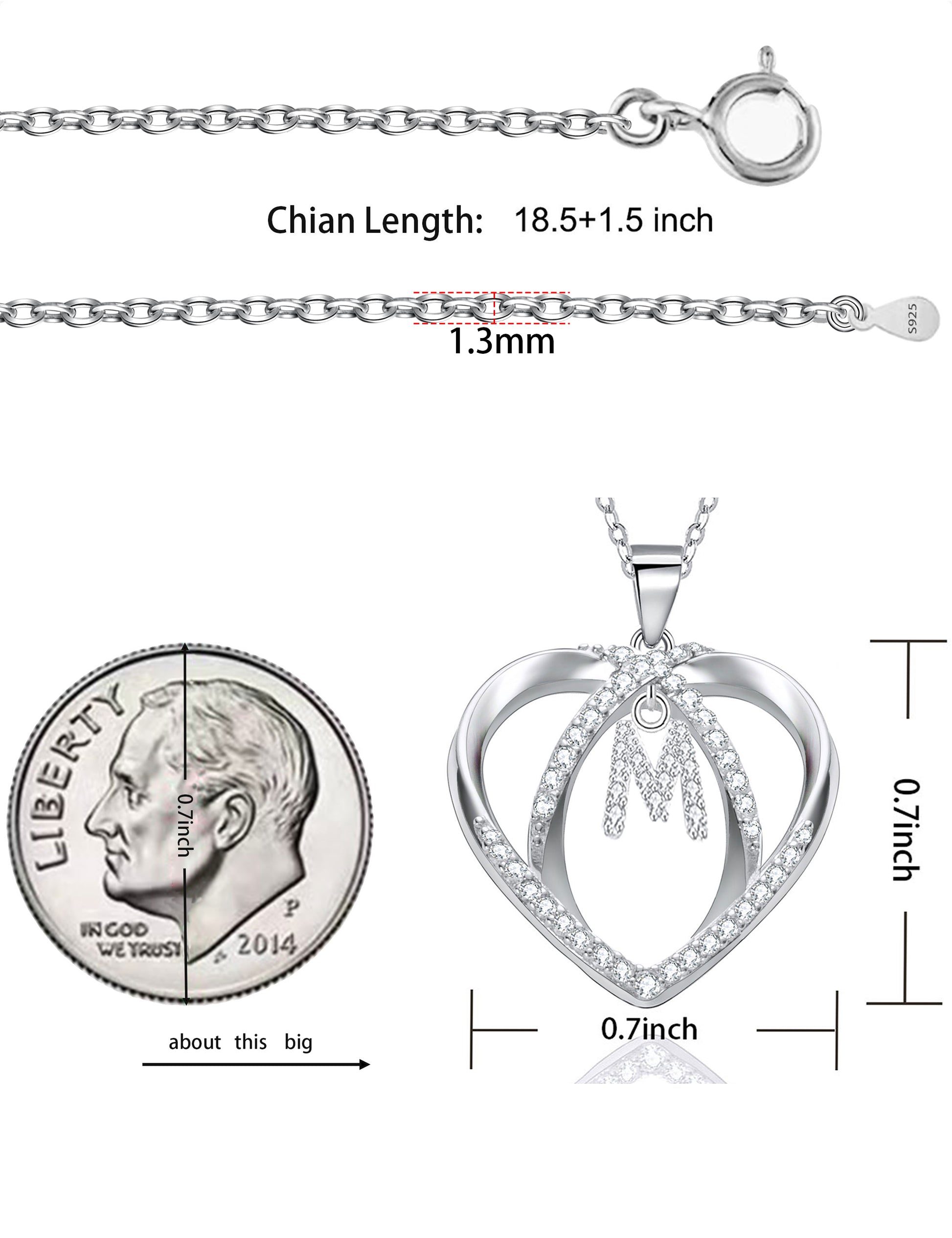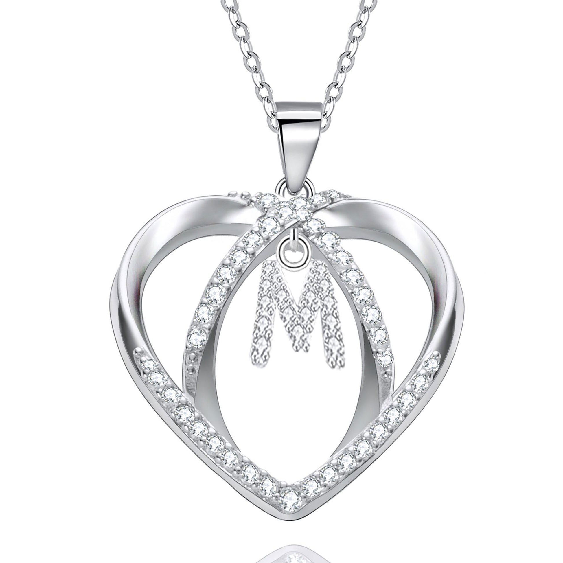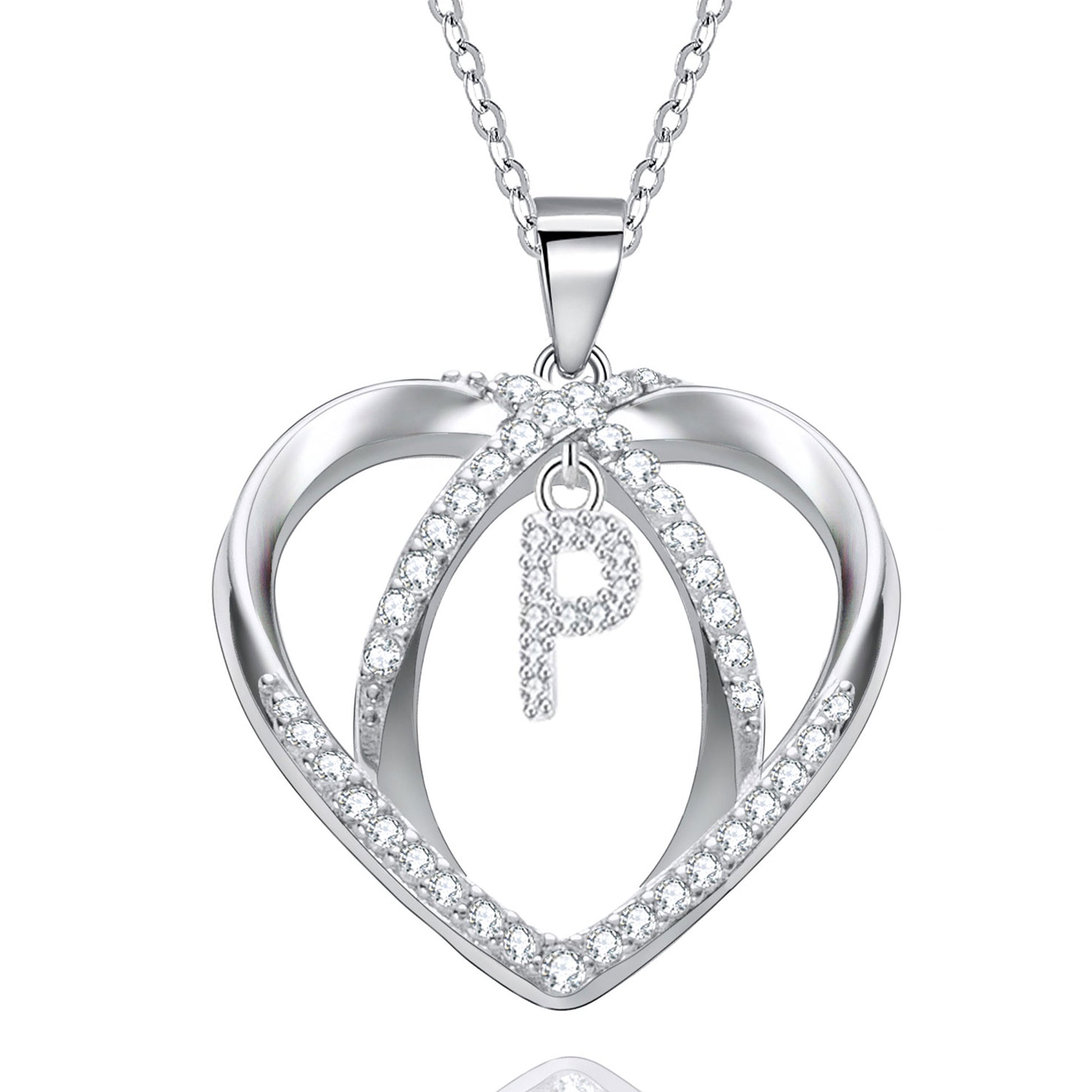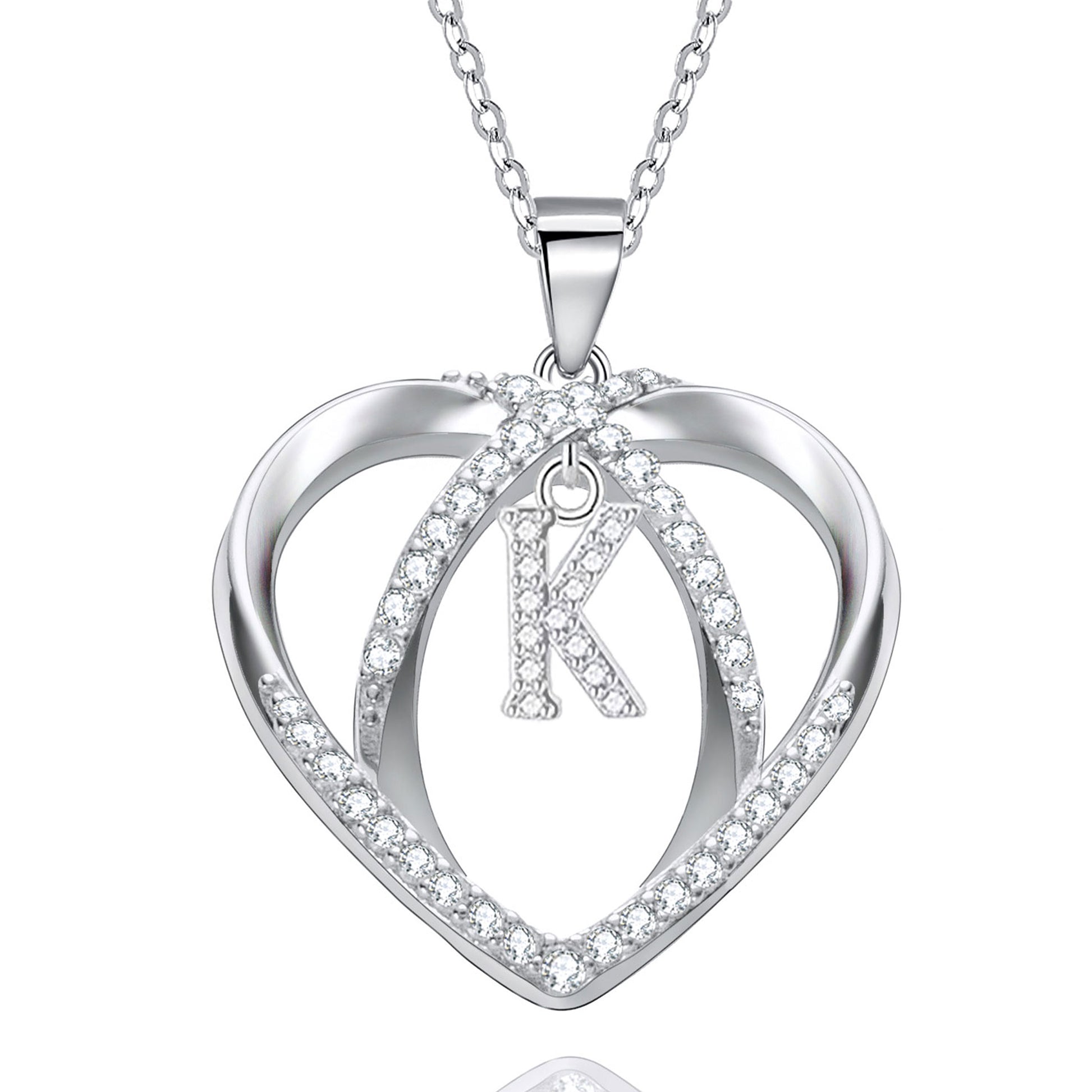 Silvery,cross heart-shaped initial letter necklace, S925 silver plated necklace, zircon pendant necklace, suitable jewelry gift for girls;