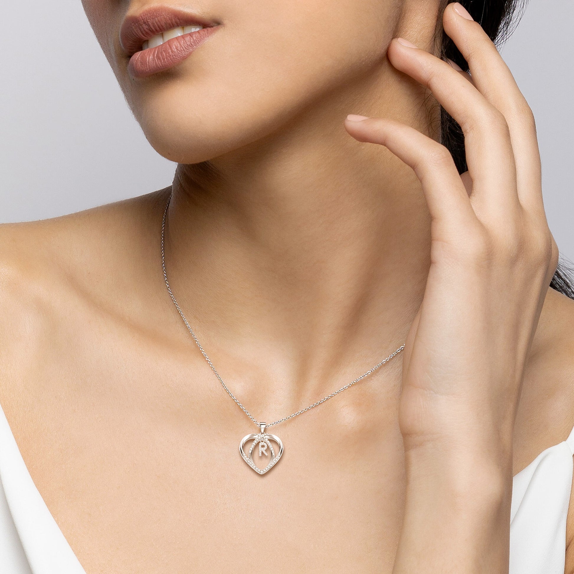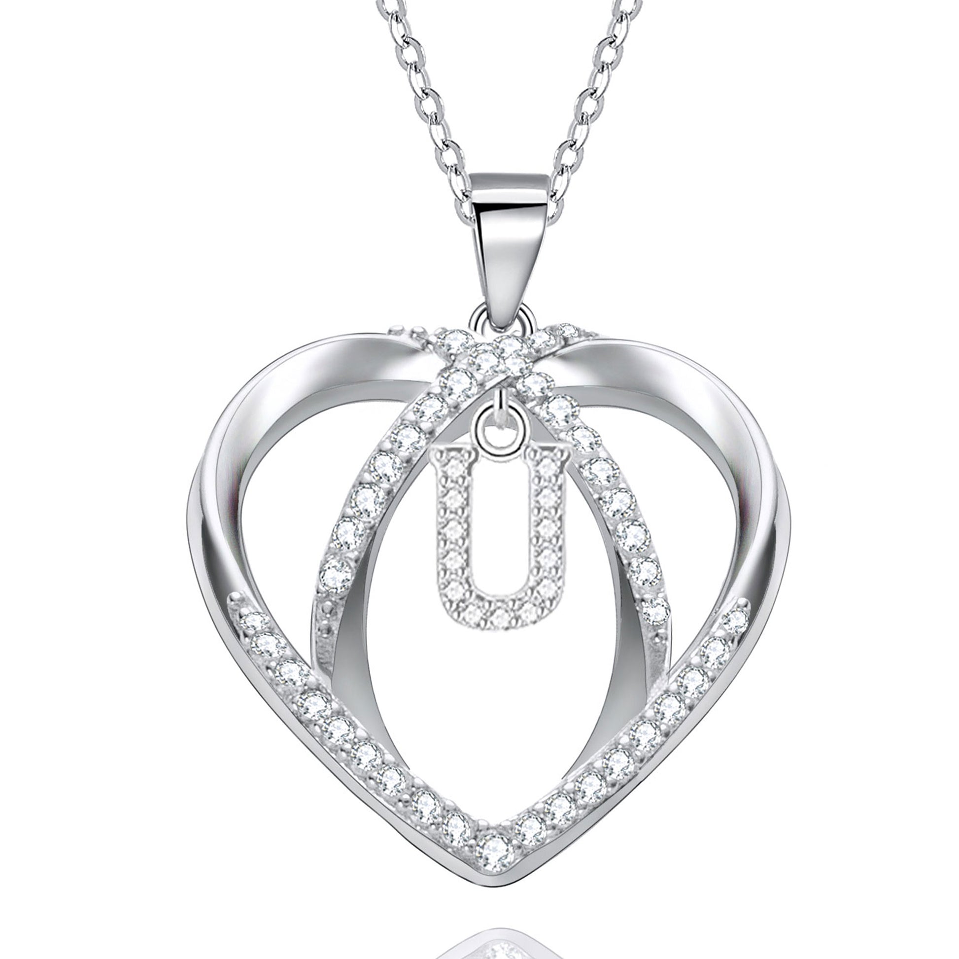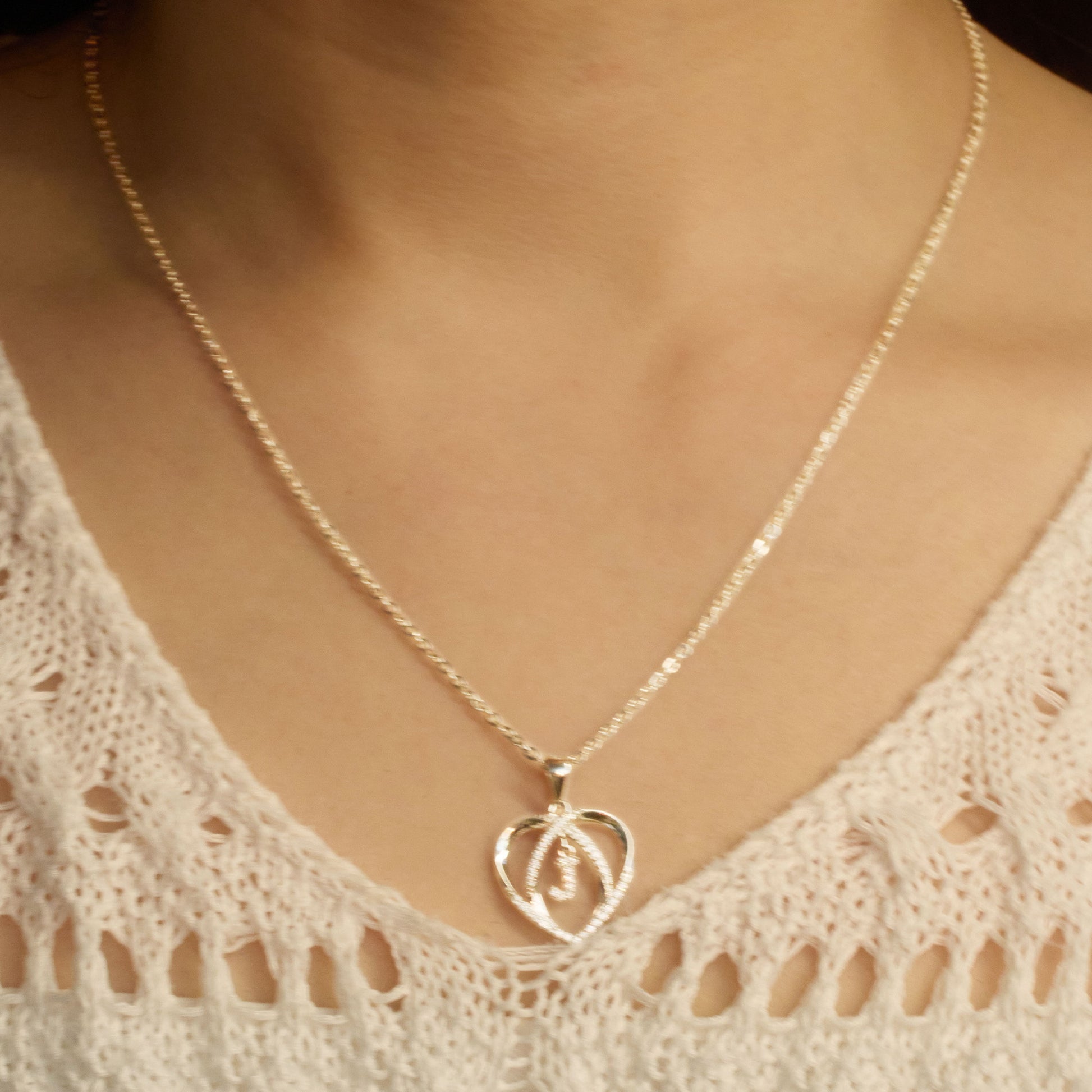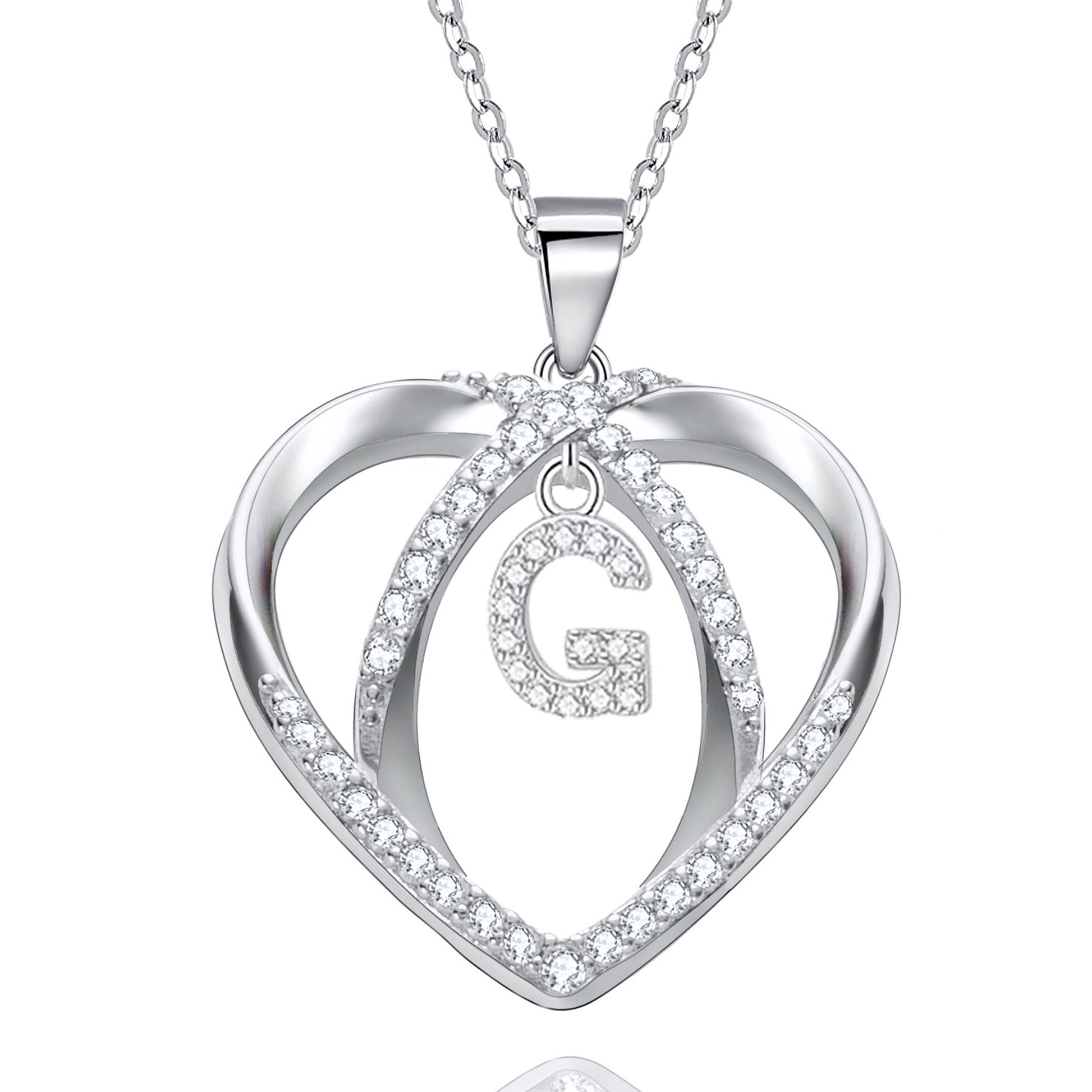 Silvery,cross heart-shaped initial letter necklace, S925 silver plated necklace, zircon pendant necklace, suitable jewelry gift for girls;