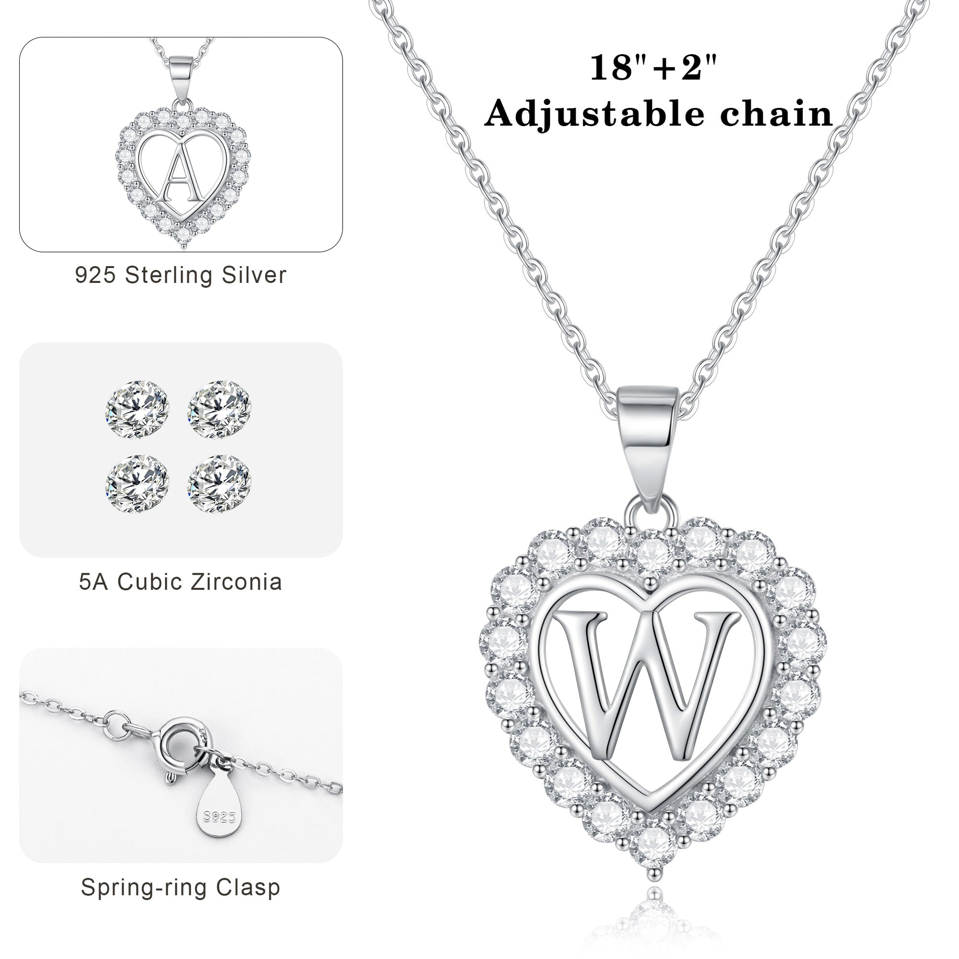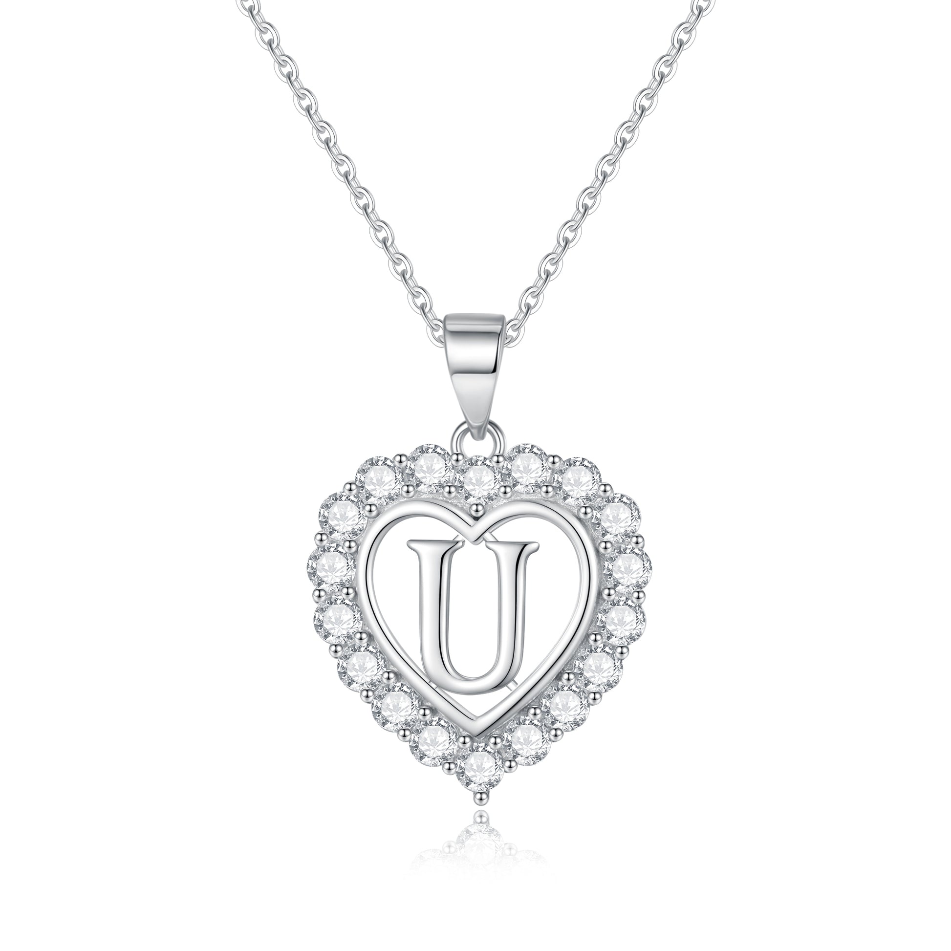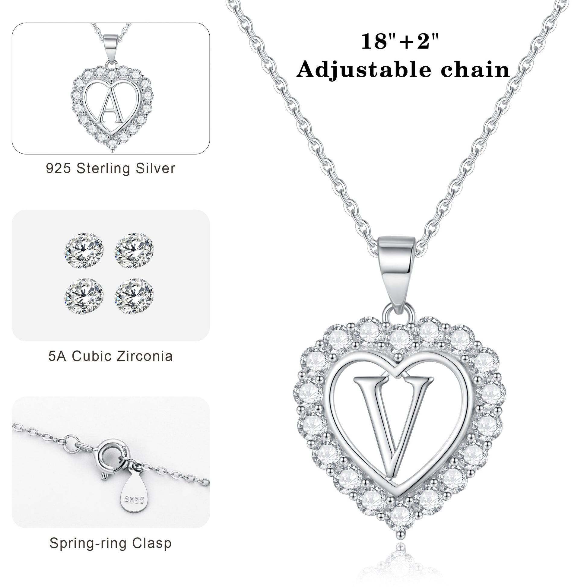 Silvery, heart-shaped zircon initial letter pendant necklace, women's jewelry, a gift for girls;
