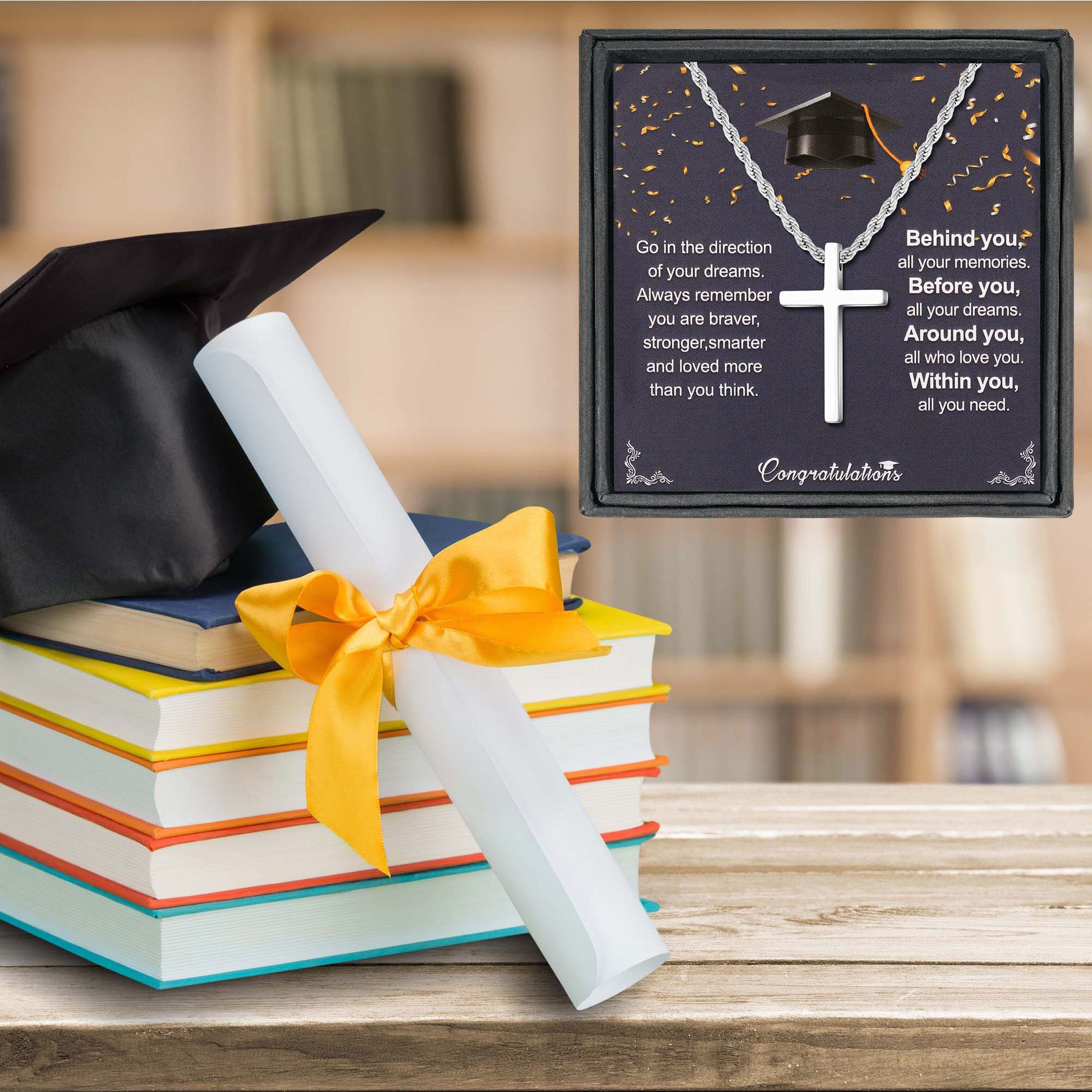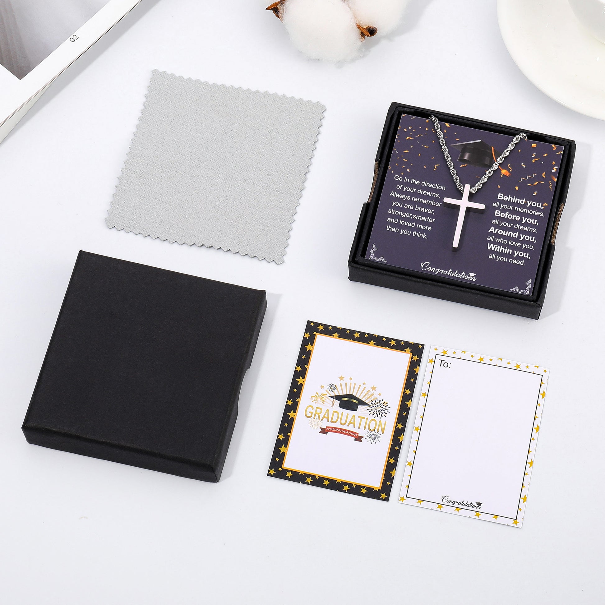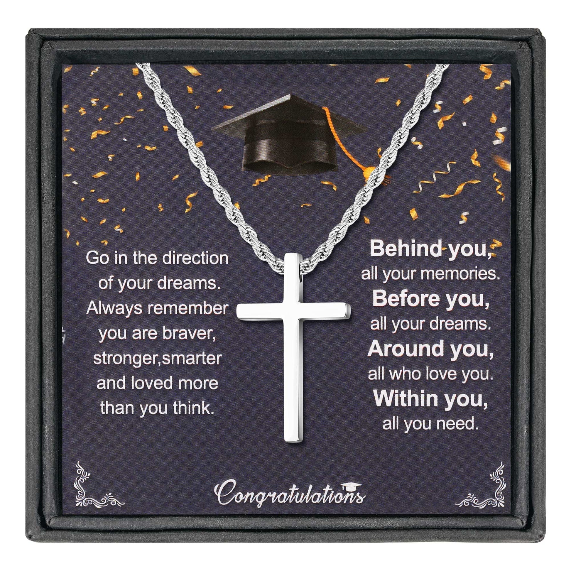 The perfect graduation gift: a graduation cross necklace paired with an exquisite gift box, the perfect graduation gift, a college graduation gift, a high school graduation gift, a gift for him, his son, brother, grandson, and friends on graduation occasions.