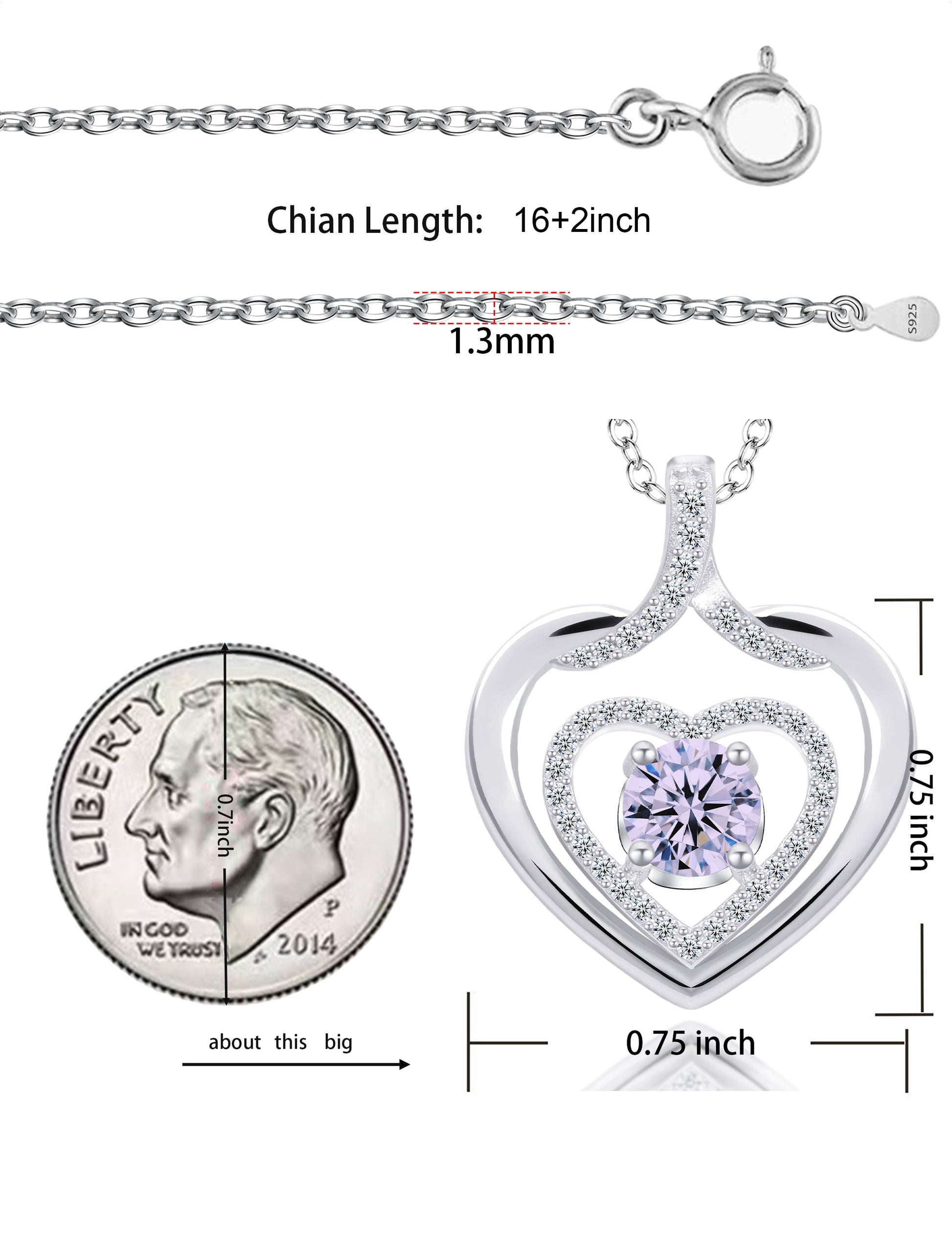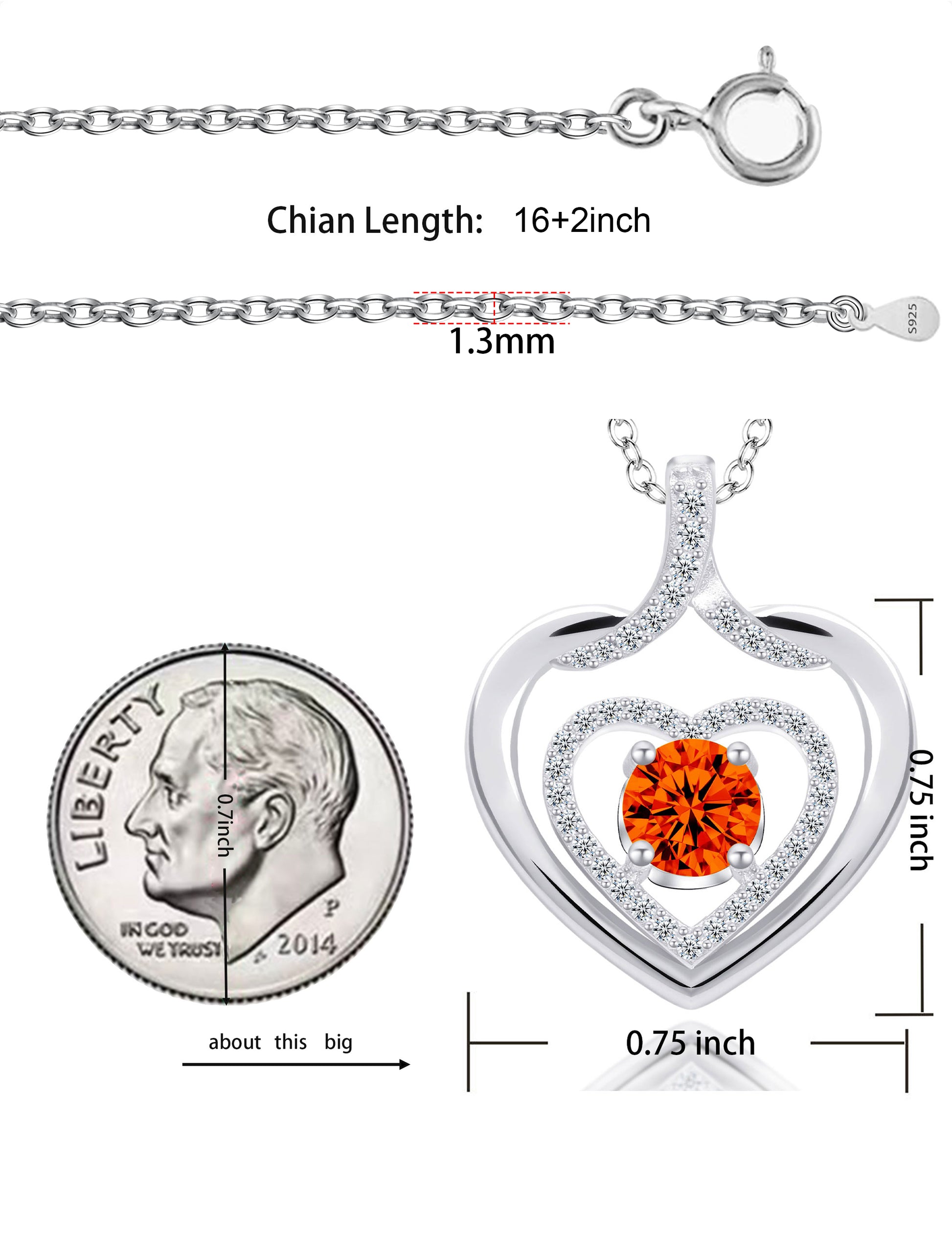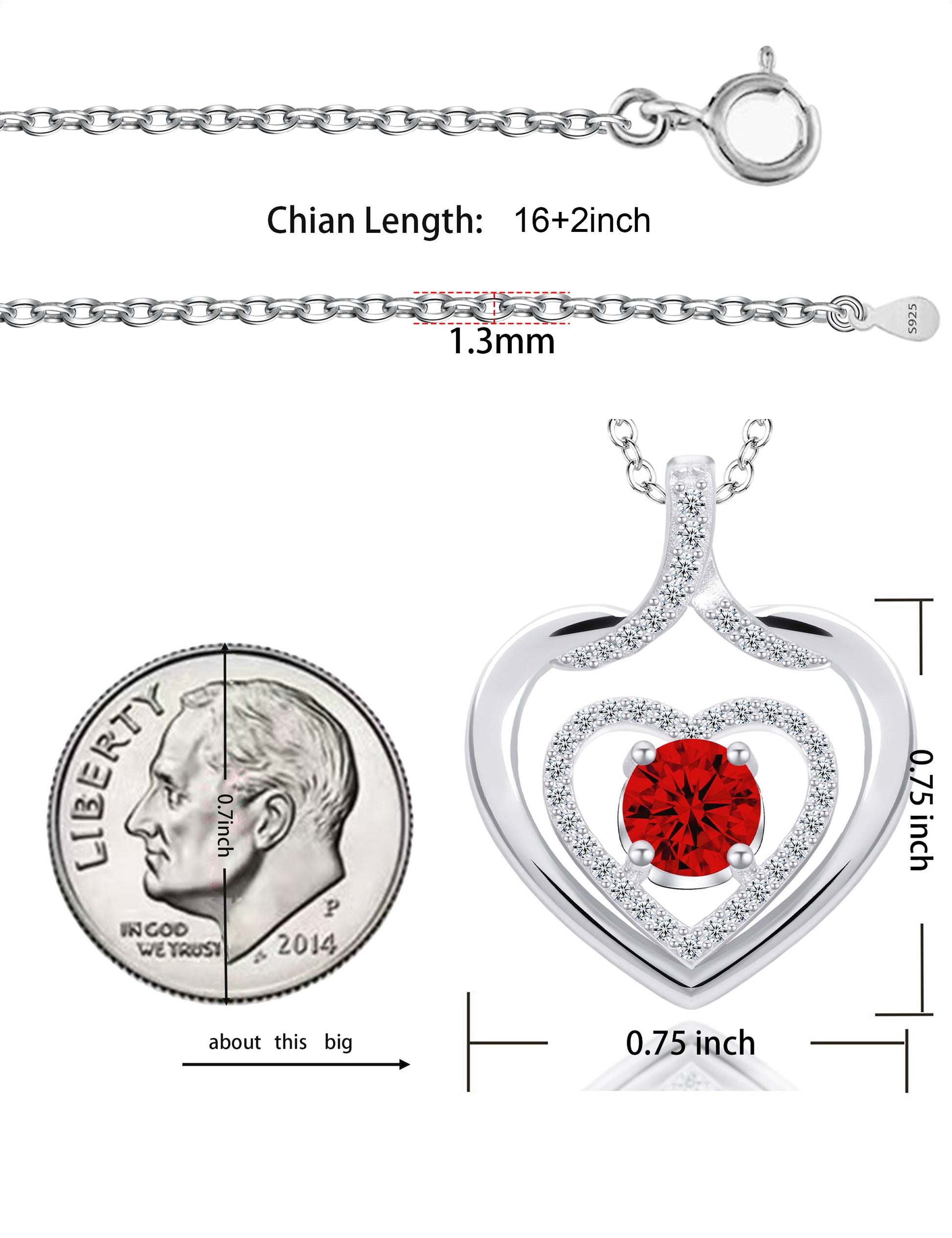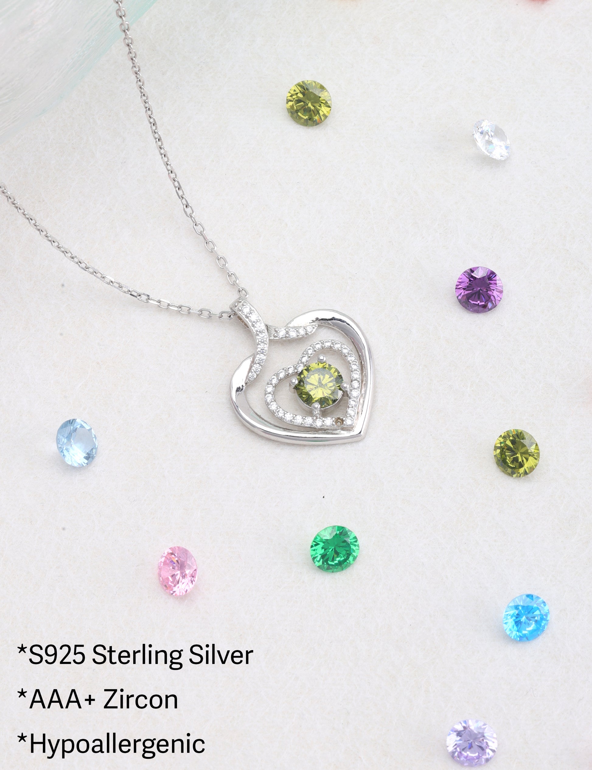 925 silver plated material: The birthstone heart-shaped necklace is made of high-quality silver plating, which is a safe material with low allergenicity and antioxidant properties, and will not irritate the skin. The length of the birthstone necklace is 45.08+3.5 centimeters, suitable for most people.