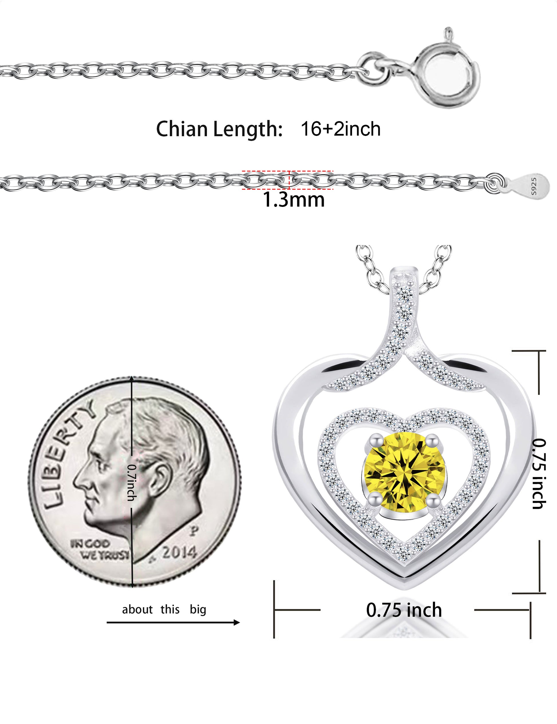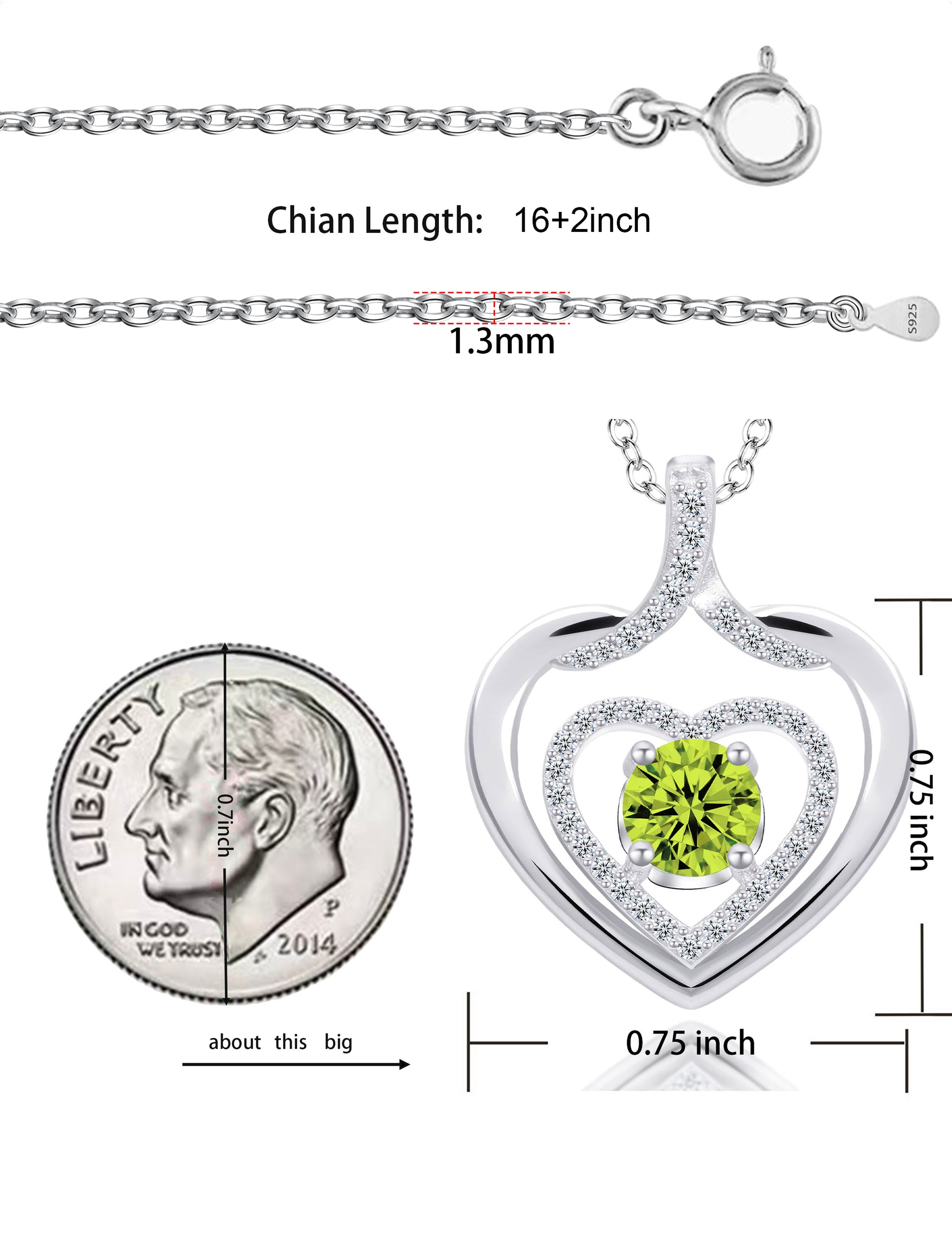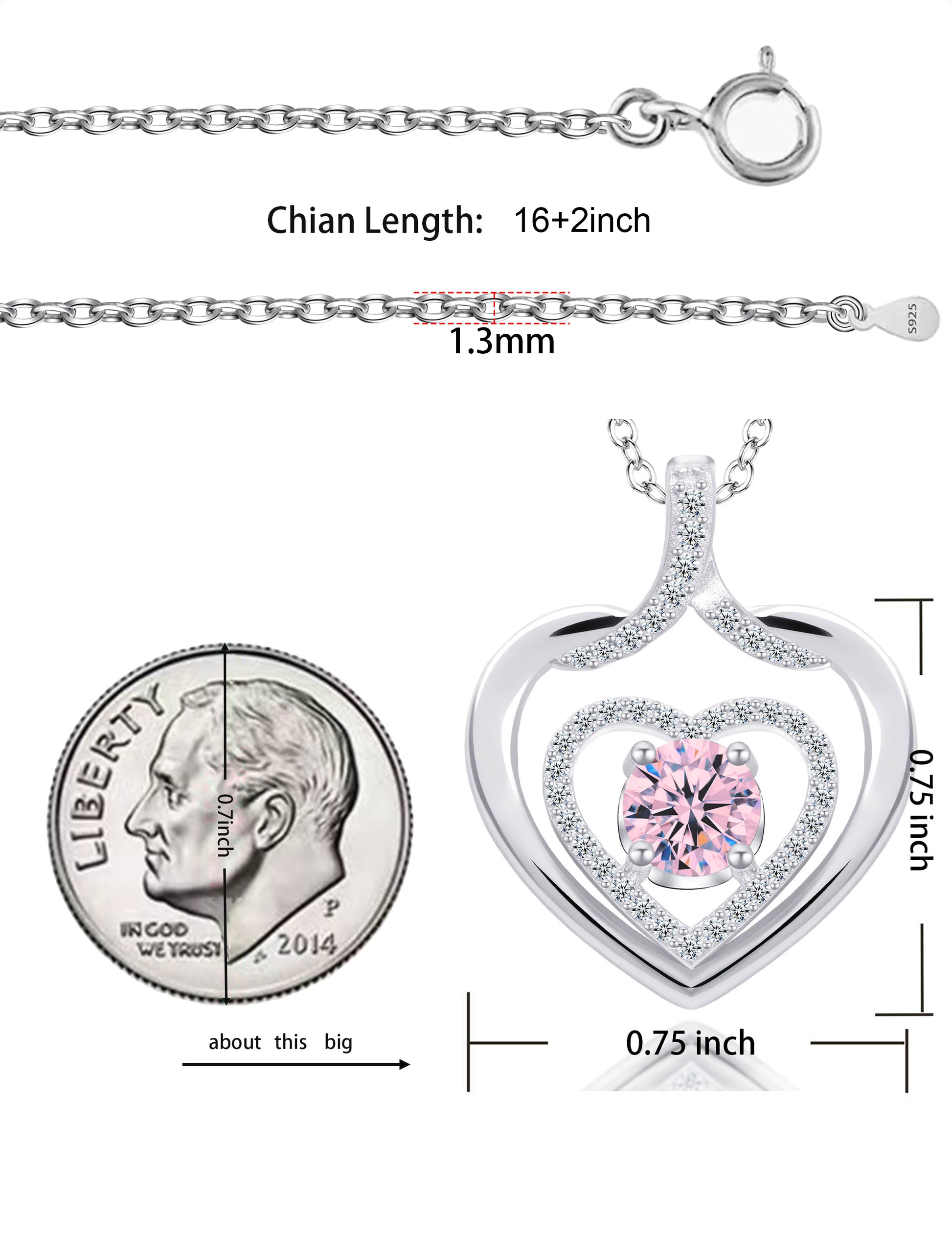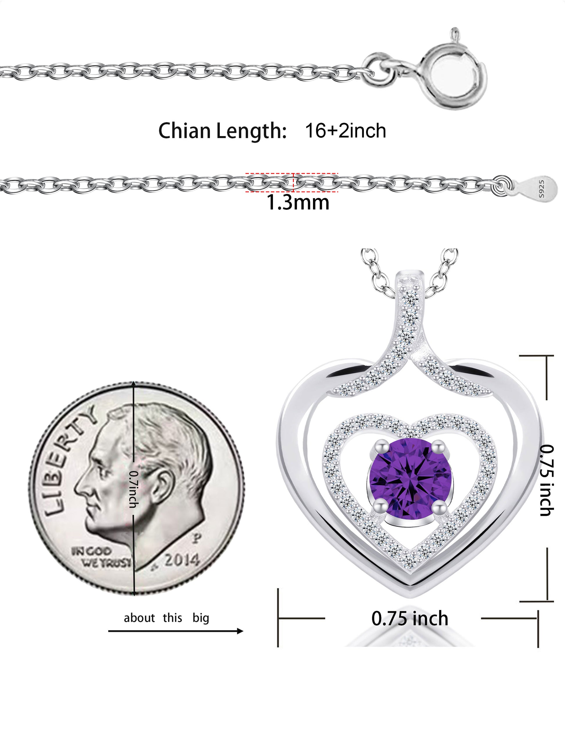 925 silver plated material: The birthstone heart-shaped necklace is made of high-quality silver plating, which is a safe material with low allergenicity and antioxidant properties, and will not irritate the skin. The length of the birthstone necklace is 45.08+3.5 centimeters, suitable for most people.