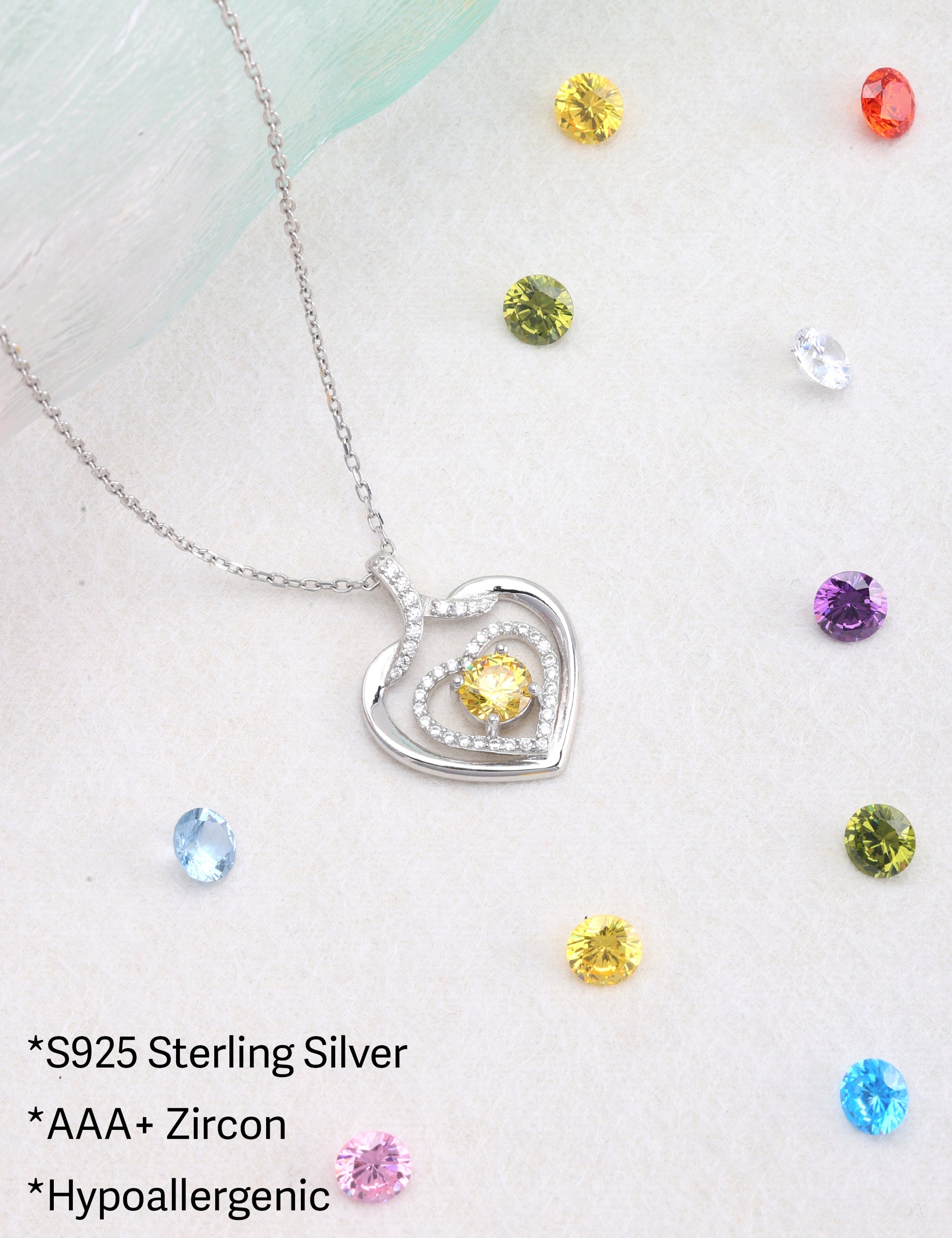The unique double heart-shaped design of the "Women's Birthstone Necklace" represents you and your important other heart shape. The cubic gemstone of gemstone quality is embellished in the middle of the birthstone heart-shaped necklace pendant, with precise cutting and extraordinary brilliance.