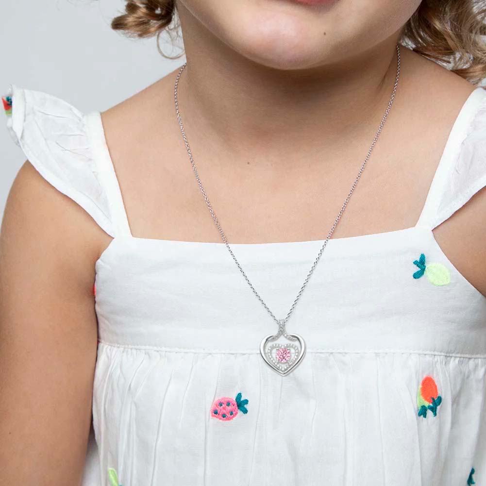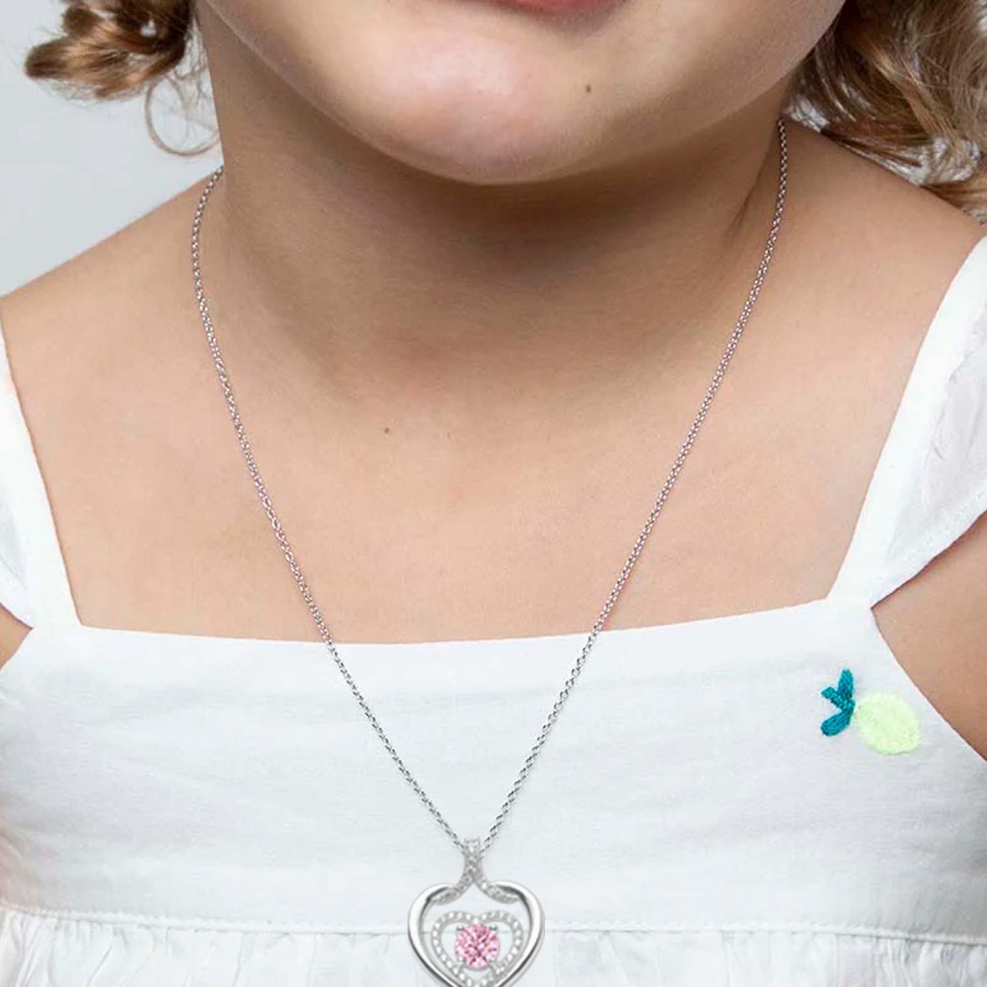 Silvery, twin heart birthstone necklace, S925 silver plated birthstone necklace, suitable for teenage girls, birthday jewelry gift;