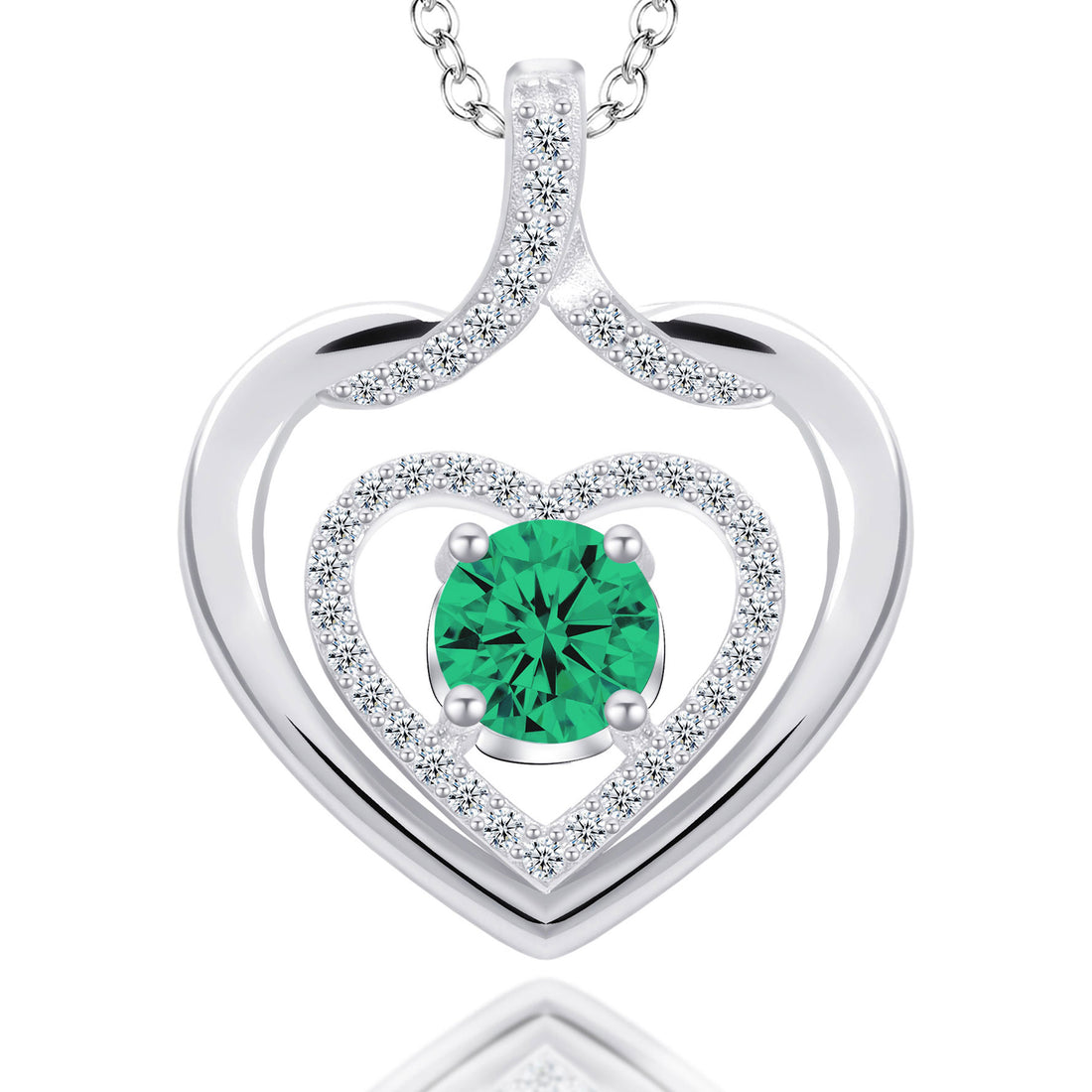 Silvery, rotating heart-shaped birthstone necklace, S925 silver plated birthstone necklace, suitable for teenage girls, birthday jewelry gift;