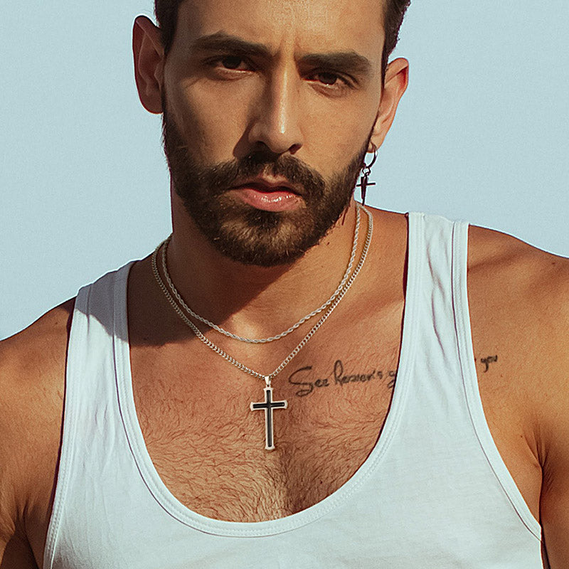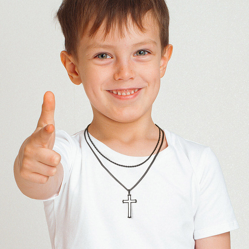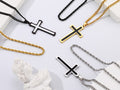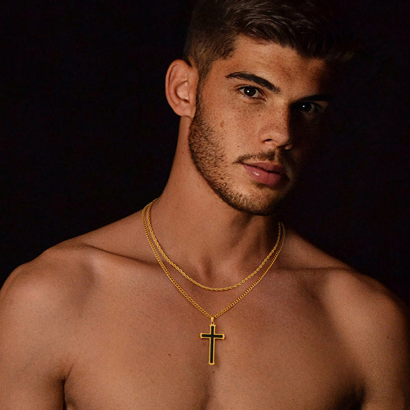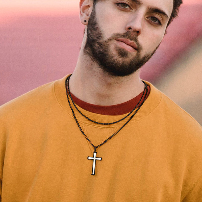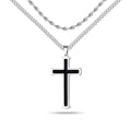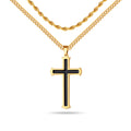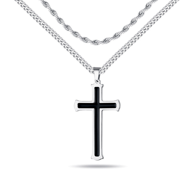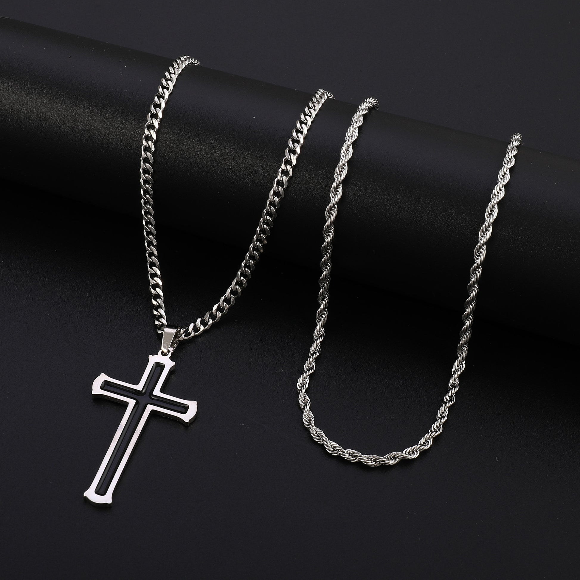 Black/Golden/Silvery, Cuban Chain with Rope Double Layer Chain, Hollow Cross Hanging Tag Necklace