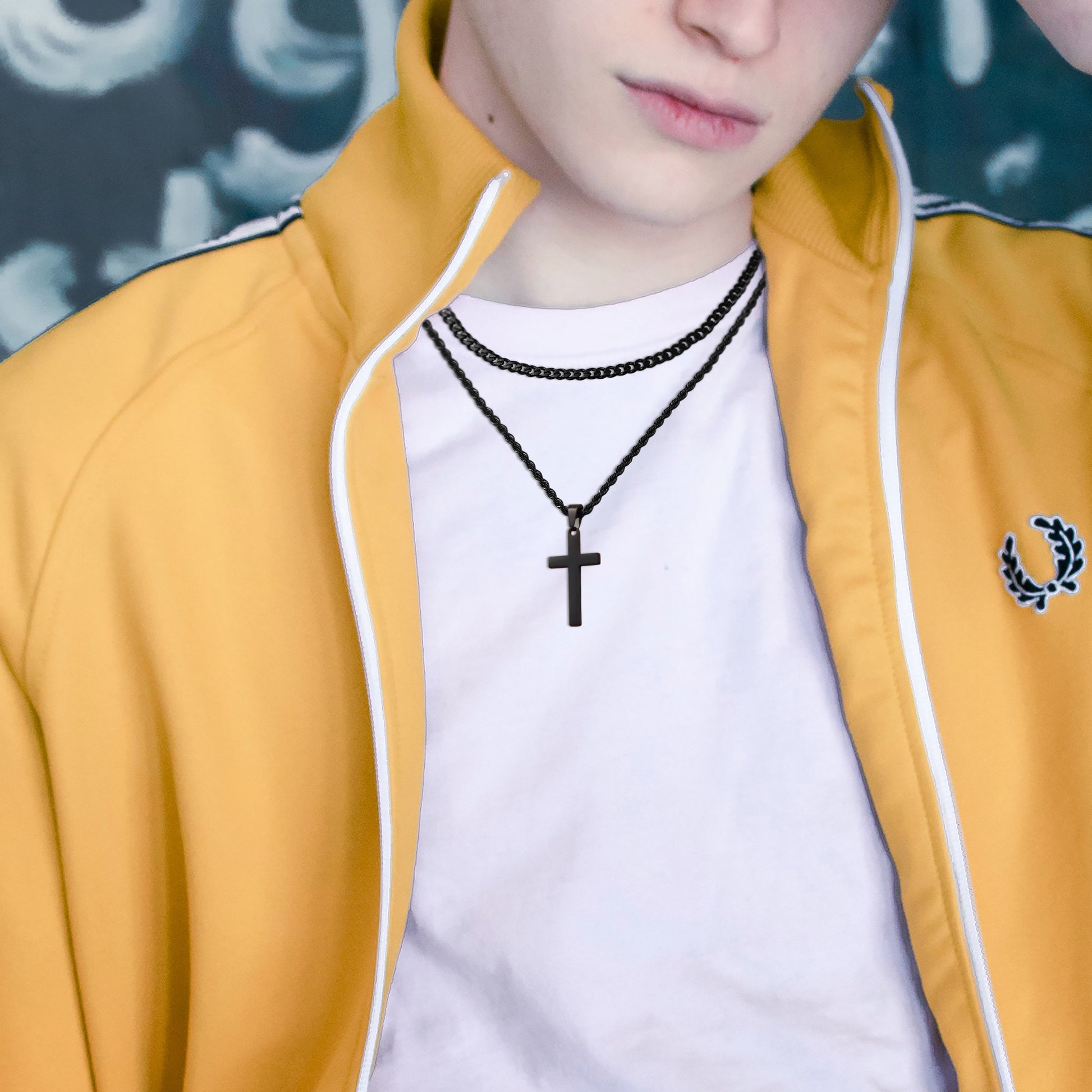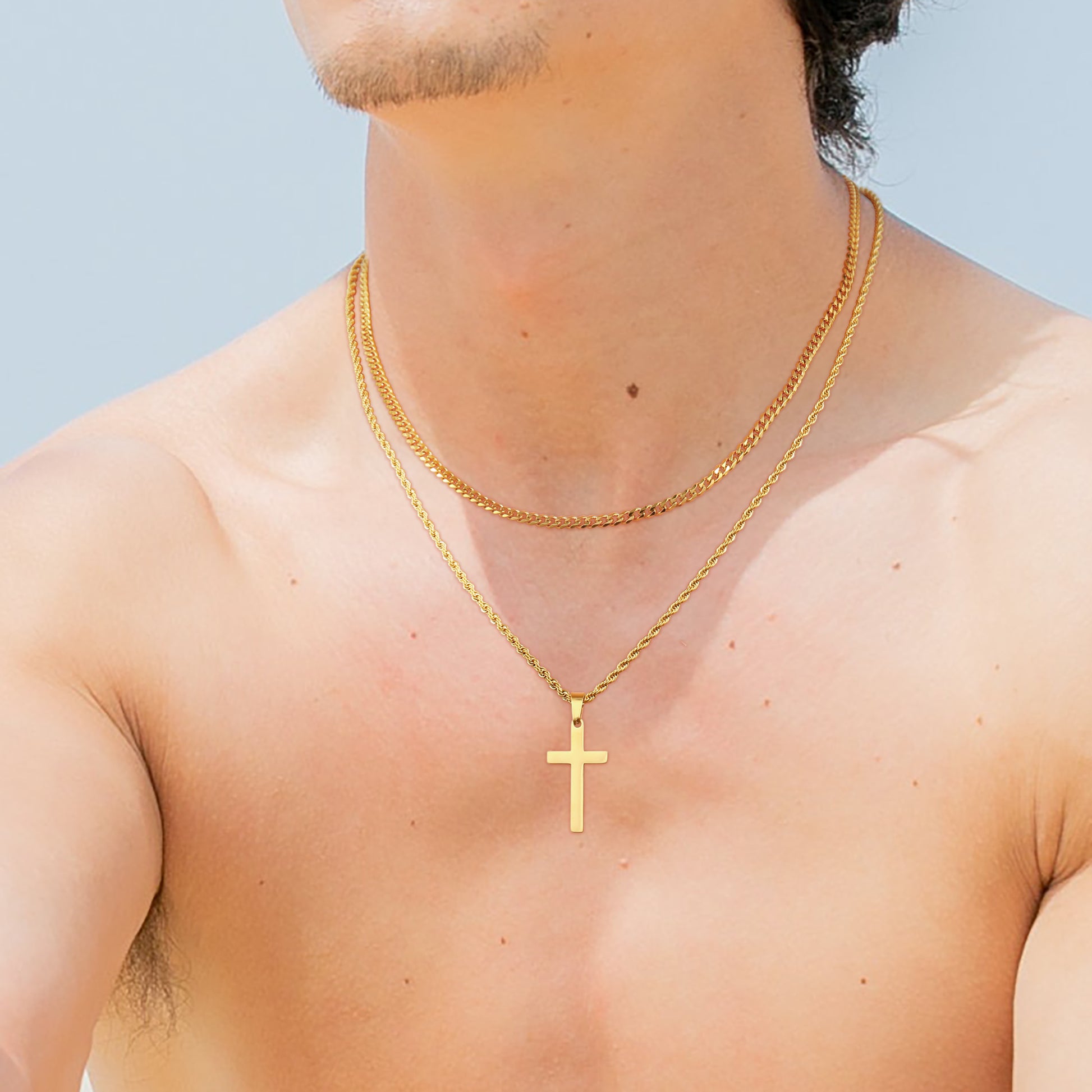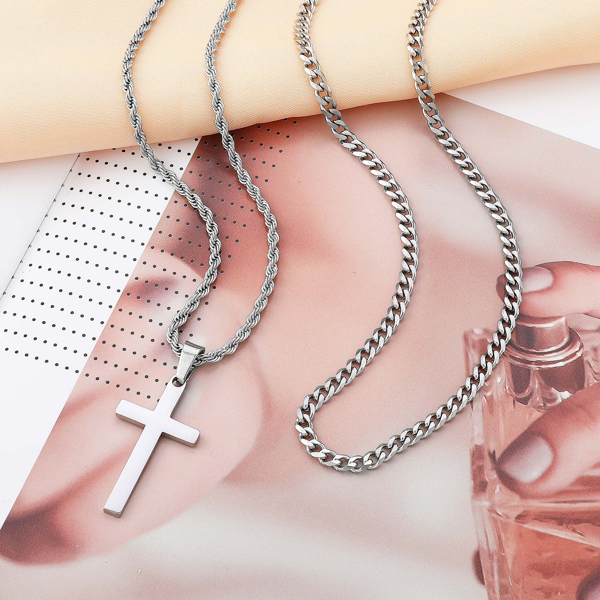 Black/Golden/Silvery, Short Cuban Chain, Extended Rope Chain, Double Layer Chain, Cross Tag Necklace, Style B - Cuban and Rope Hole