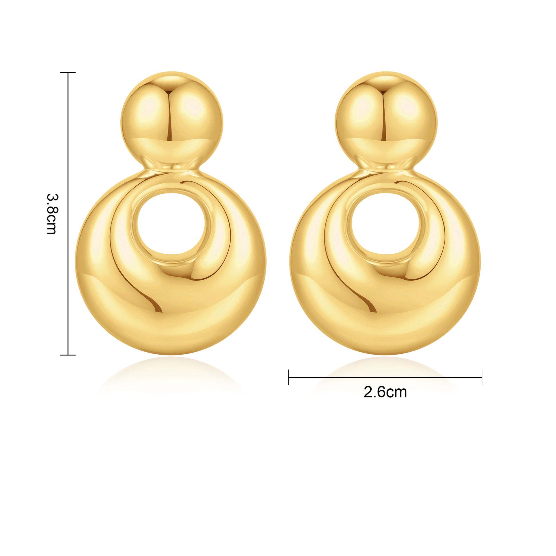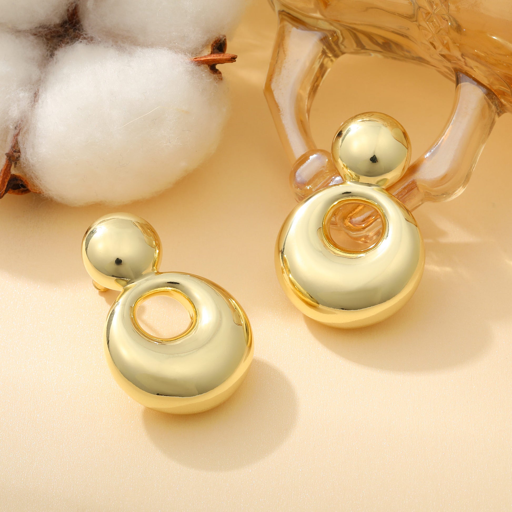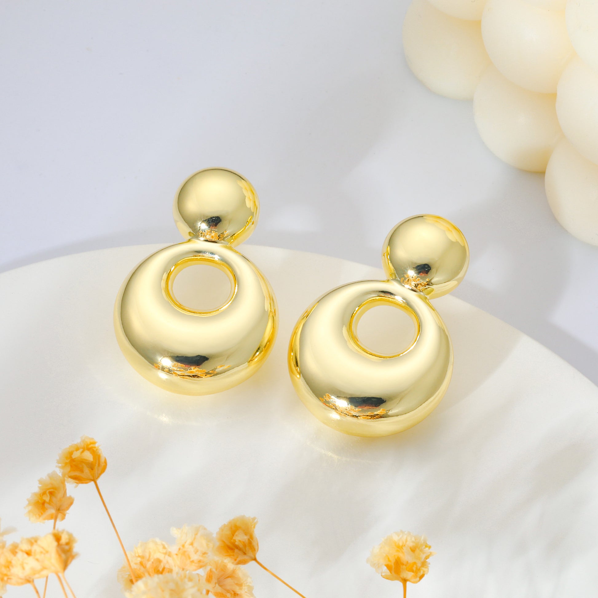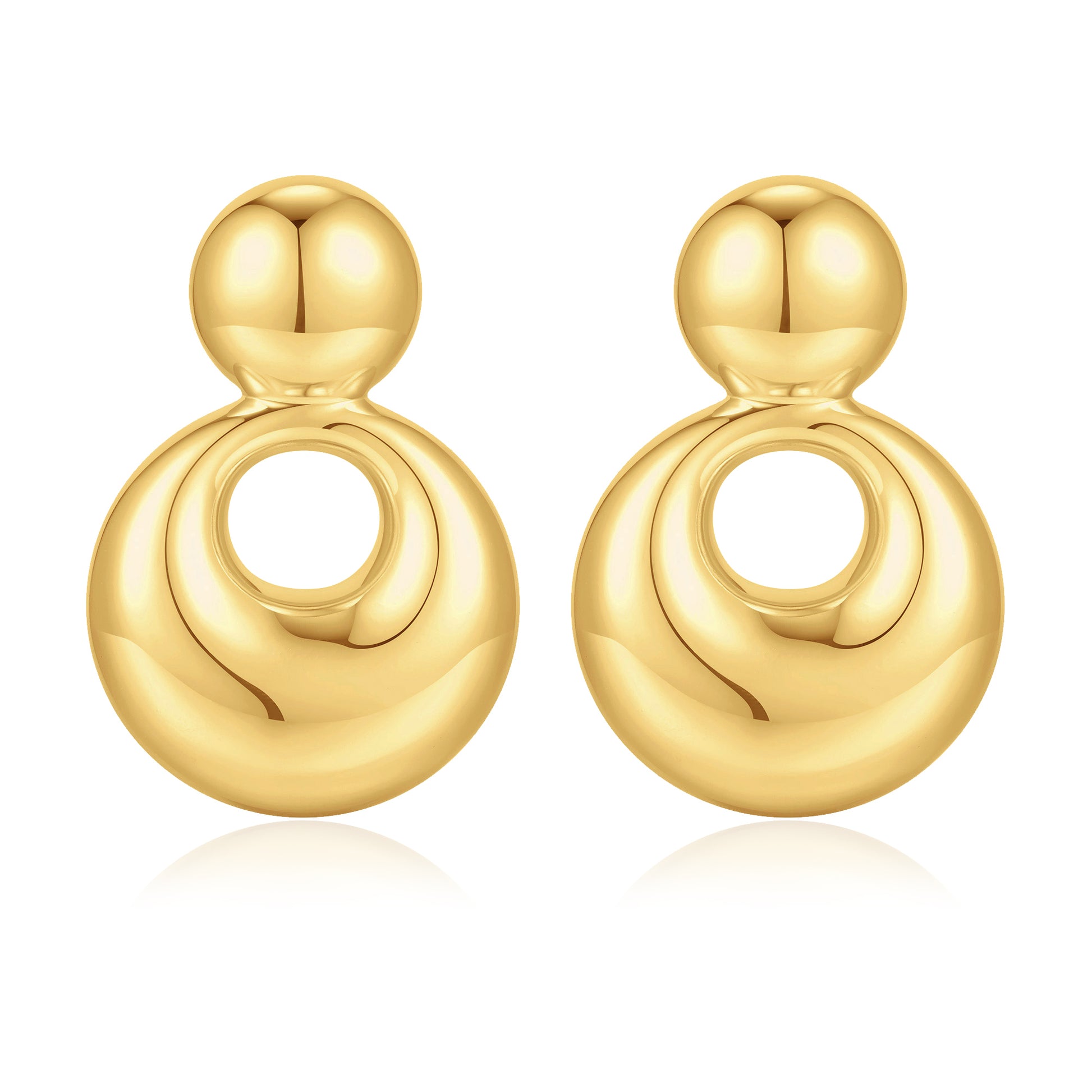 Gold, small solid and large round earrings