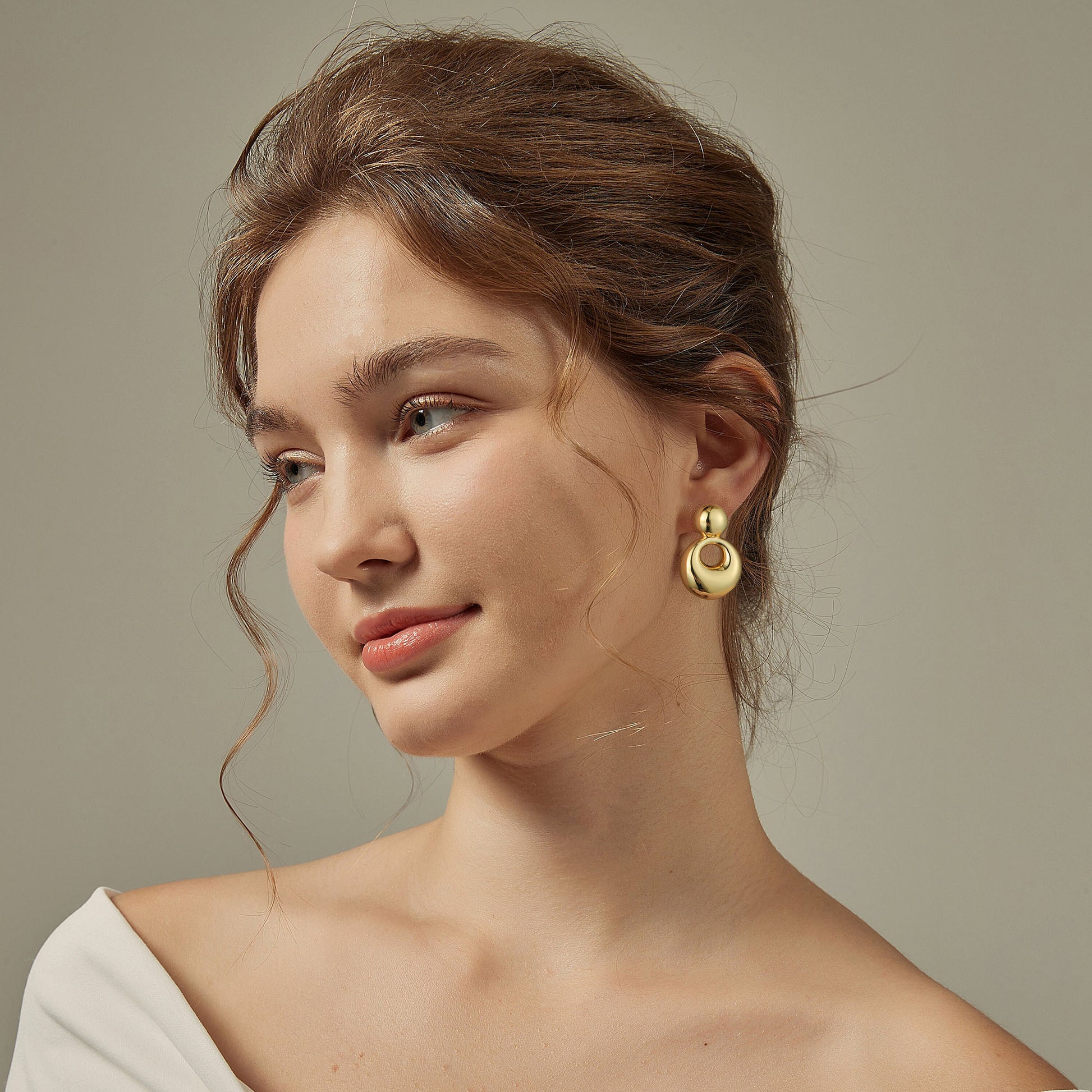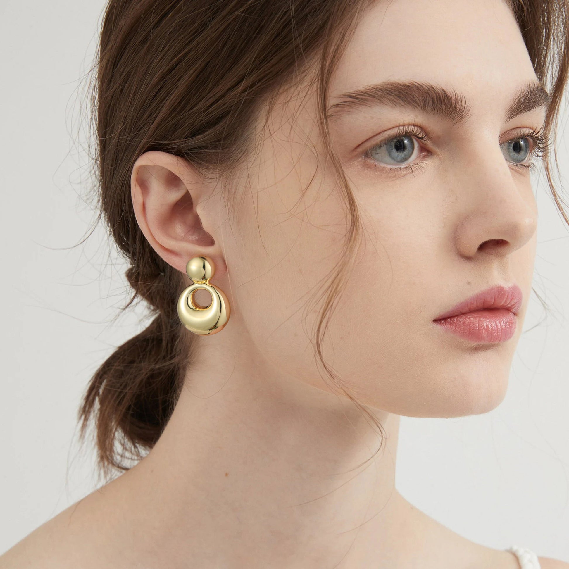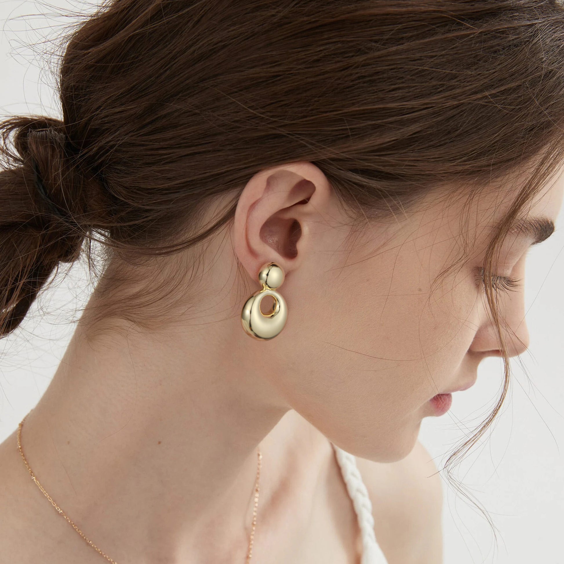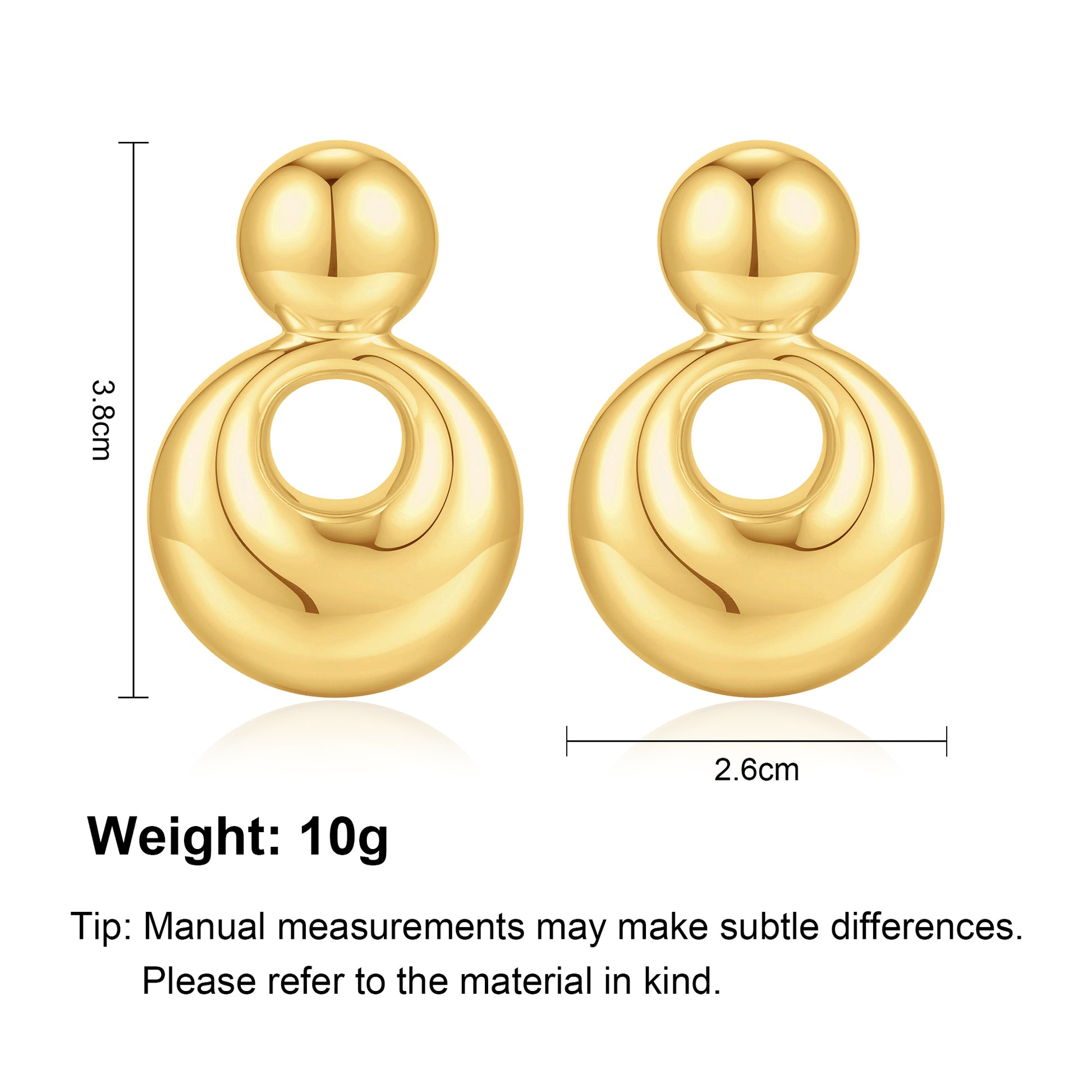 Gold, small solid and large round earrings