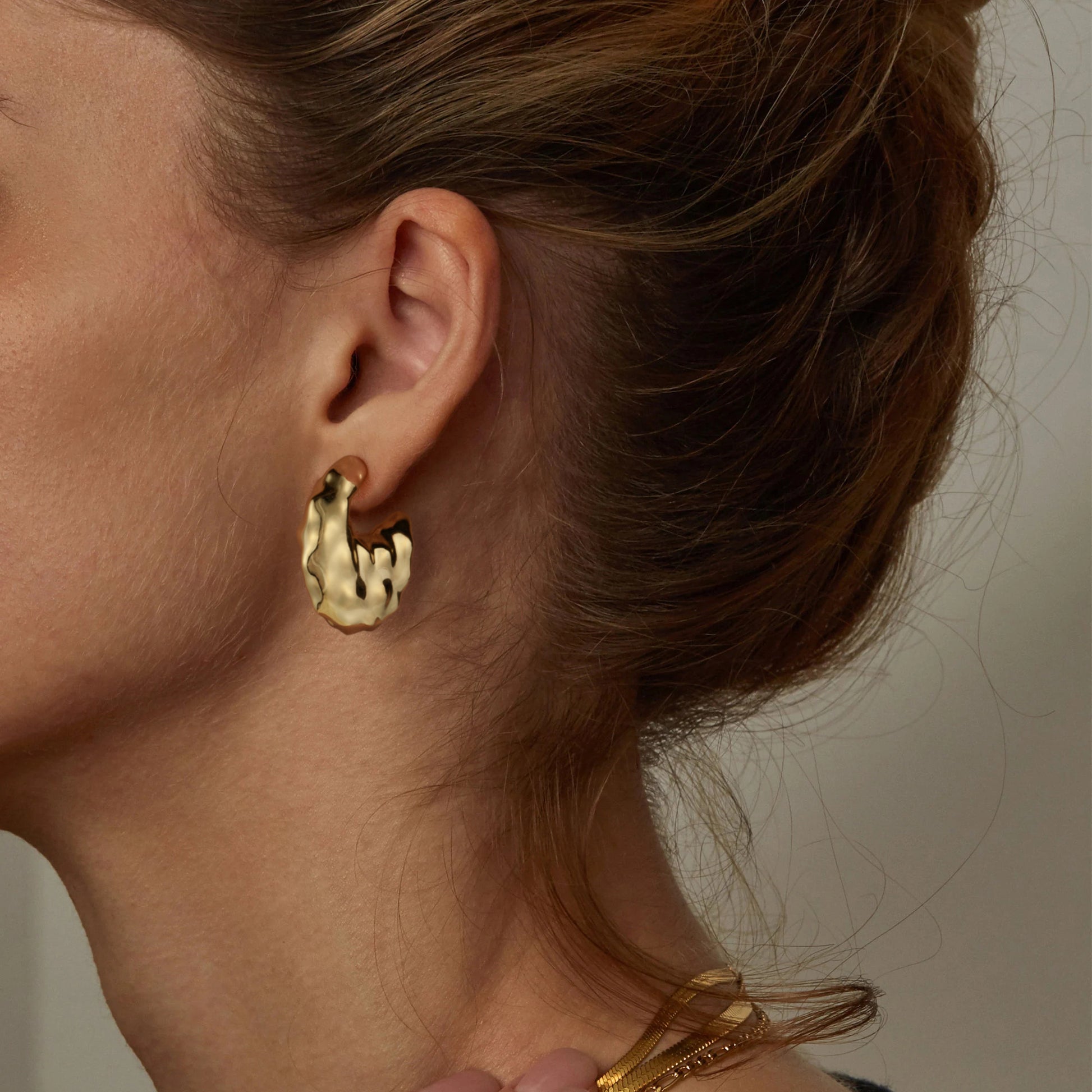 Anti-allergic golden earrings: made of high-quality brass and 14K golden plating, durable, not easy to fade, lead-free, nickel-free, high-quality materials, highly polished, durable and comfortable to wear.