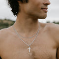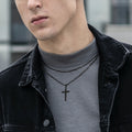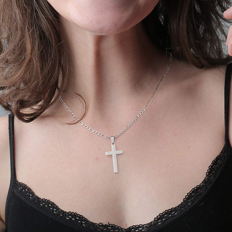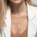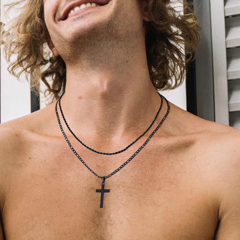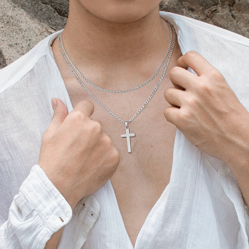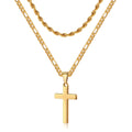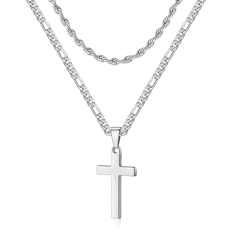 golden, Figaro style chain, stainless steel melon seed buckle cross double layered chain, style B-rope and Figaro buckle