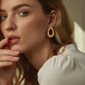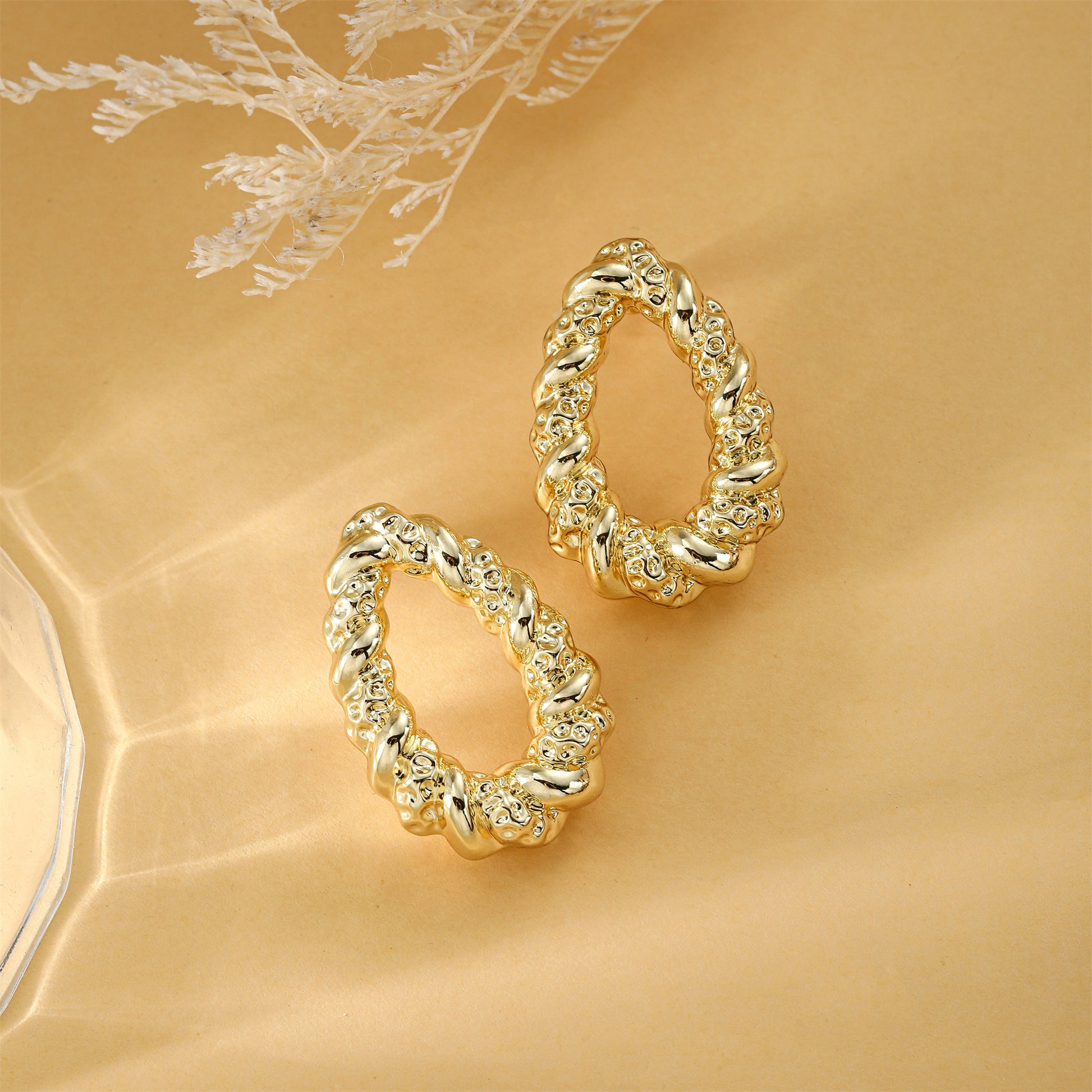 Golden O-shaped hoop earrings with a pattern of two intersecting strands