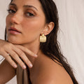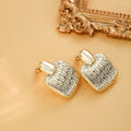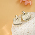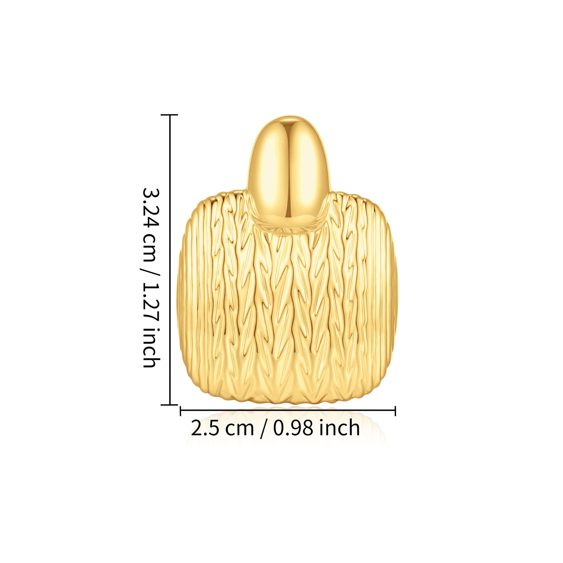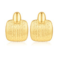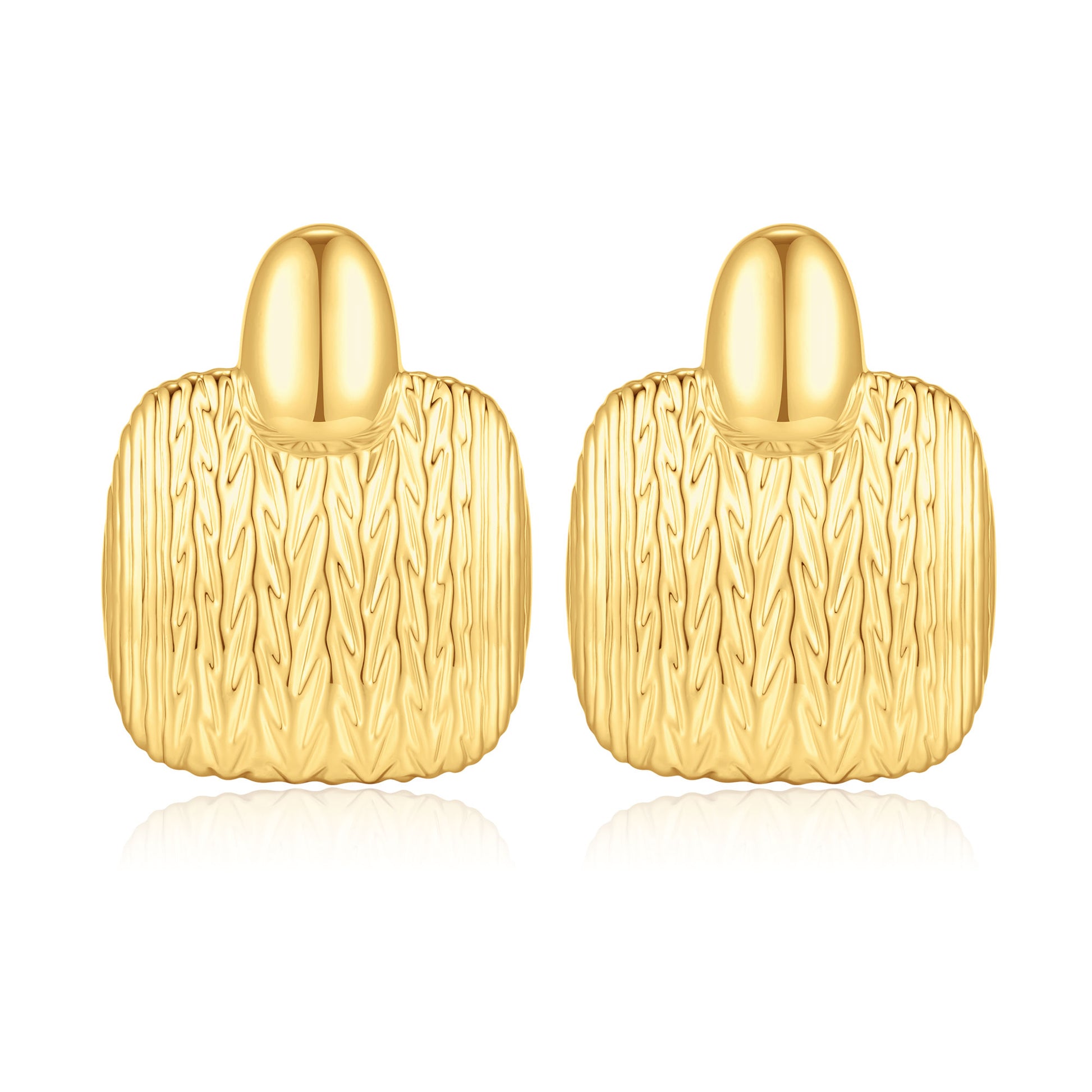 Golden, quadrilateral earrings with a pattern resembling the texture of a sweater