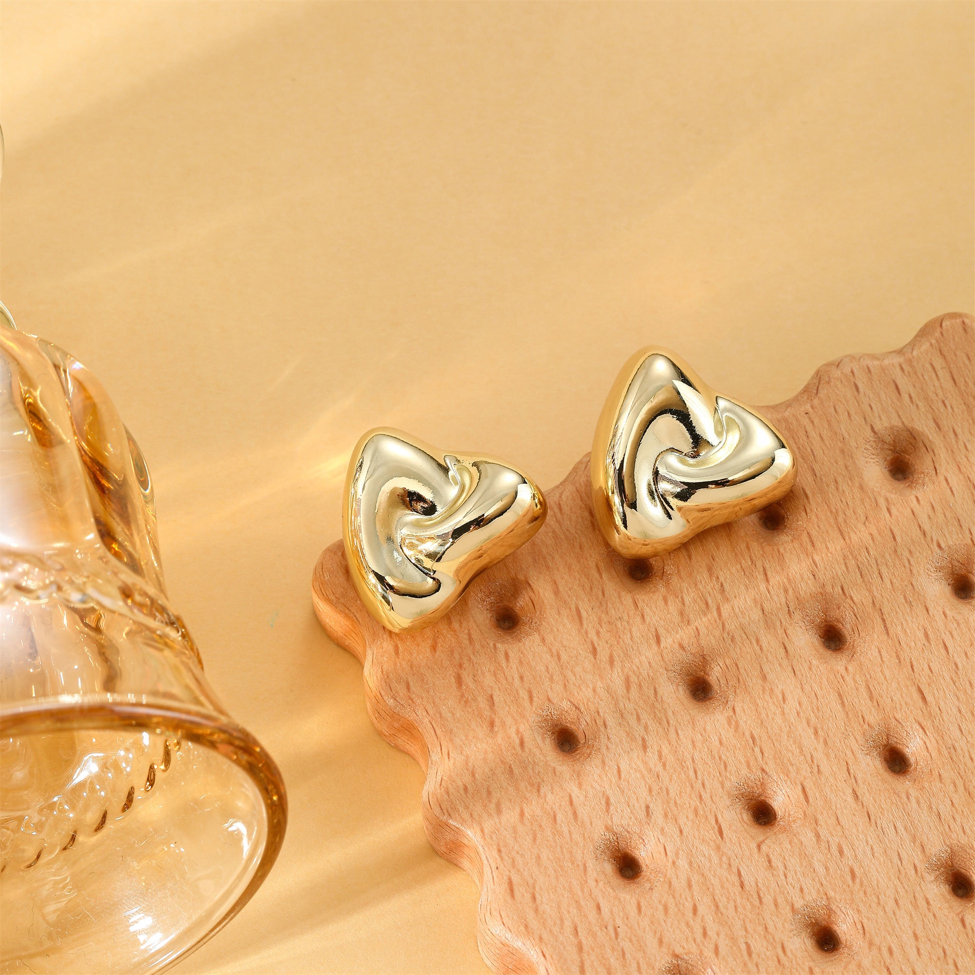 Golden, triangular rice and vegetable roll shaped earrings