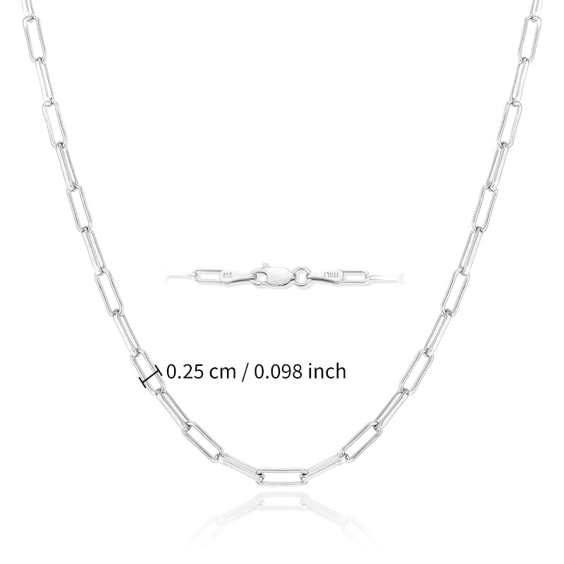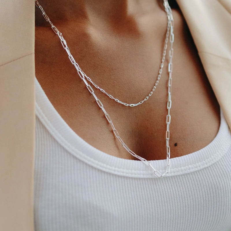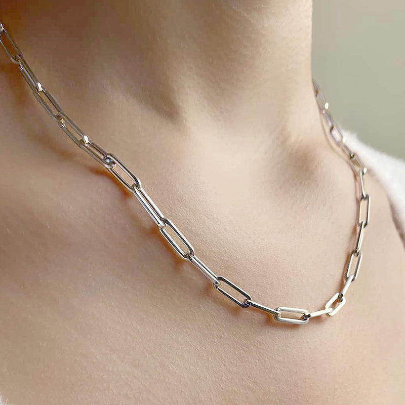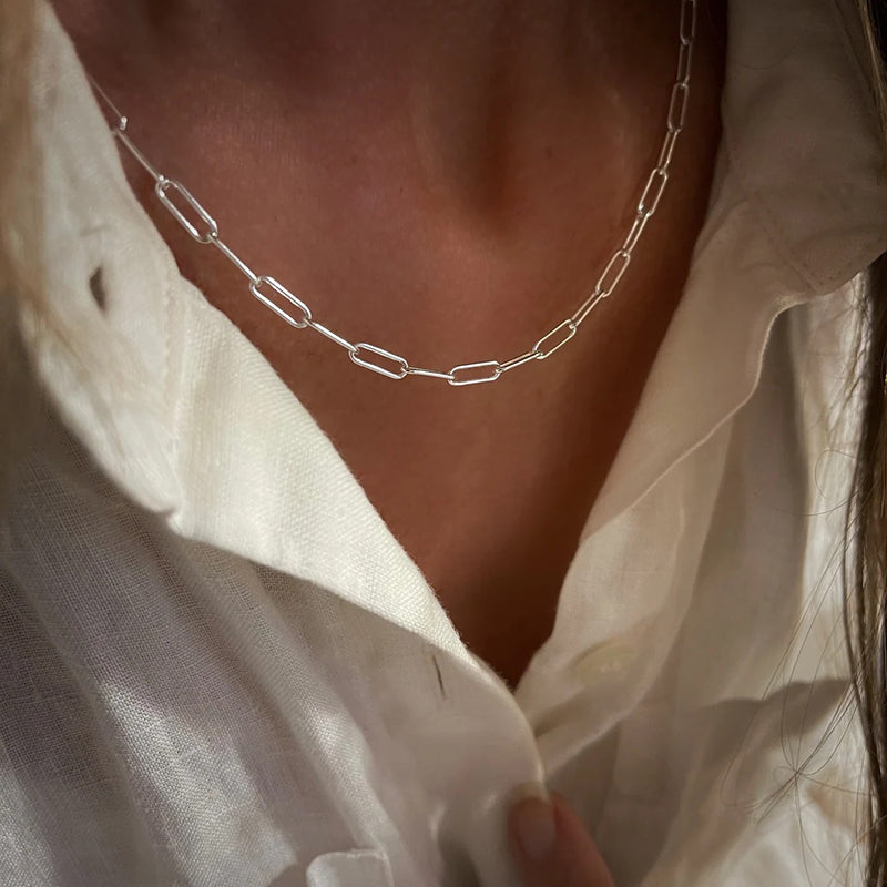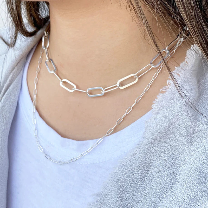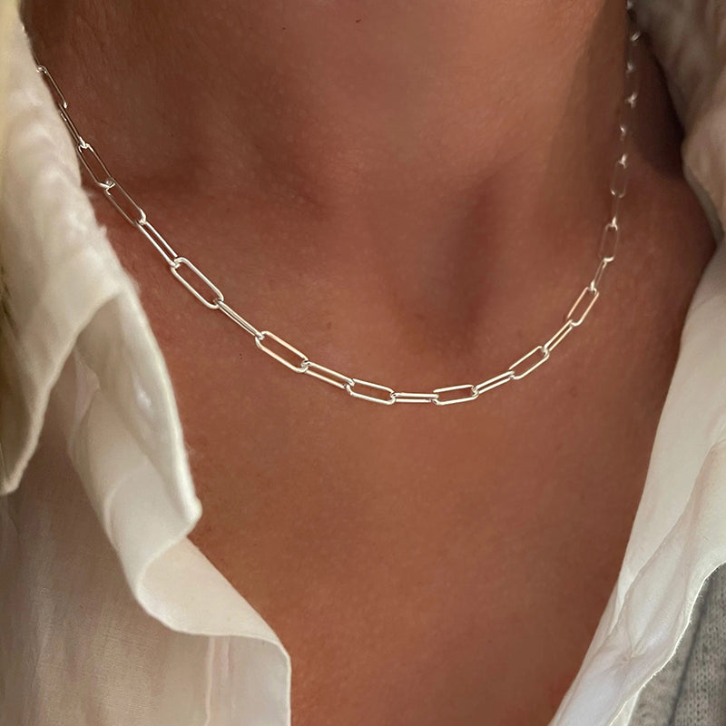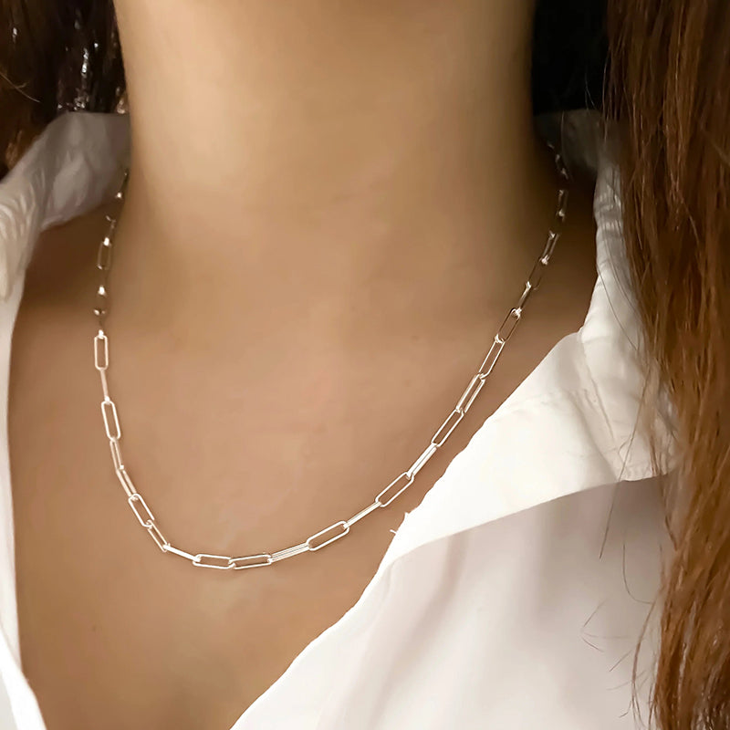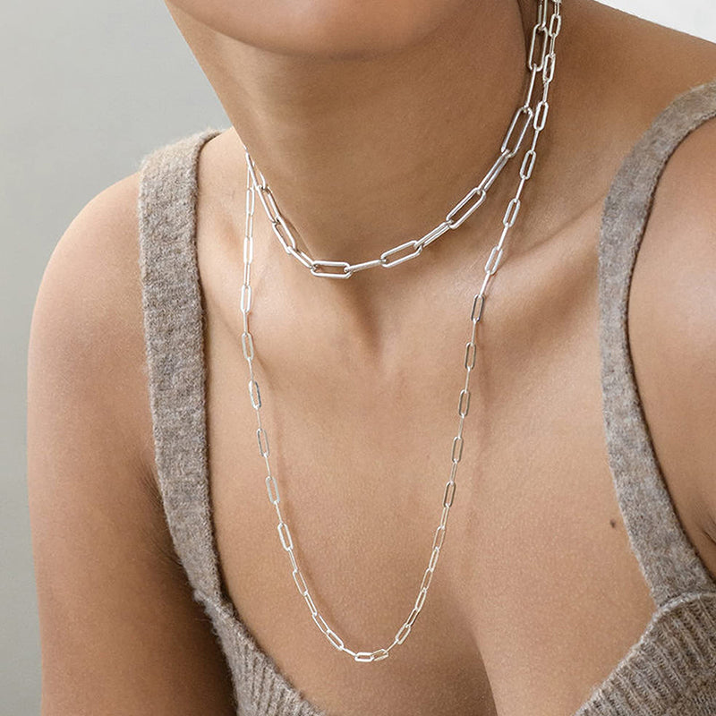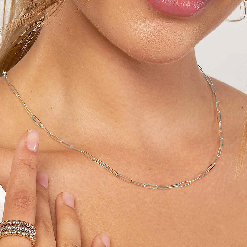 Multiple Size Options: Choose from a range of sizes to find the perfect fit for you. Our Elegant Sterling Silver Paperclip Necklace is available in various lengths, allowing you to select the one that suits your style and comfort. It can also be accessorized with other necklaces.