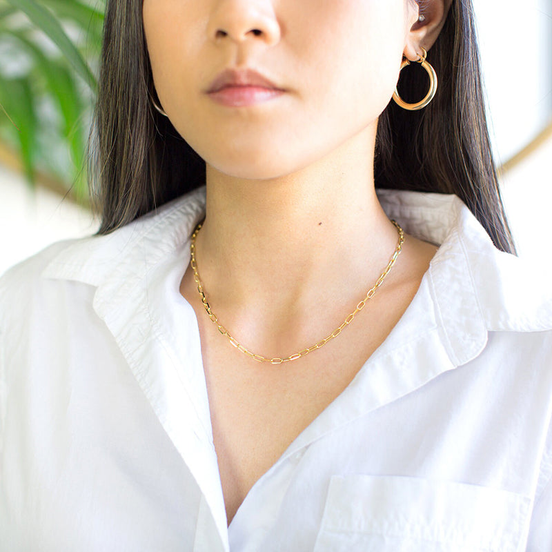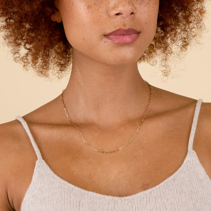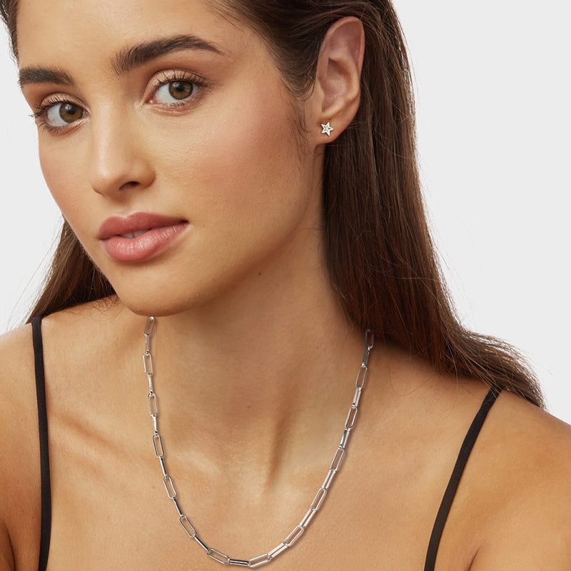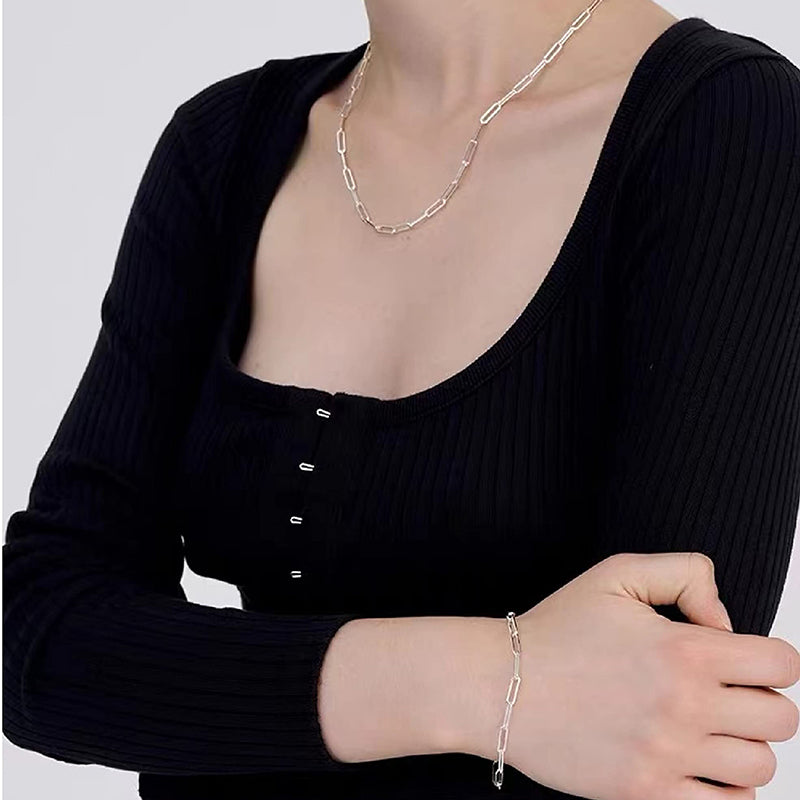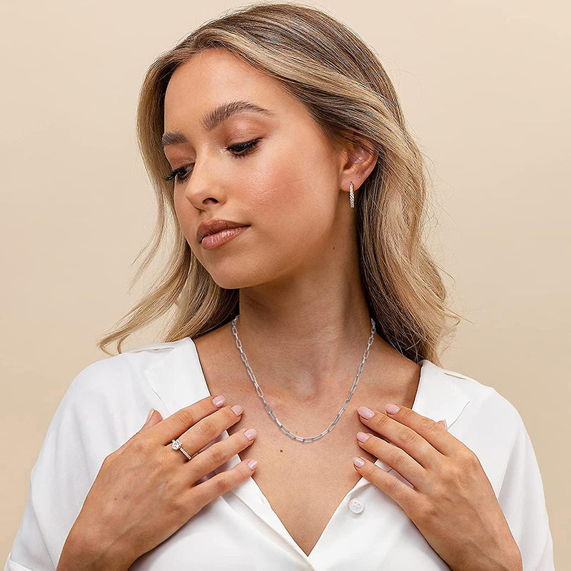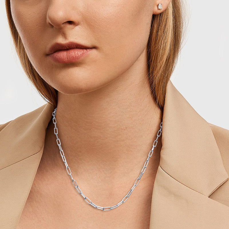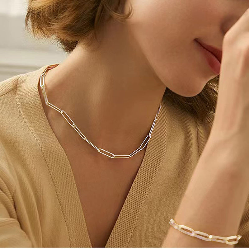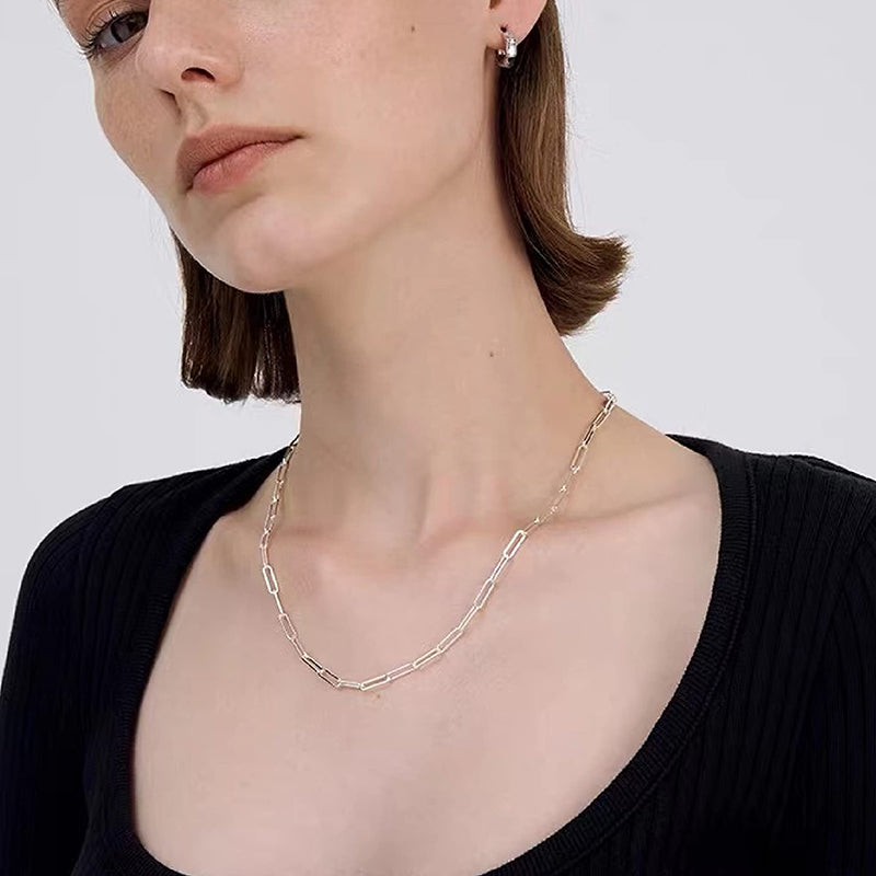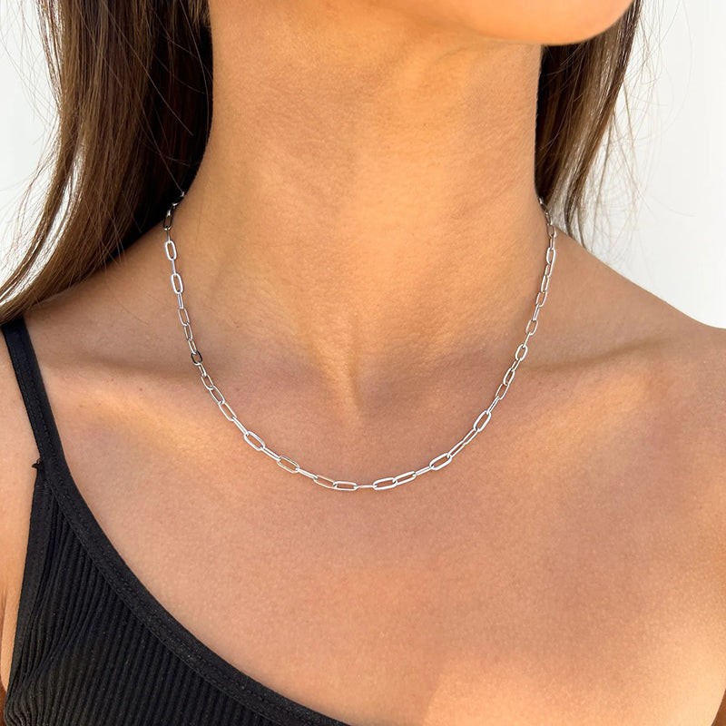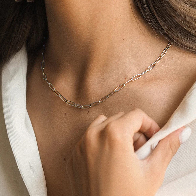 Multiple Size Options: Choose from a range of sizes to find the perfect fit for you. Our Elegant Sterling Silver Paperclip Necklace is available in various lengths, allowing you to select the one that suits your style and comfort. It can also be accessorized with other necklaces.