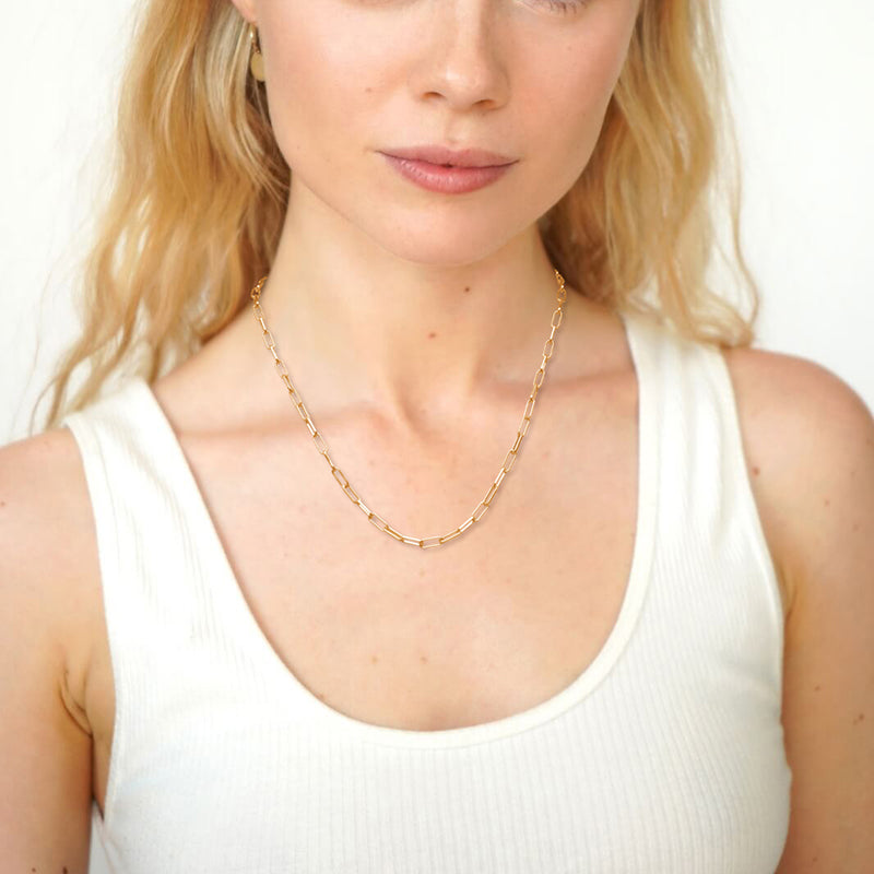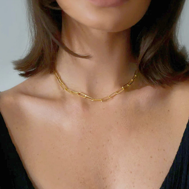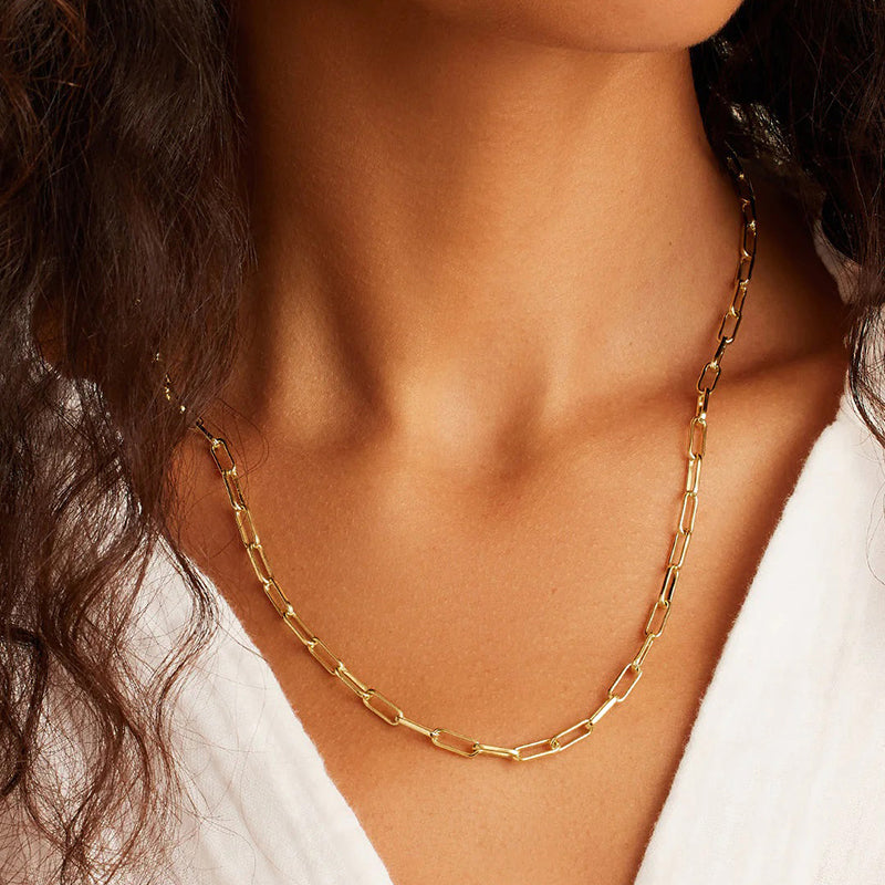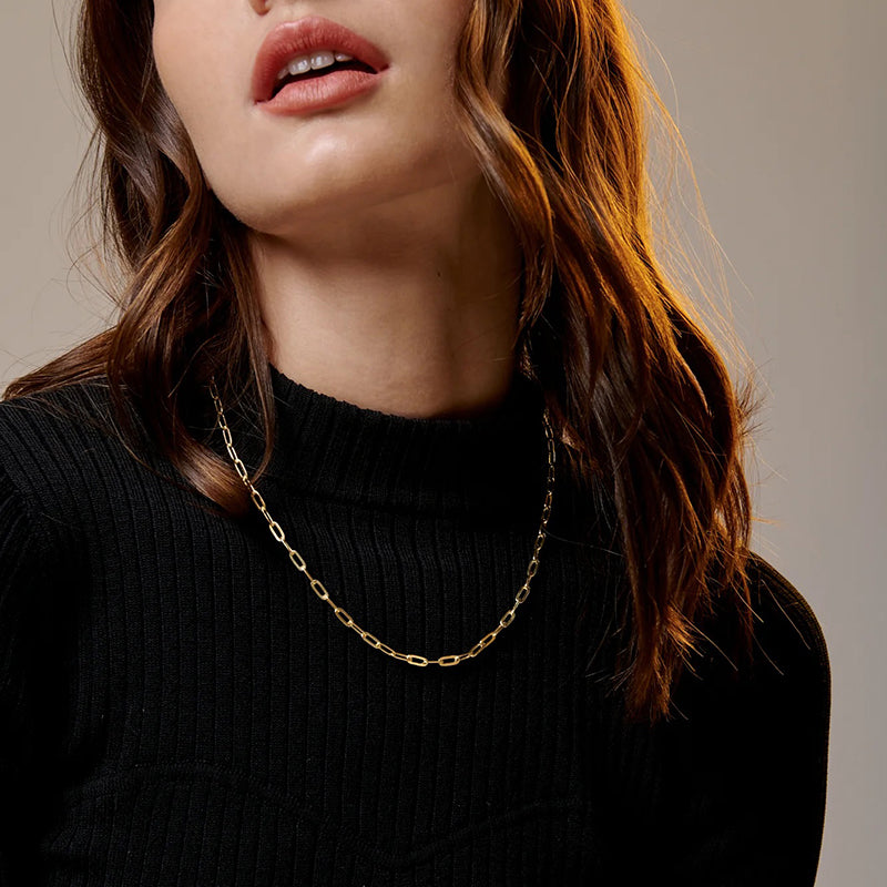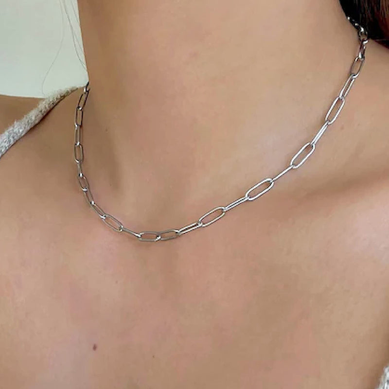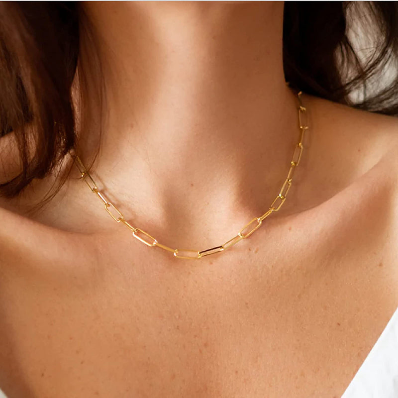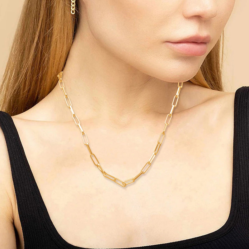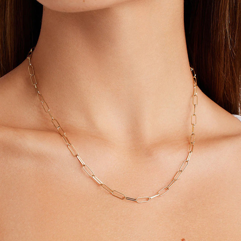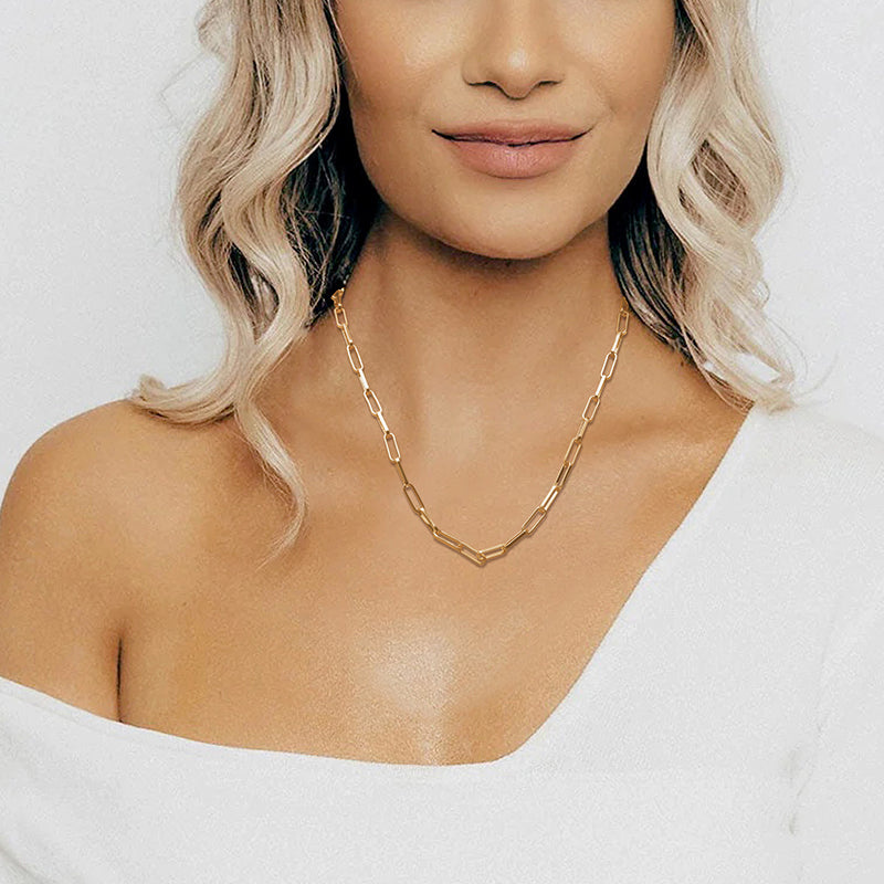 Sleek Paperclip Chain Design: The minimalist yet striking paperclip design of this necklace sets it apart. Its clean lines and contemporary aesthetic make it the perfect addition to both casual and formal outfits.