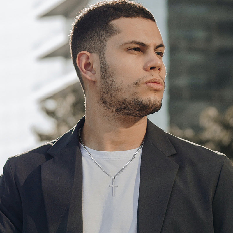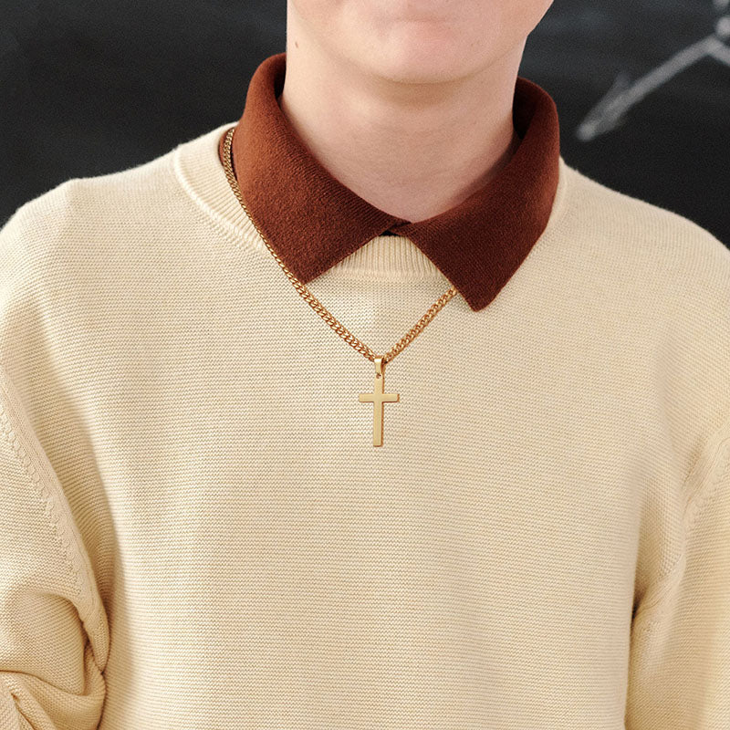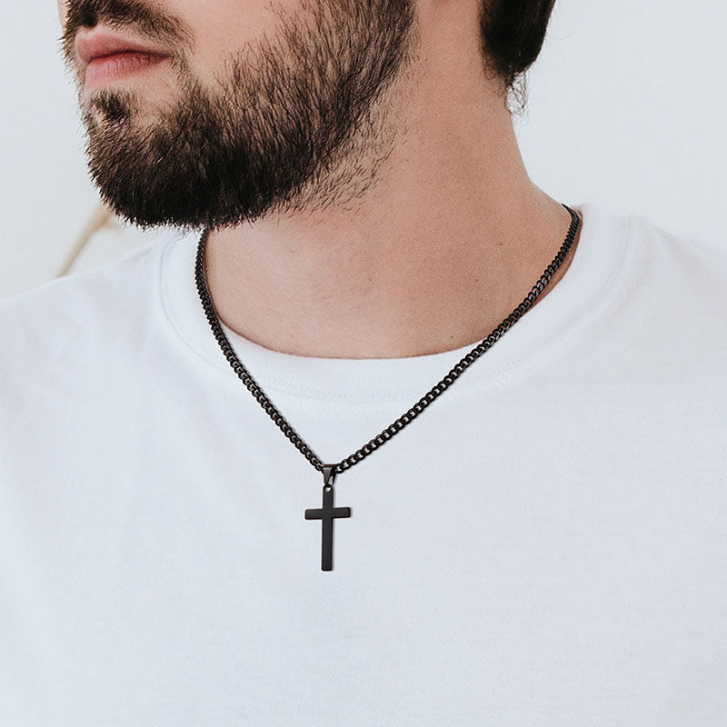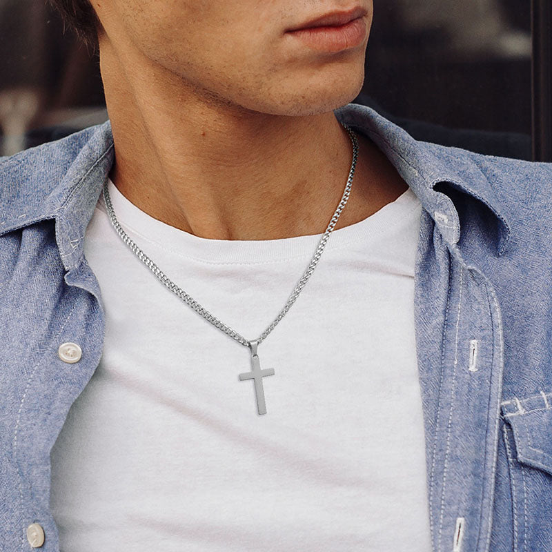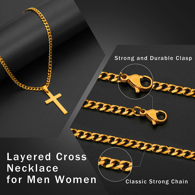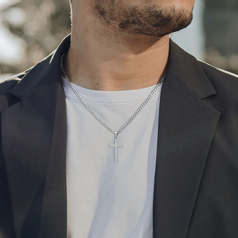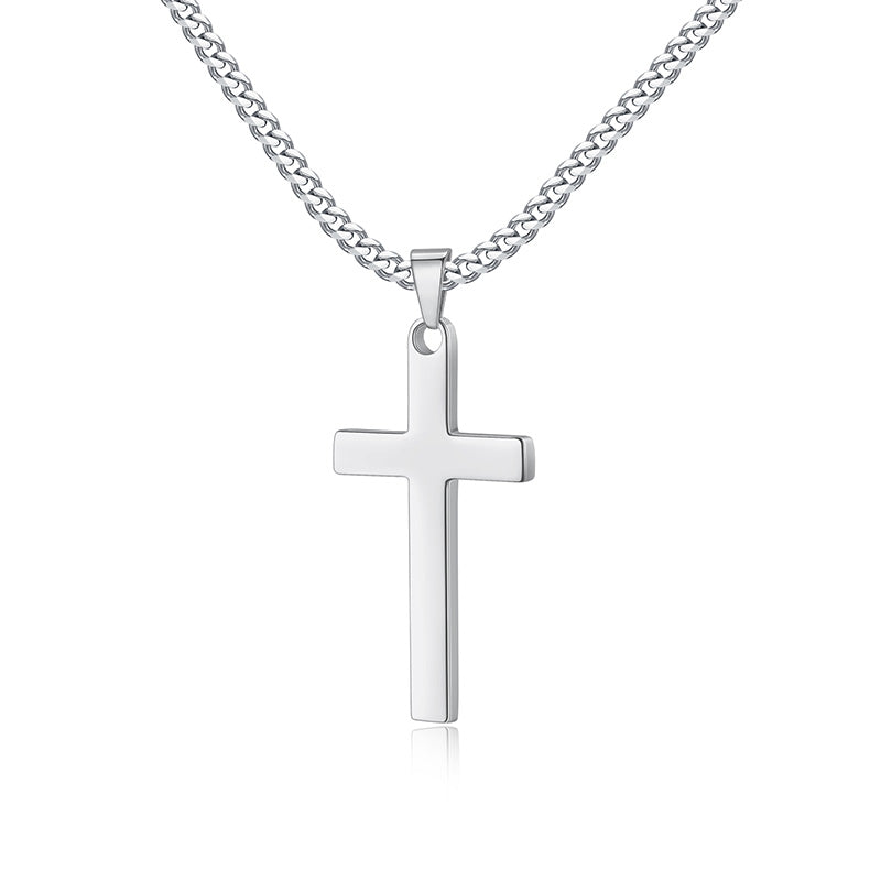 Silvery/black/golden, Cuban chain style chain, stainless steel melon seed buckle cross single-layer chain, style A1- Cuban chain