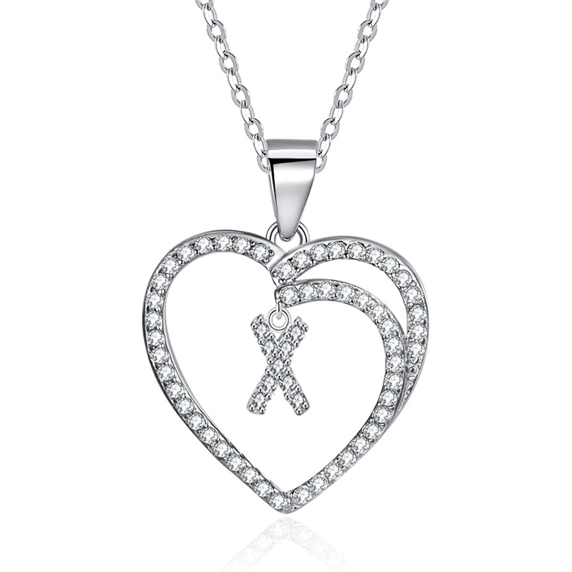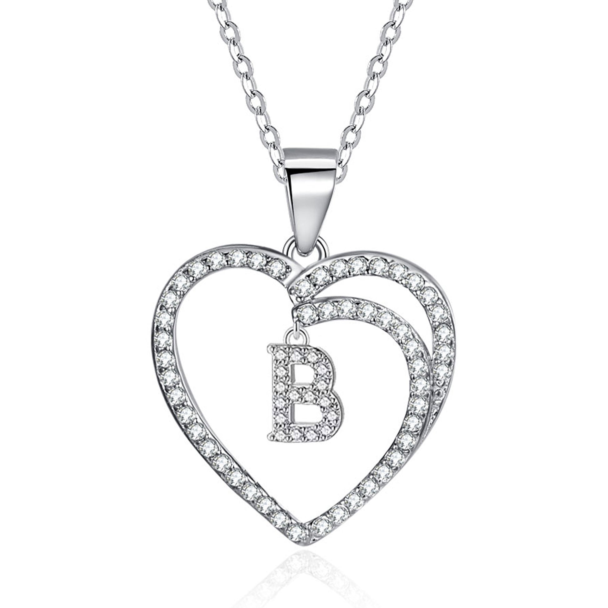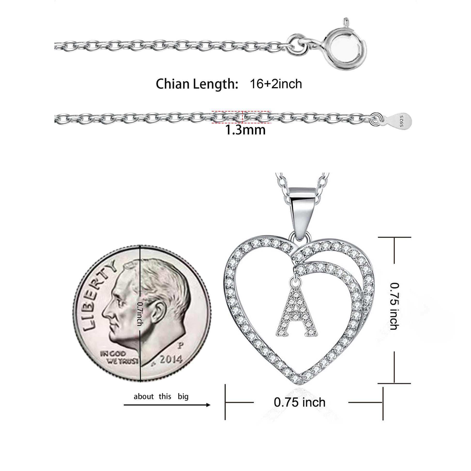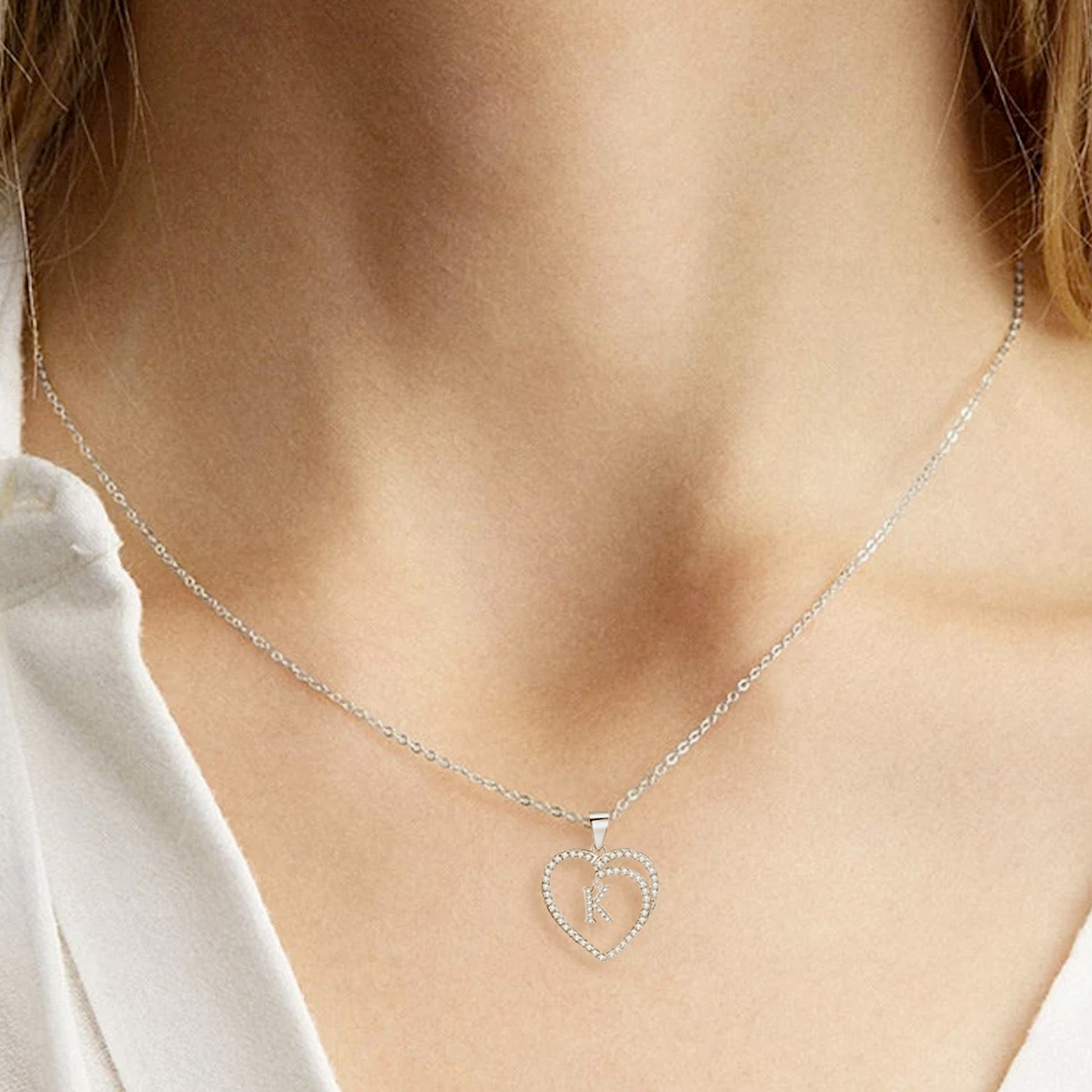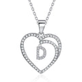 Silvery, double-sided heart-shaped first letter necklace, S925 silver plated necklace, zircon pendant necklace, suitable jewelry gift for girls;
