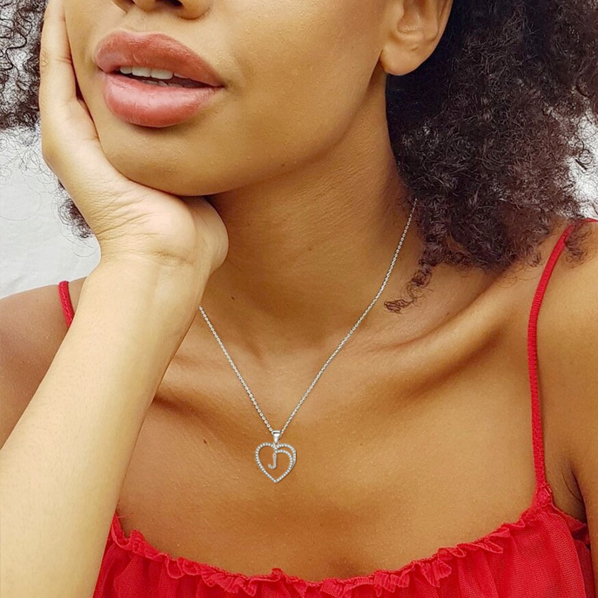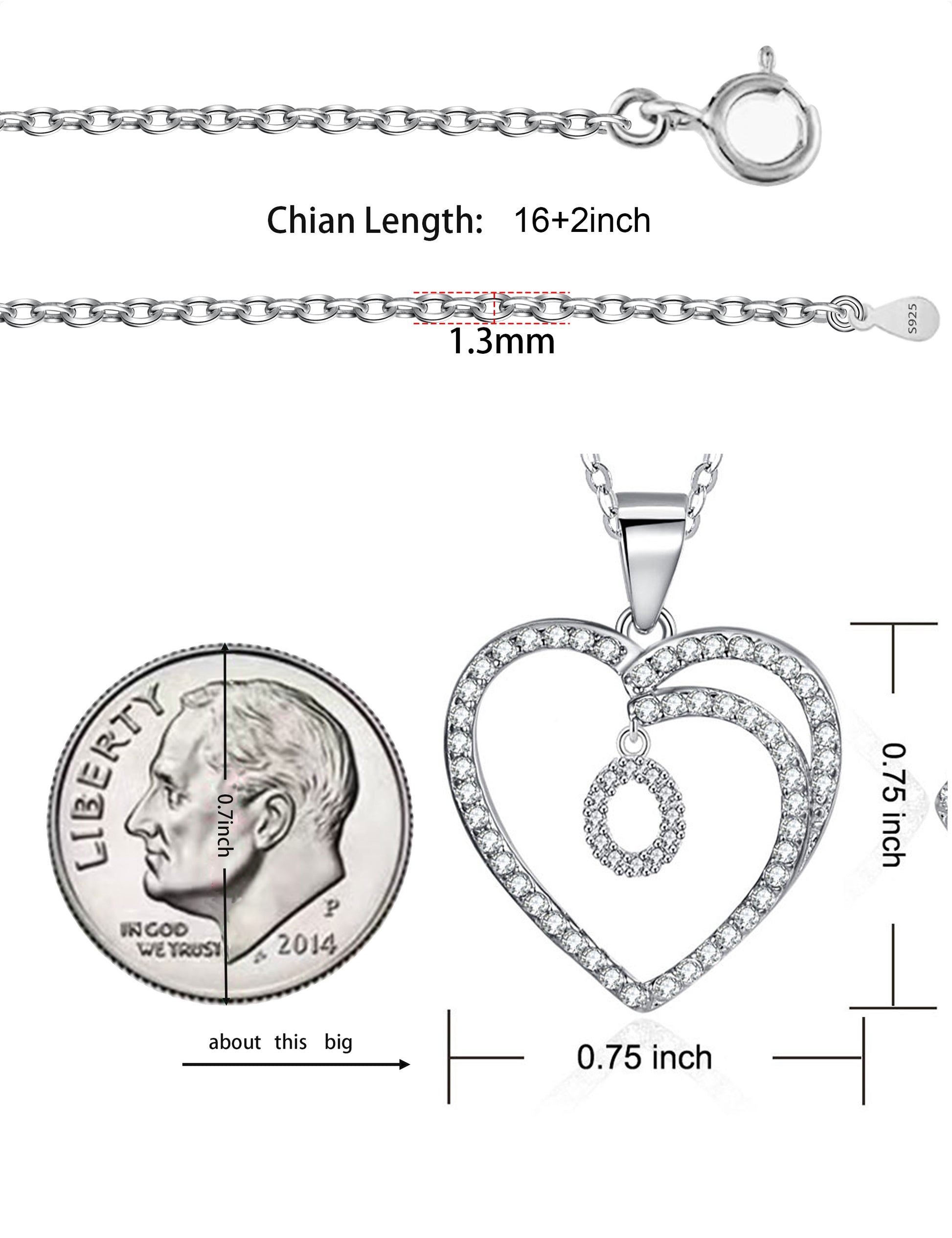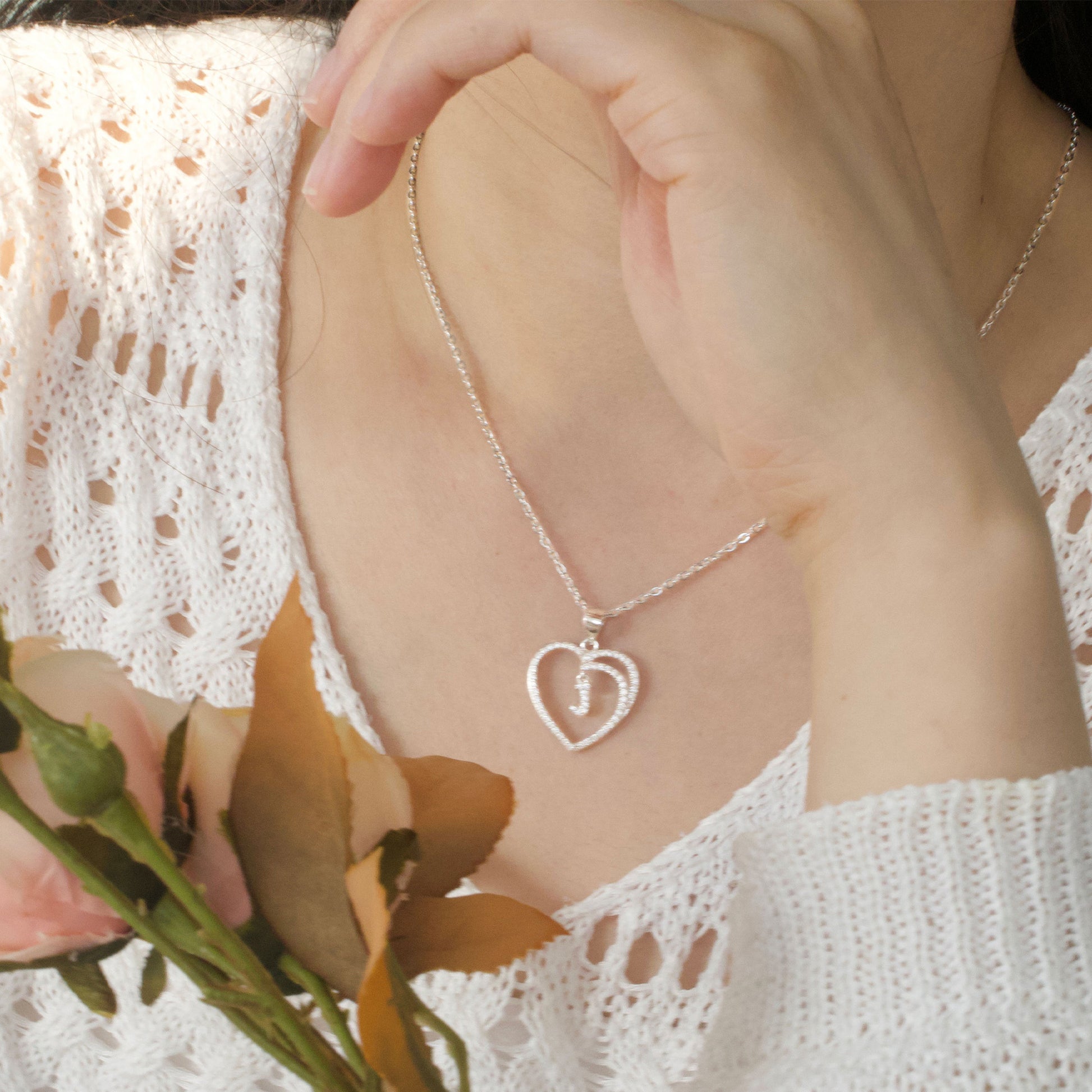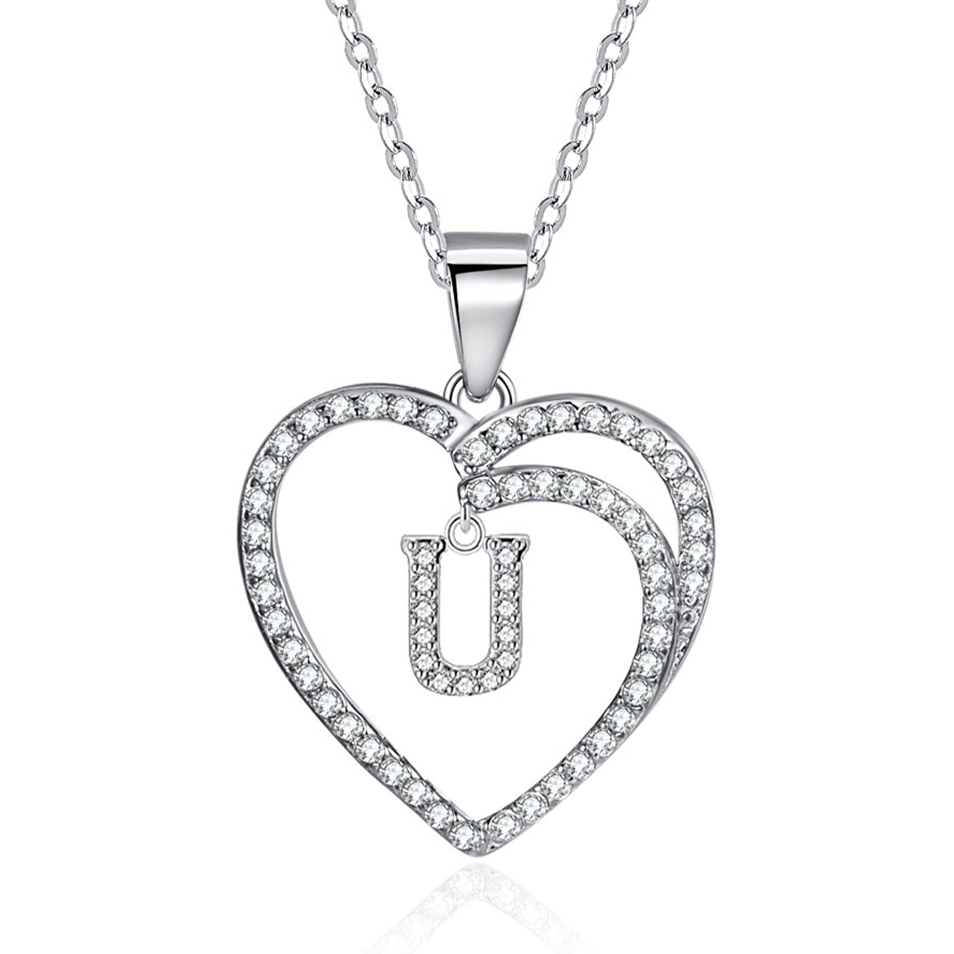 Silvery, double-sided heart-shaped first letter necklace, S925 silver plated necklace, zircon pendant necklace, suitable jewelry gift for girls;