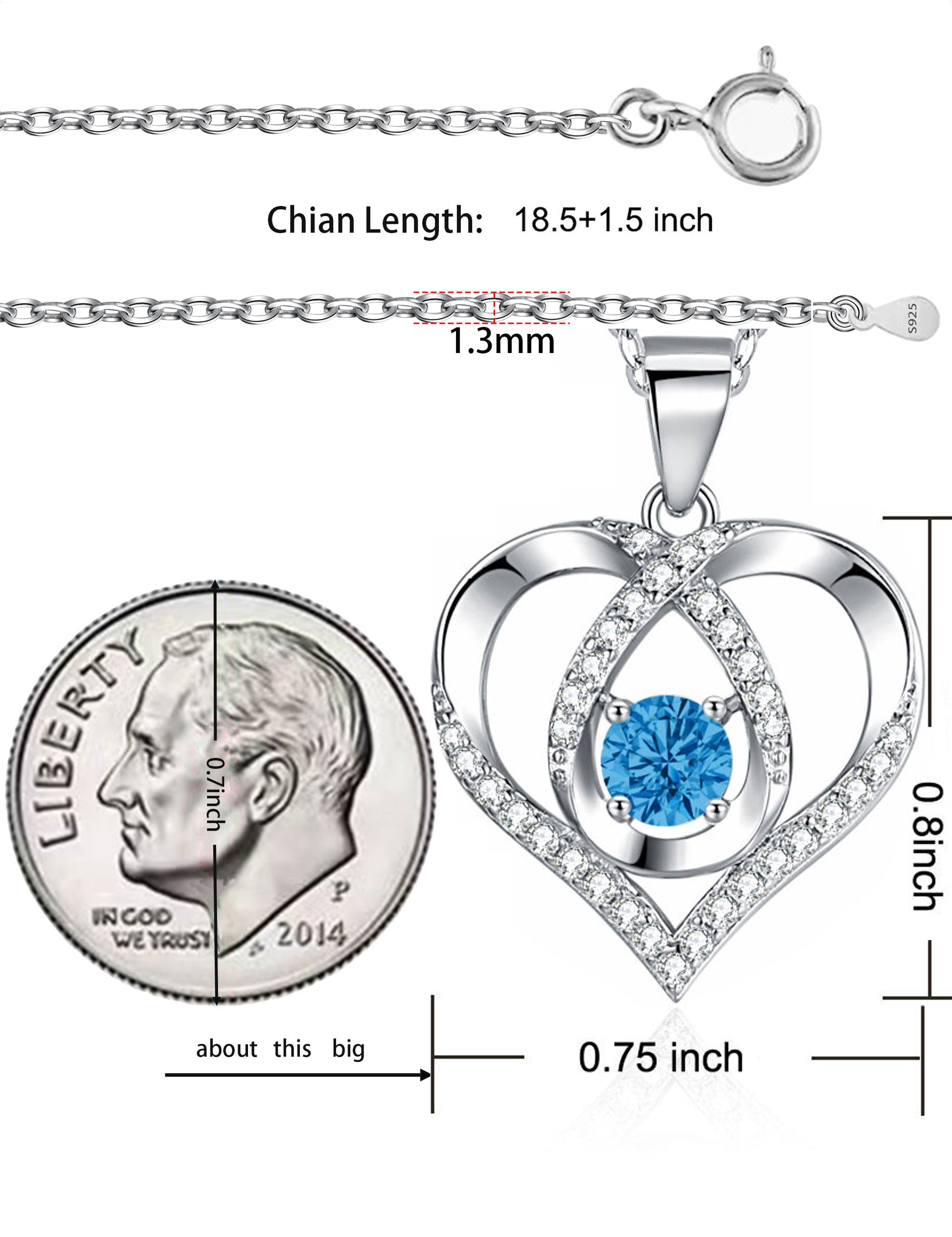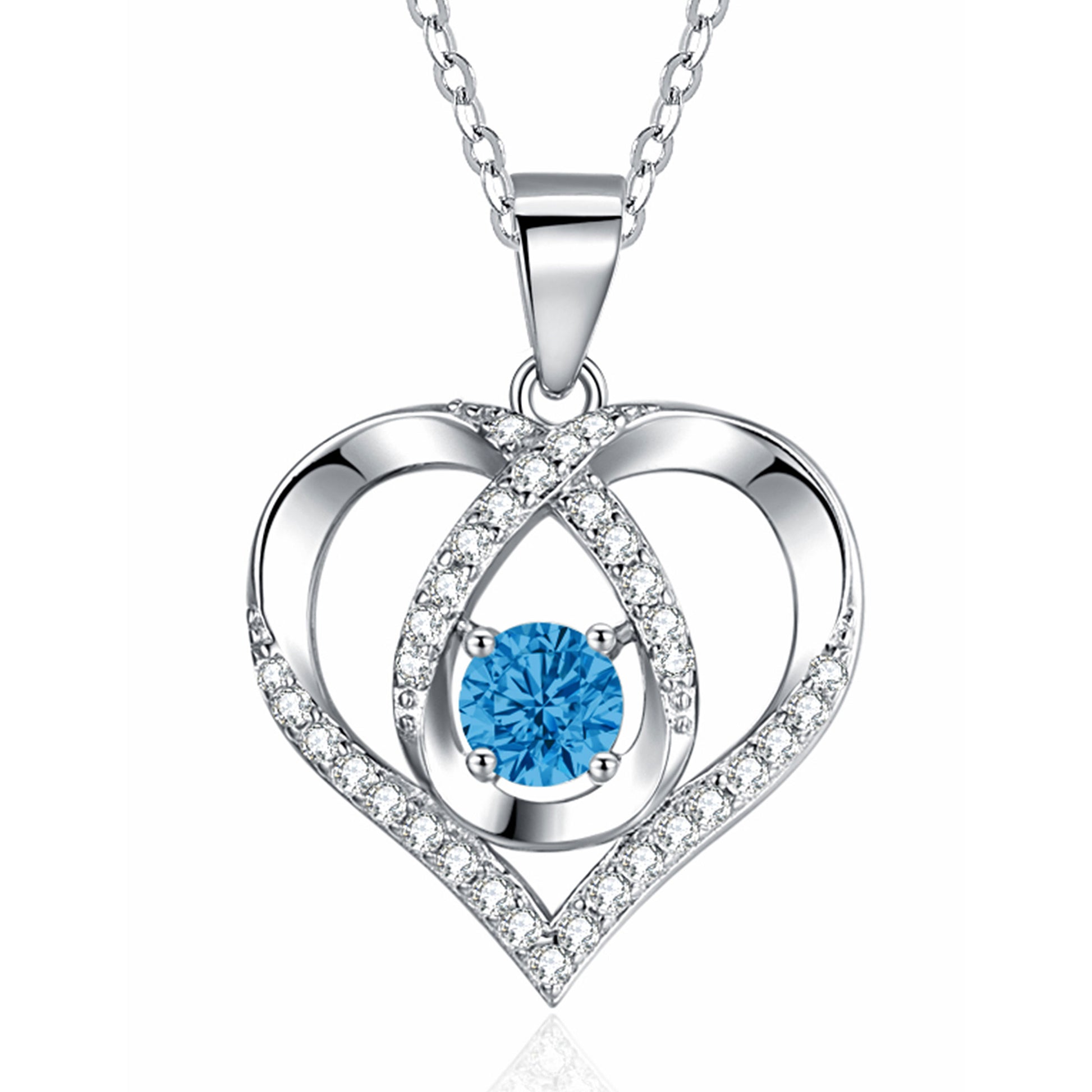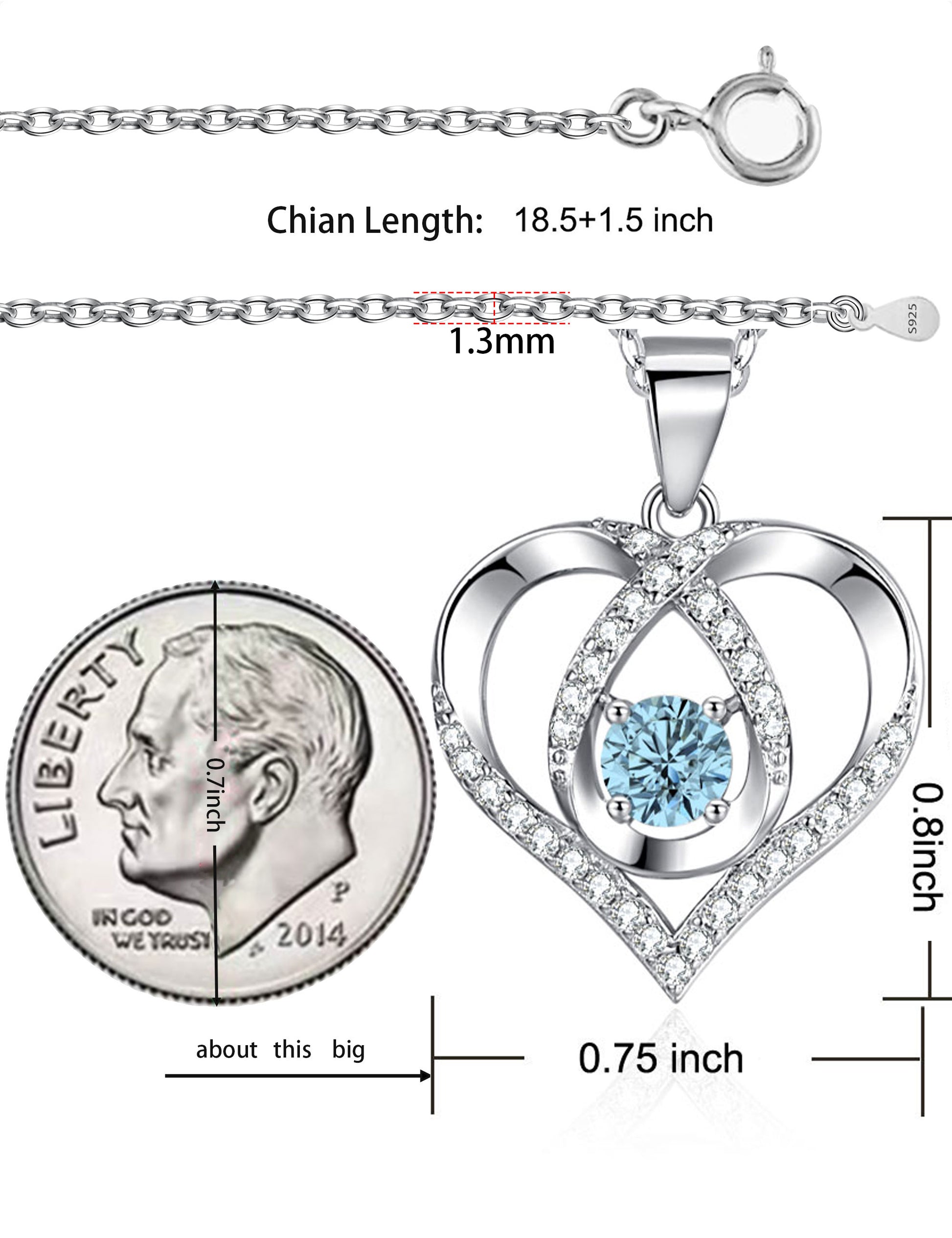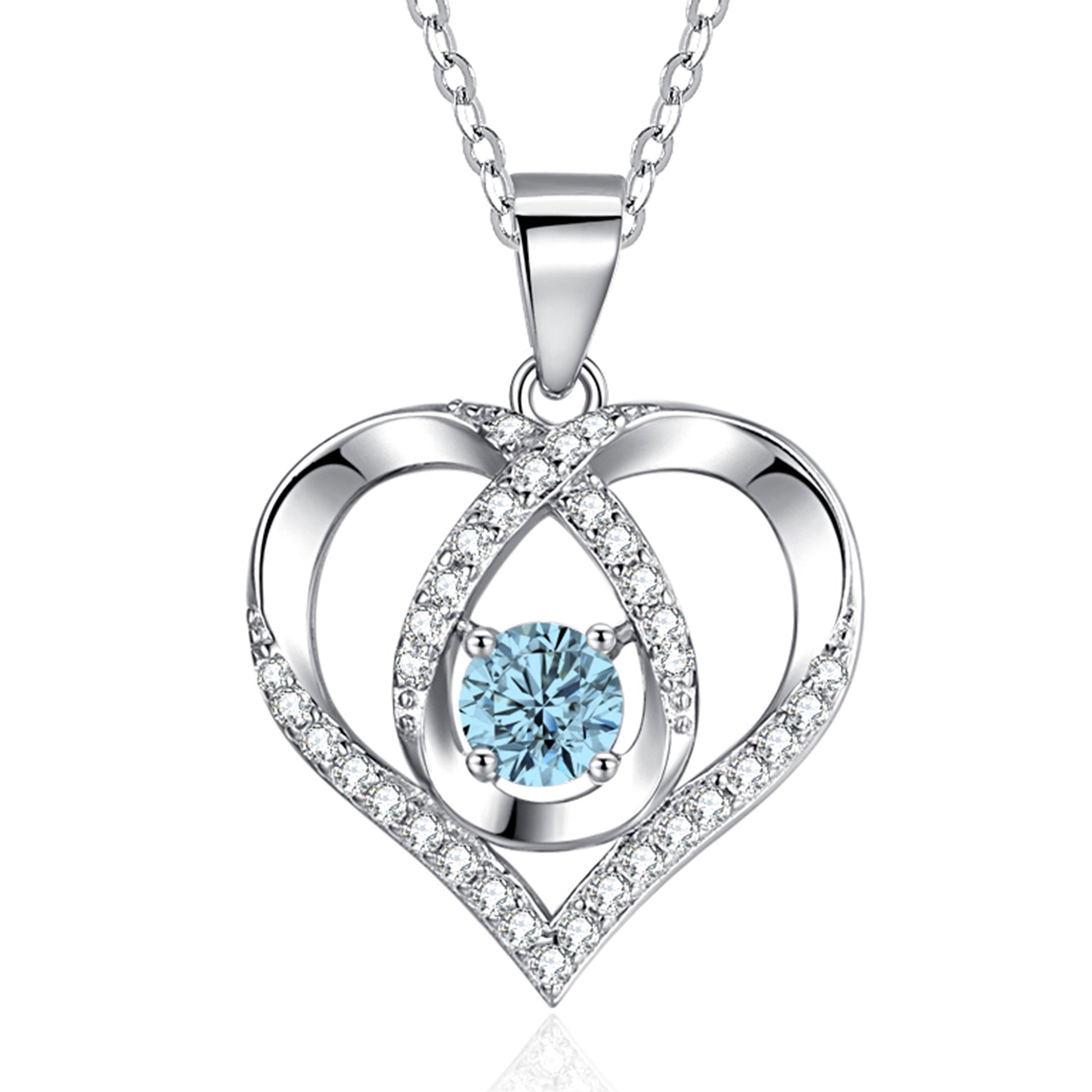 Silvery, droplet shaped heart-shaped birthstone necklace, S925 silver plated birthstone chain, suitable for teenage girls, birthday jewelry gift;