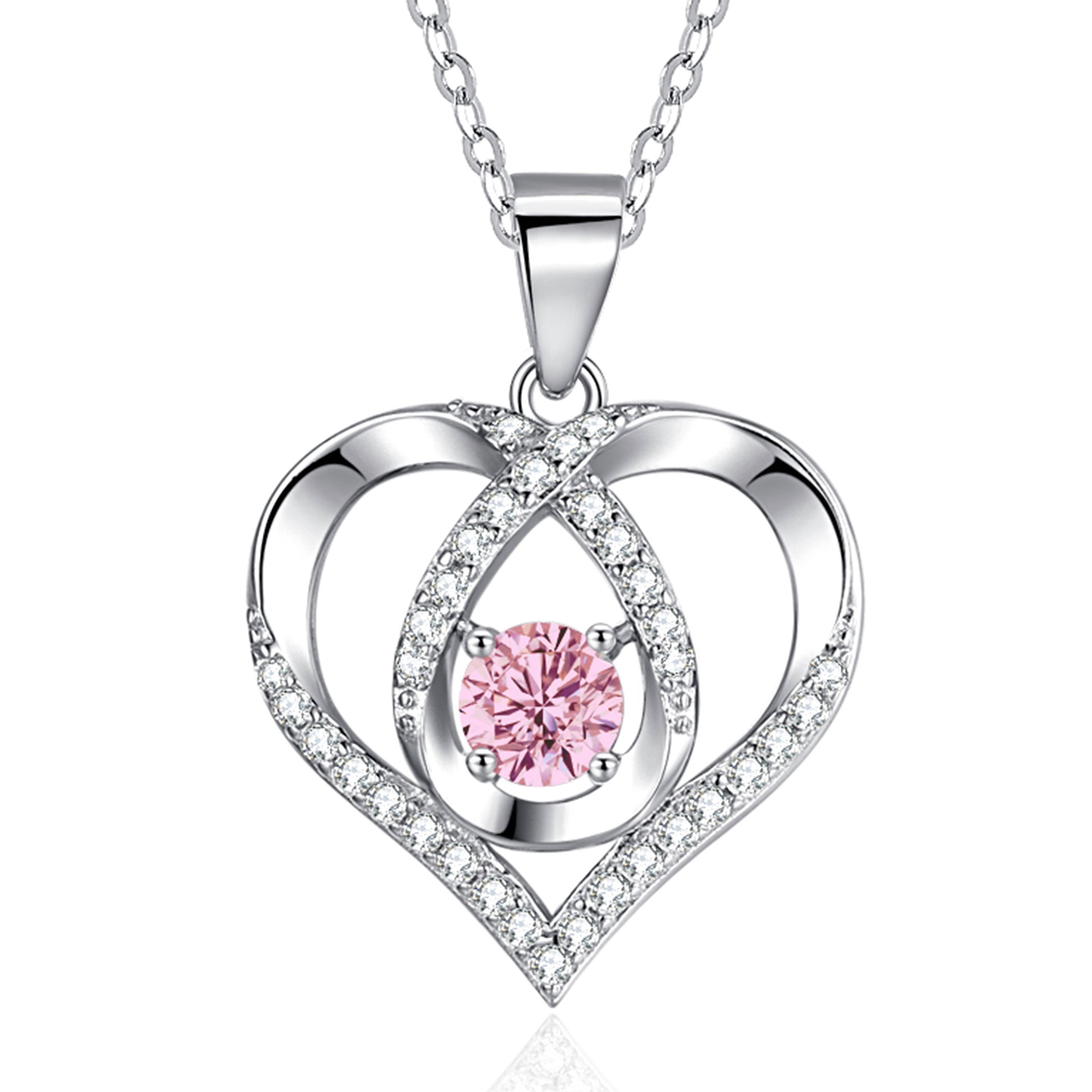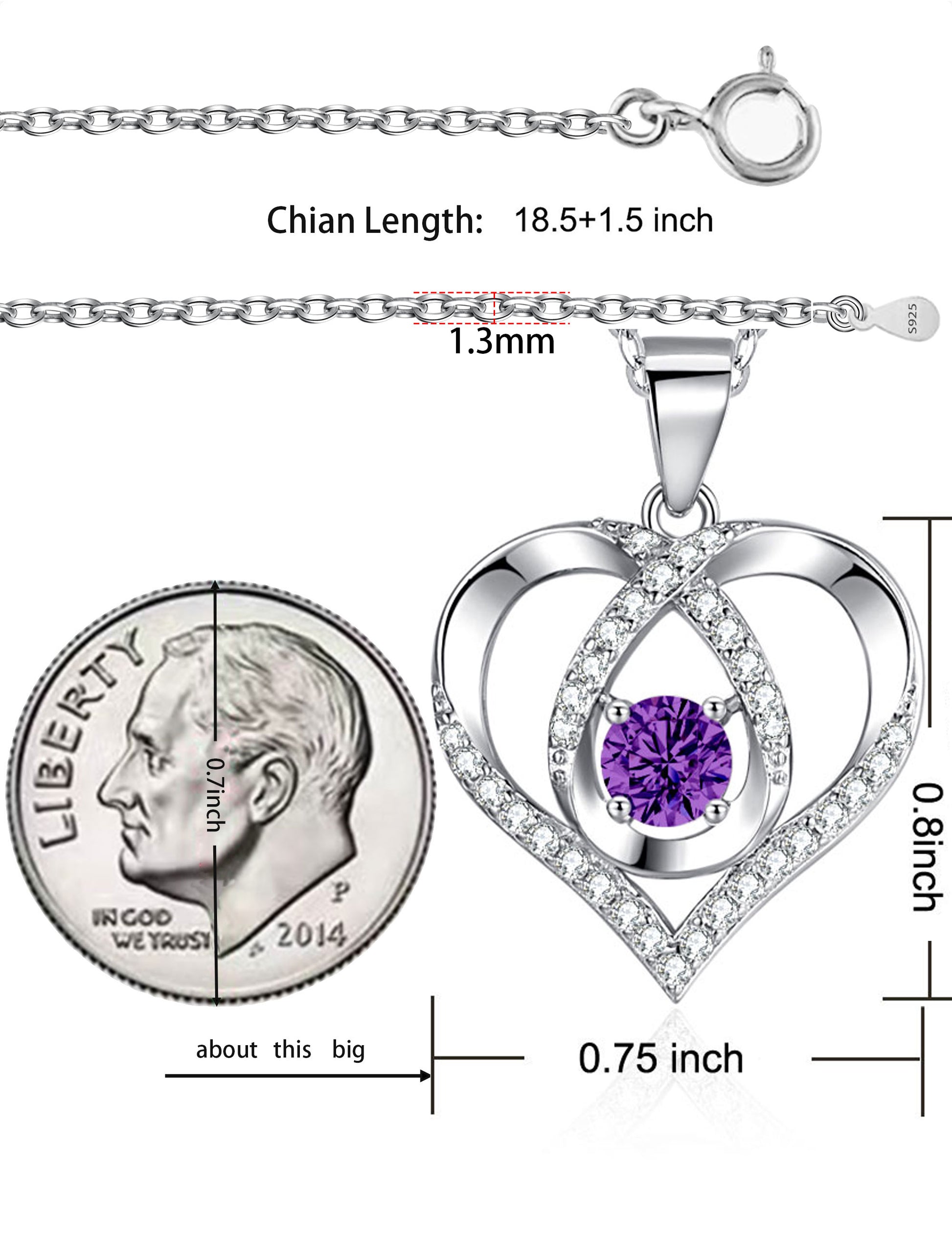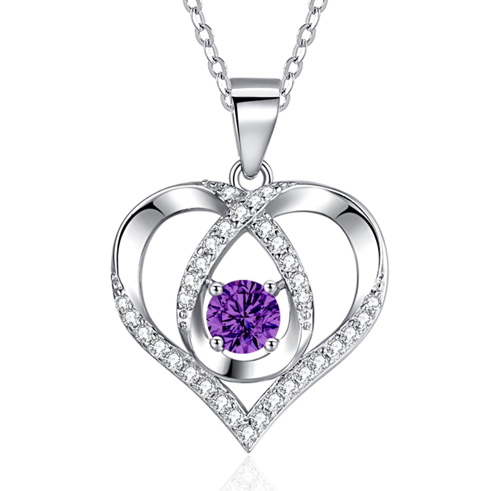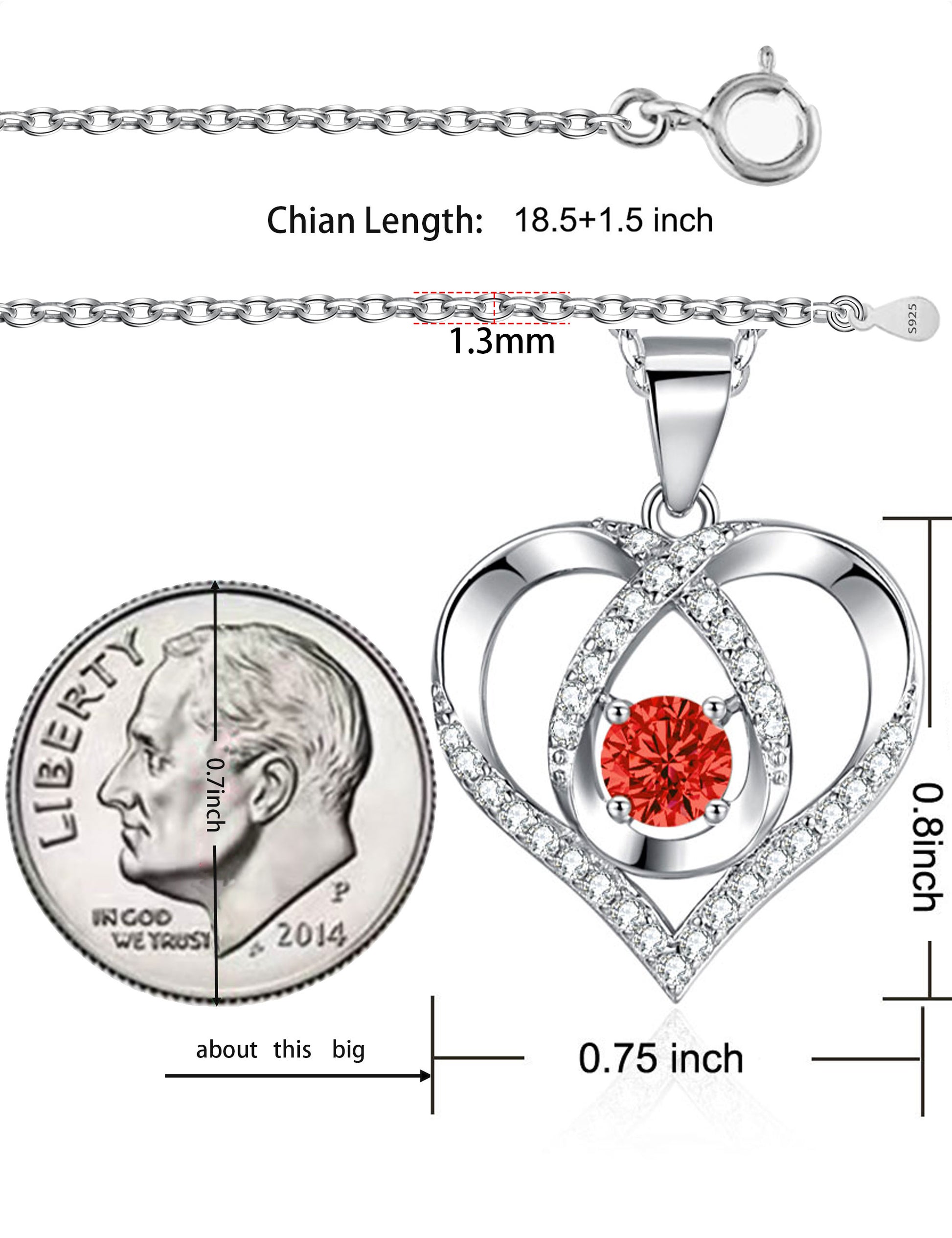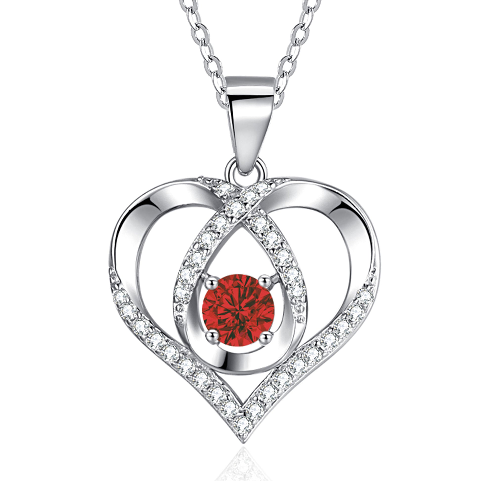 Silvery, droplet shaped heart-shaped birthstone necklace, S925 silver plated birthstone chain, suitable for teenage girls, birthday jewelry gift;