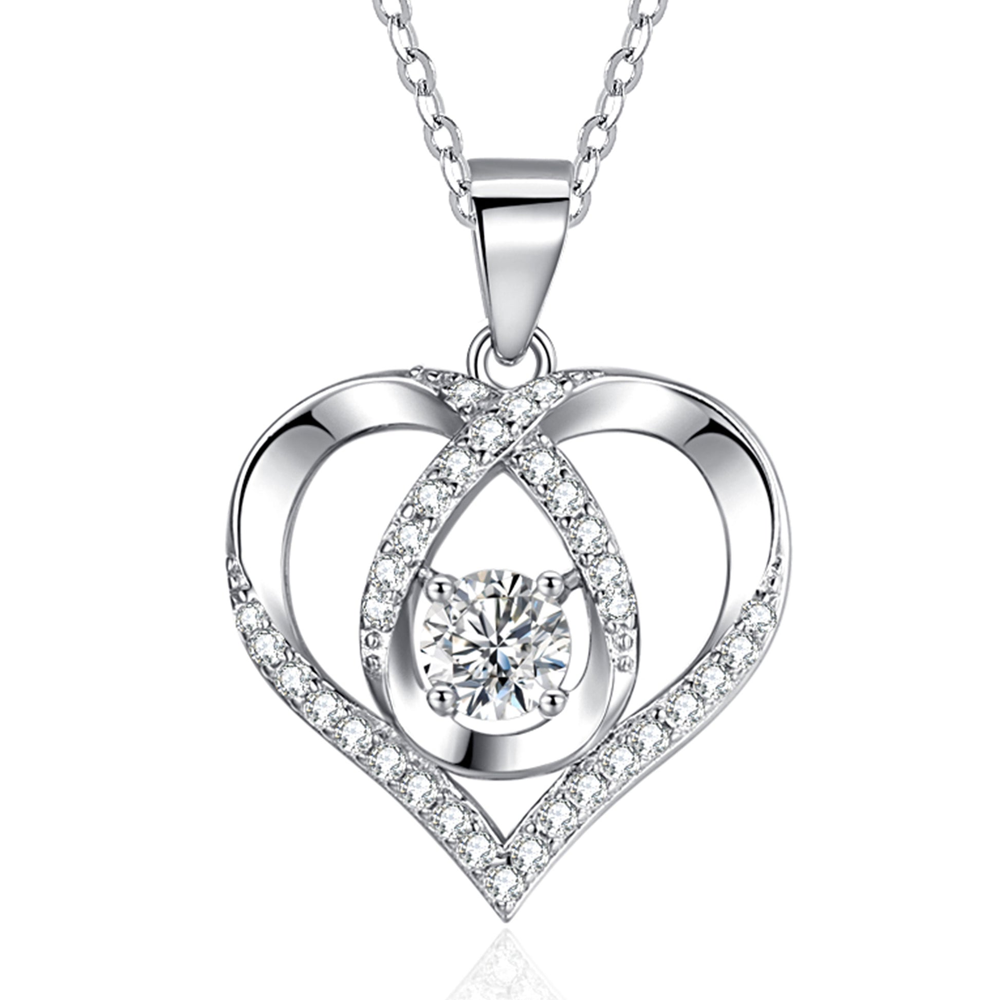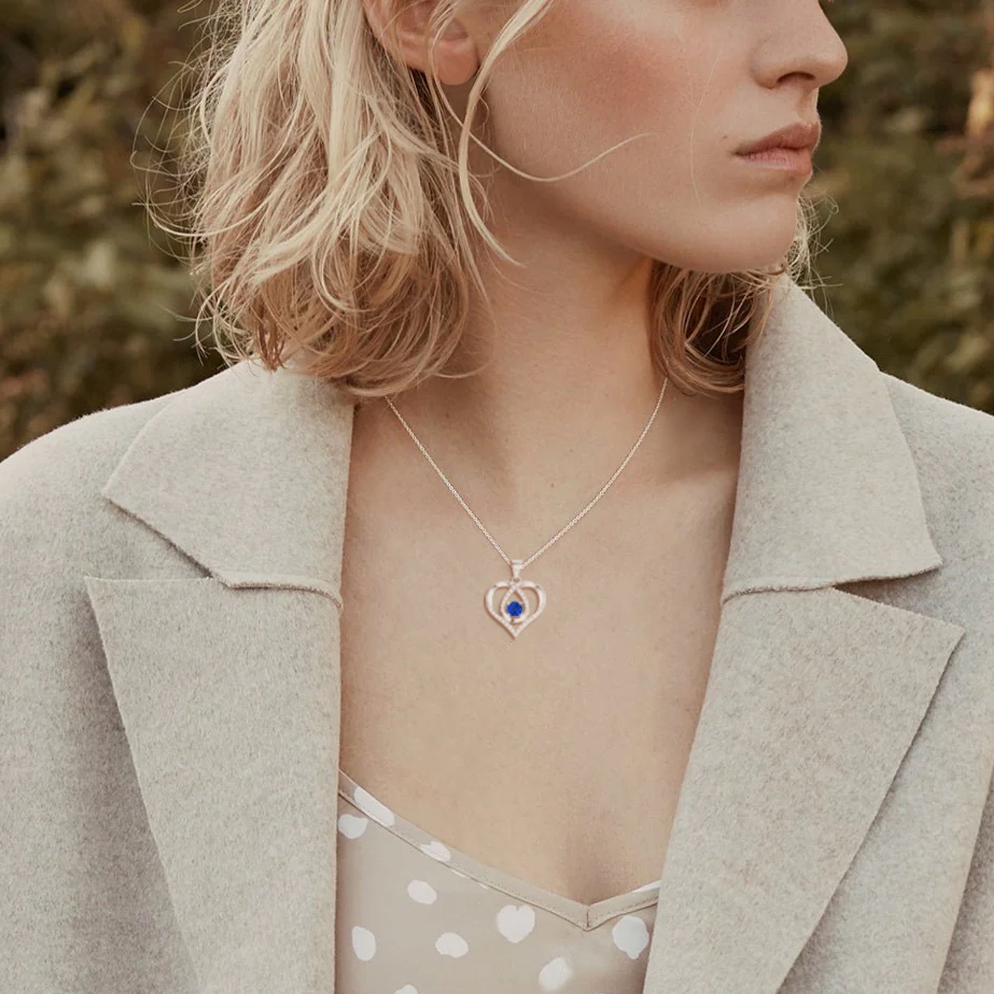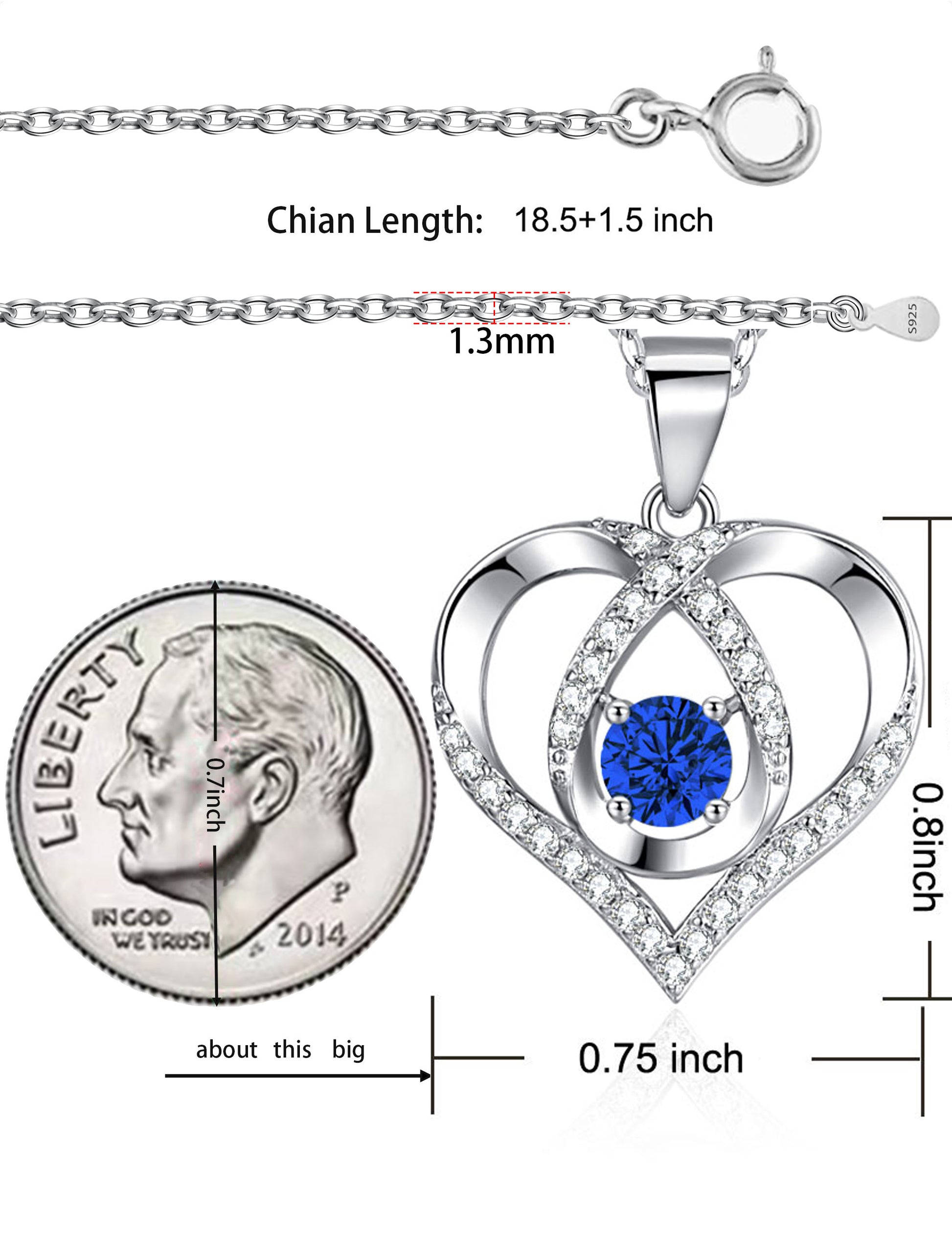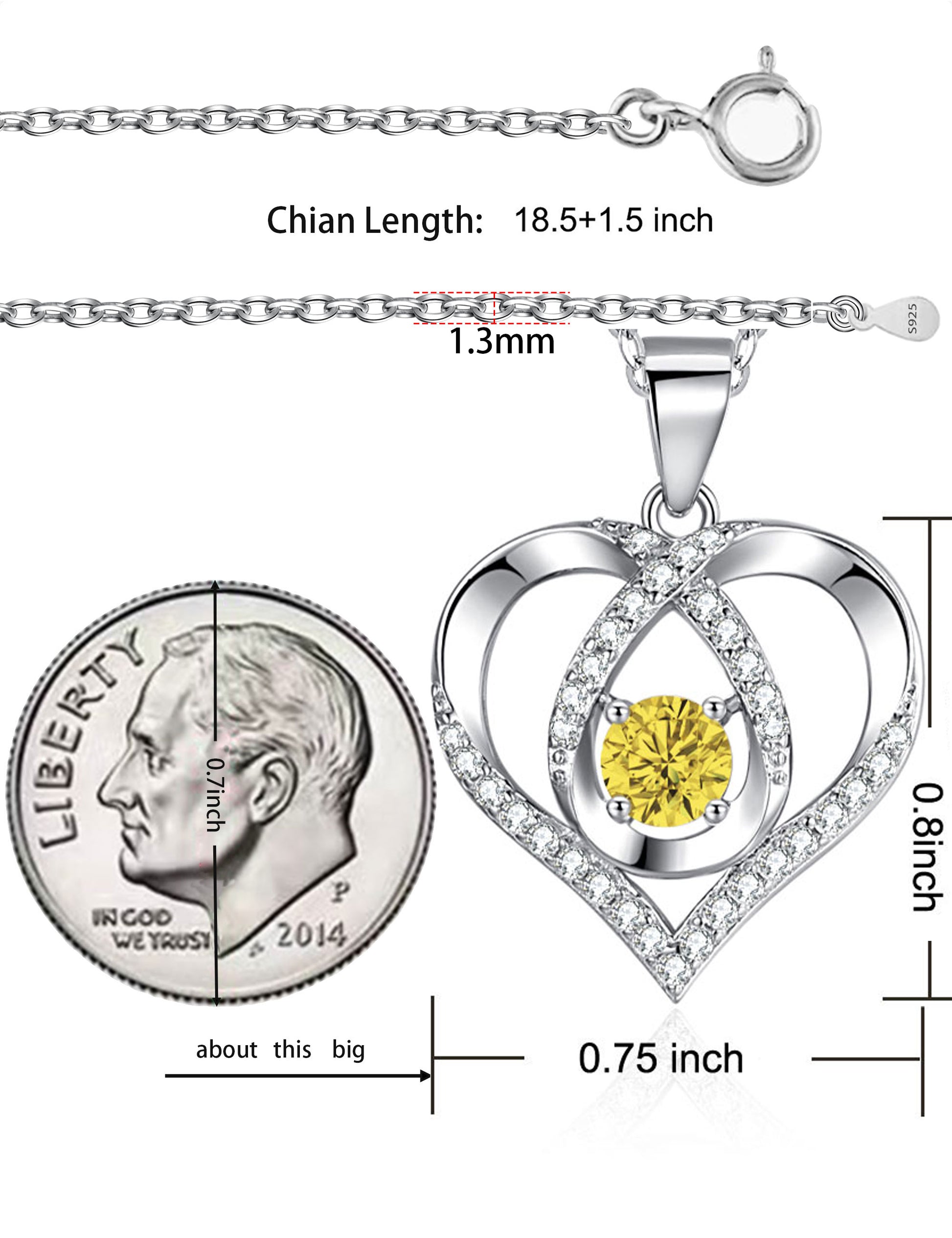 Silvery, droplet shaped heart-shaped birthstone necklace, S925 silver plated birthstone chain, suitable for teenage girls, birthday jewelry gift;