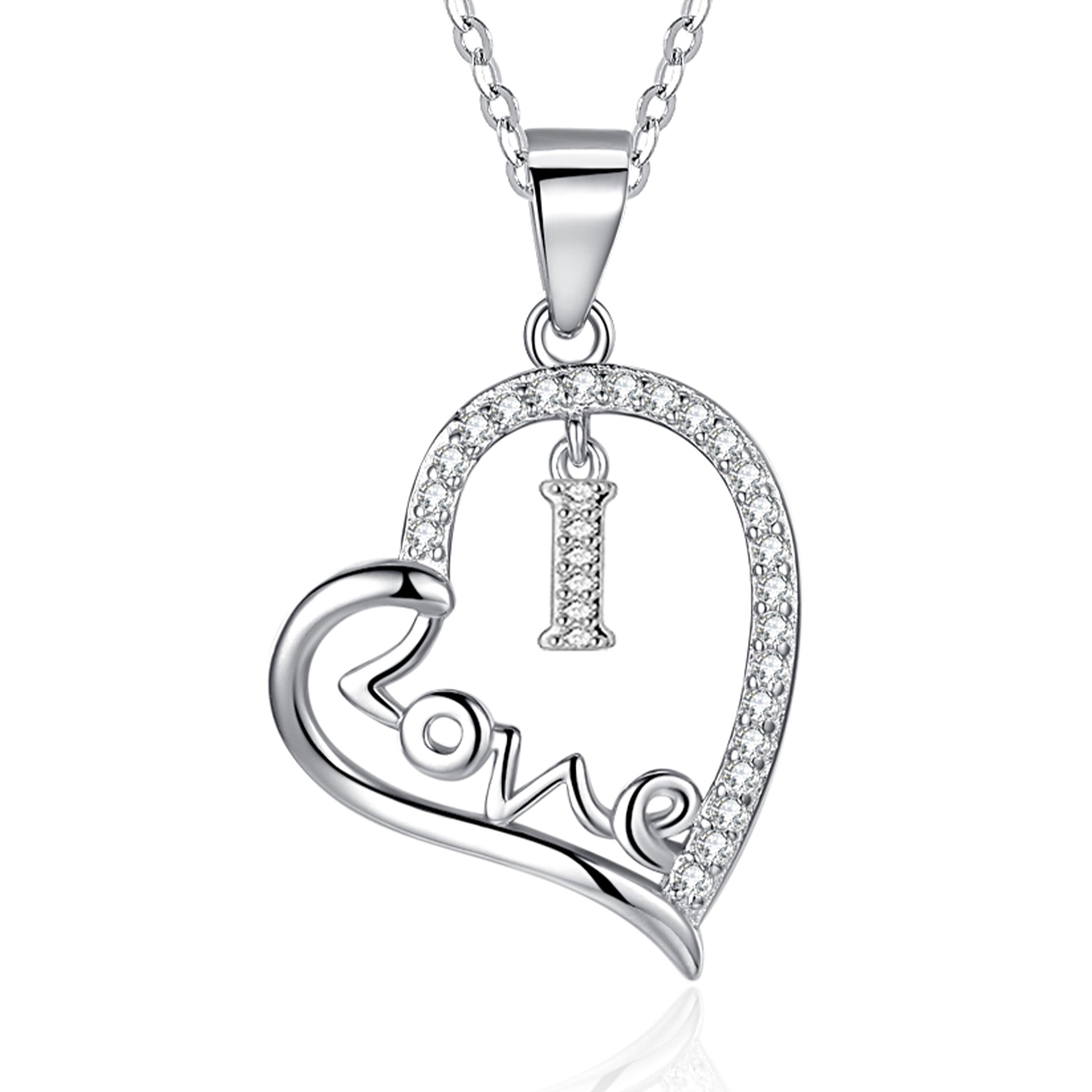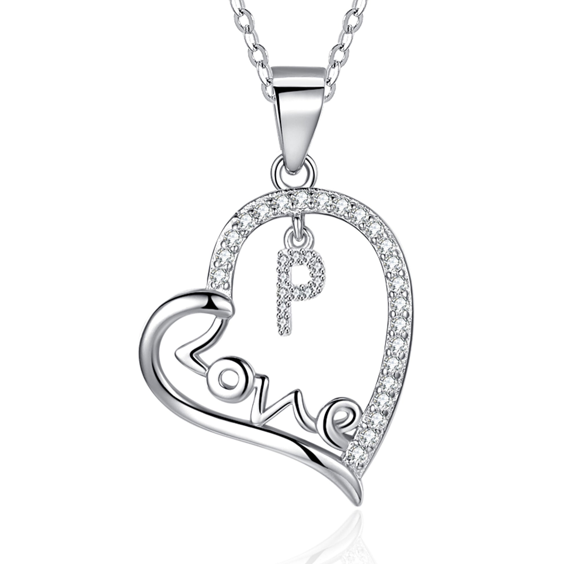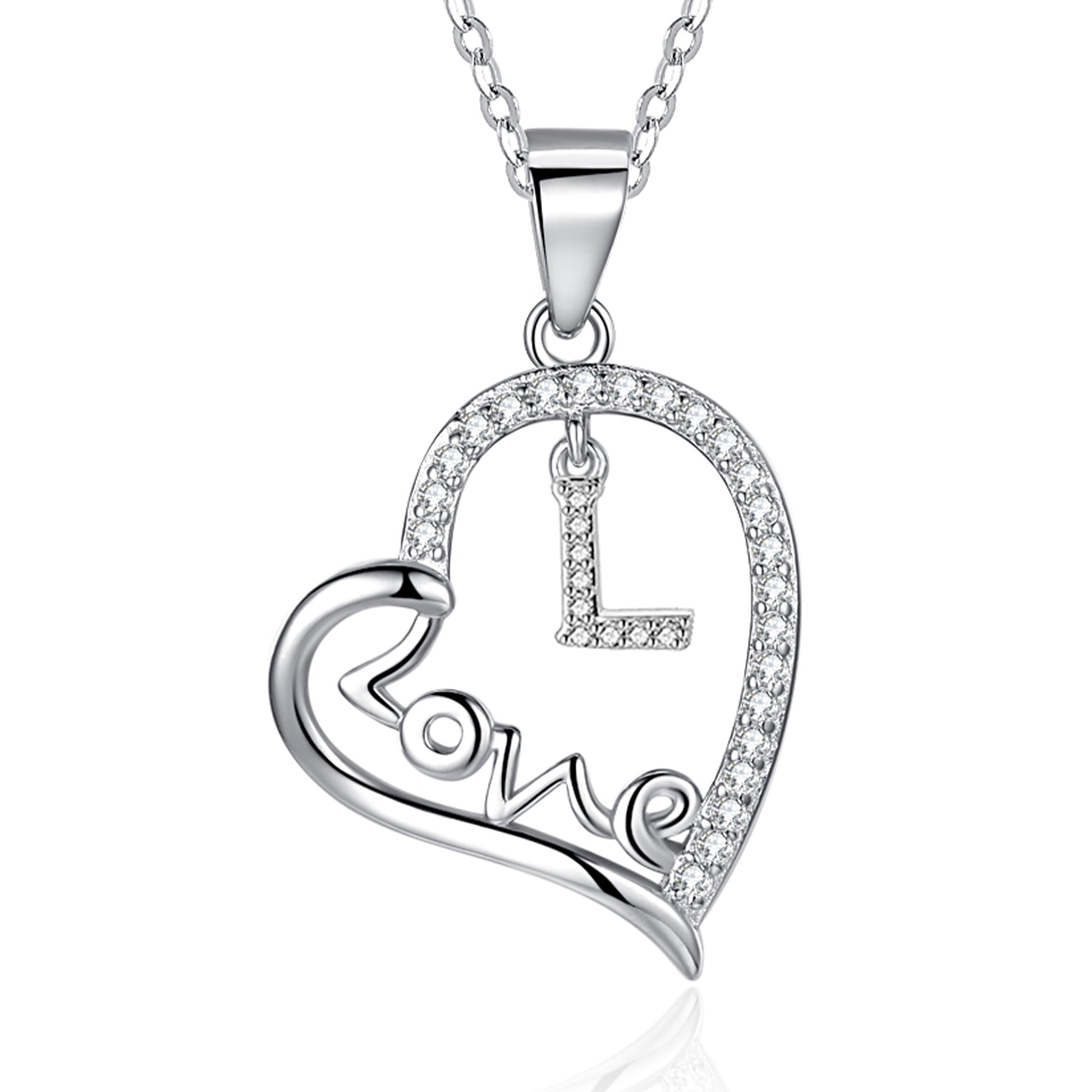 Silvery, LOVE heart-shaped initial letter necklace, S925 silver plated necklace, zircon pendant necklace, suitable jewelry gift for girls;