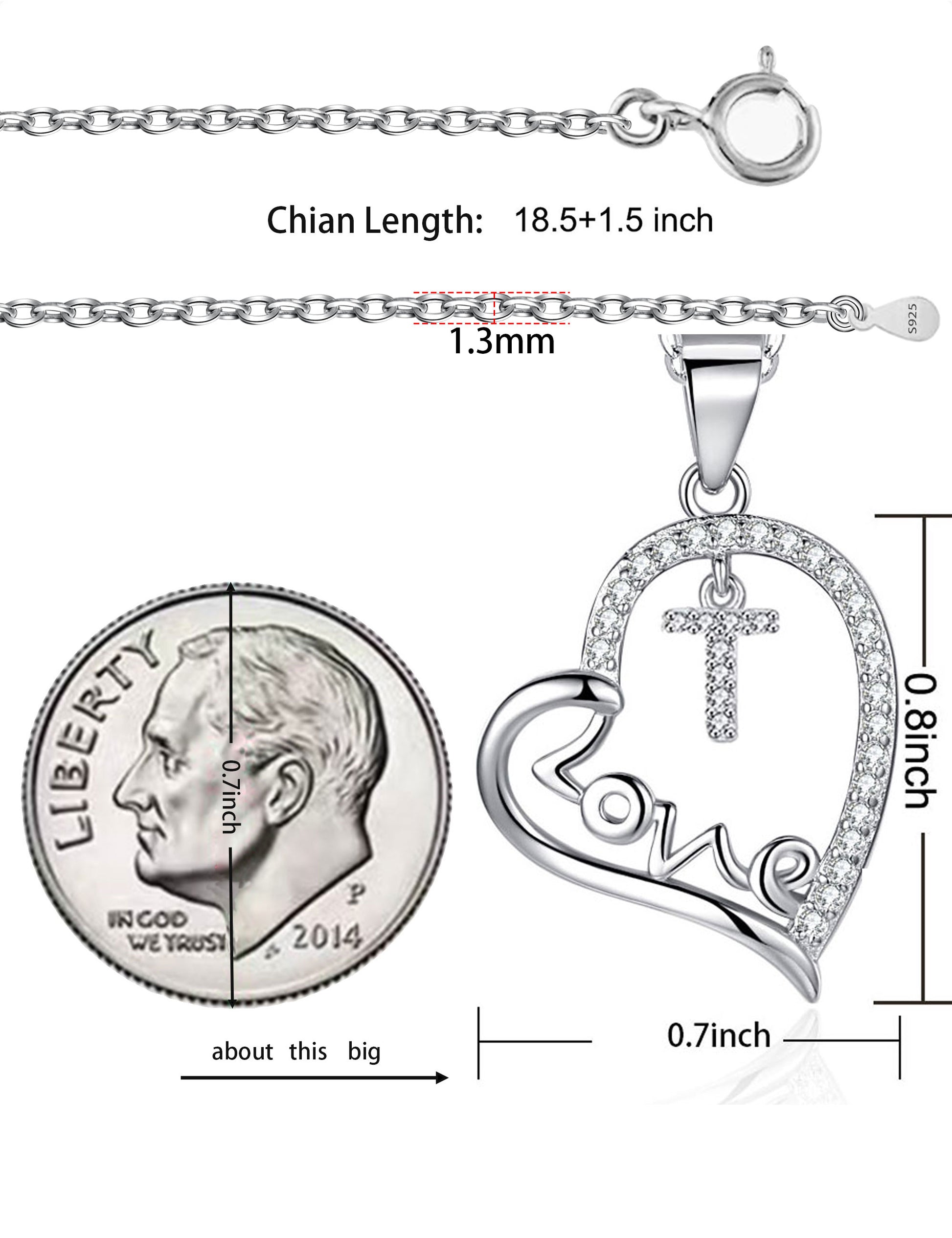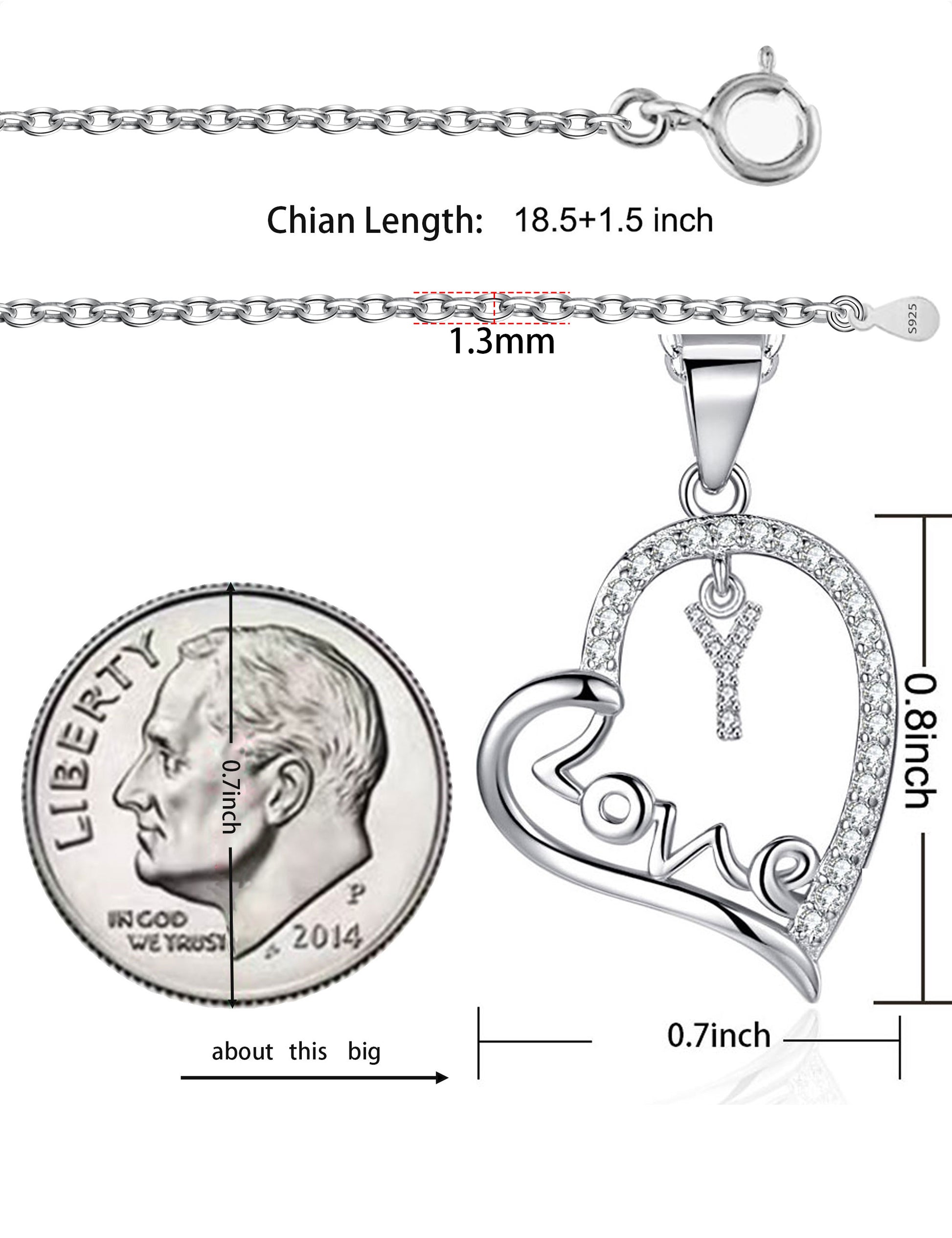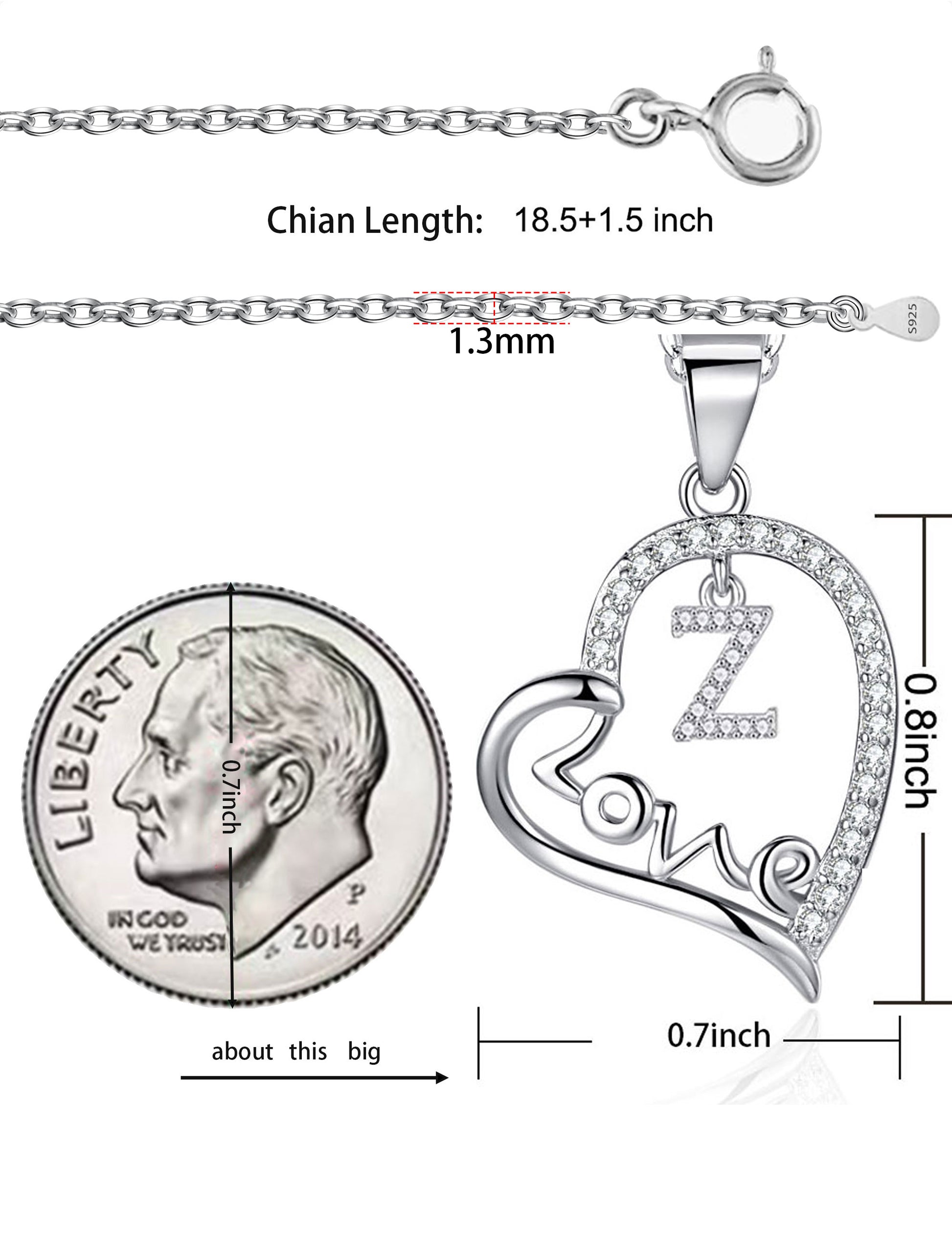 High quality material: The heart-shaped first letter necklace is made of high-quality 925 silver plated material, embedded with AAA+cubic zirconia, sparkling and charming. The chain length is 45.5+3.5 centimeters, suitable for most women. The acronym of the person you love.